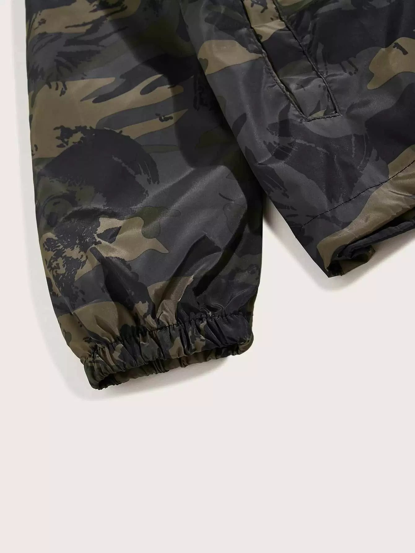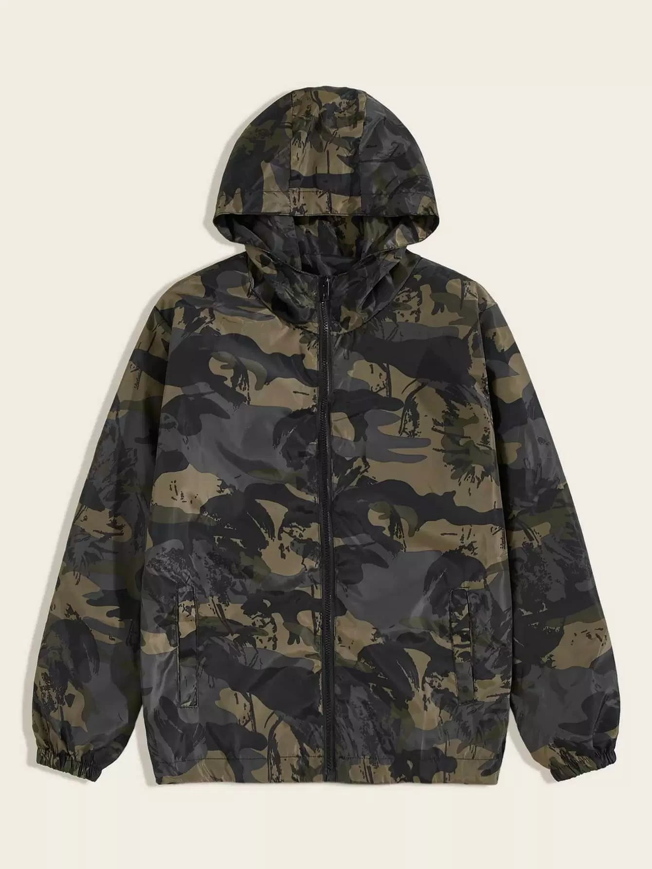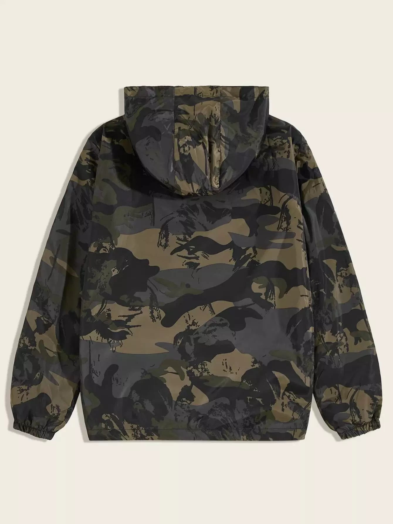 Men - Men Camo Print Hooded Windbreaker Jacket