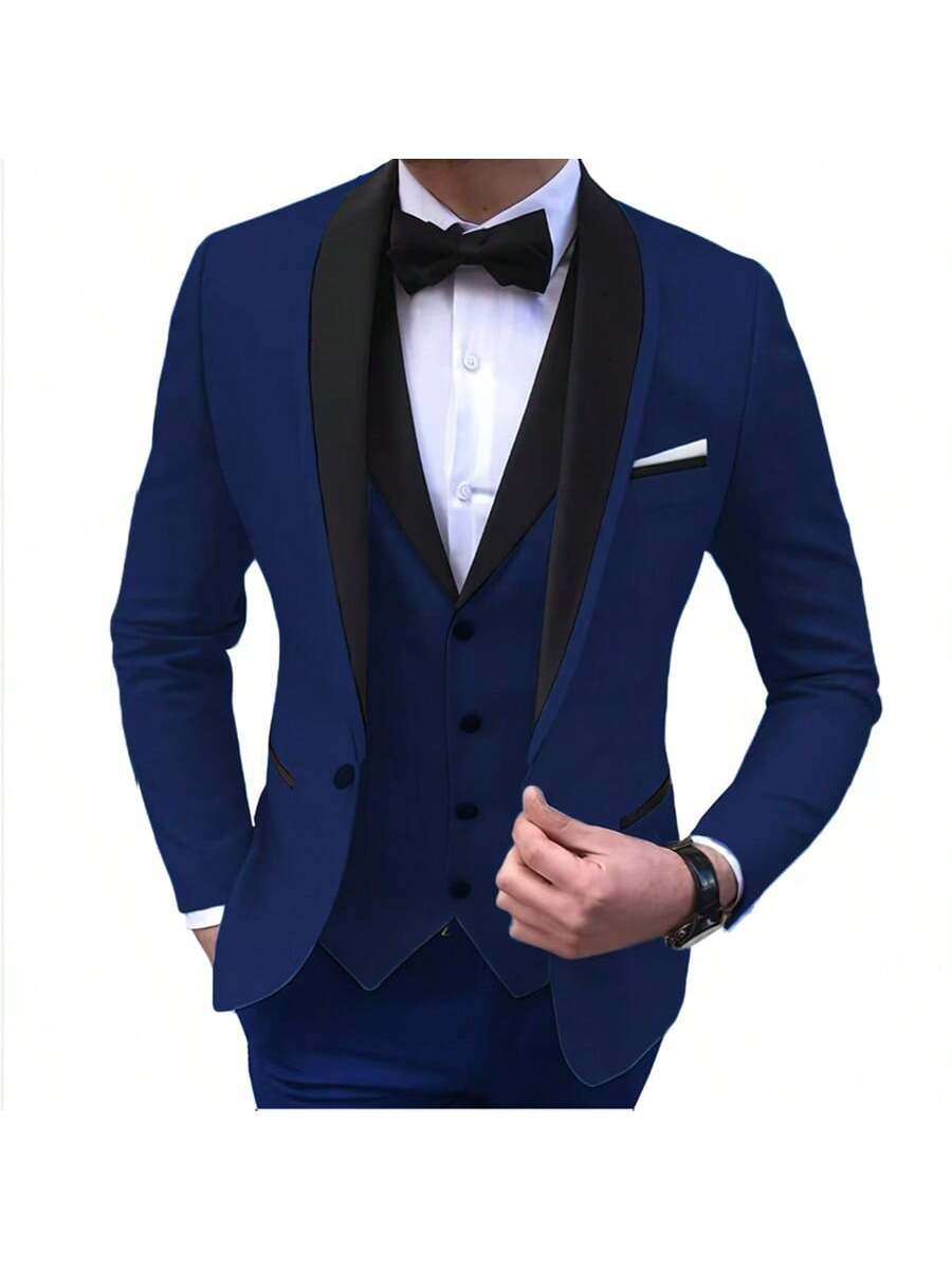 3-Piece Men Business Slim Fit Shawl Lapel One-Button Blazer Suit With Matching Vest And Pants Groom's