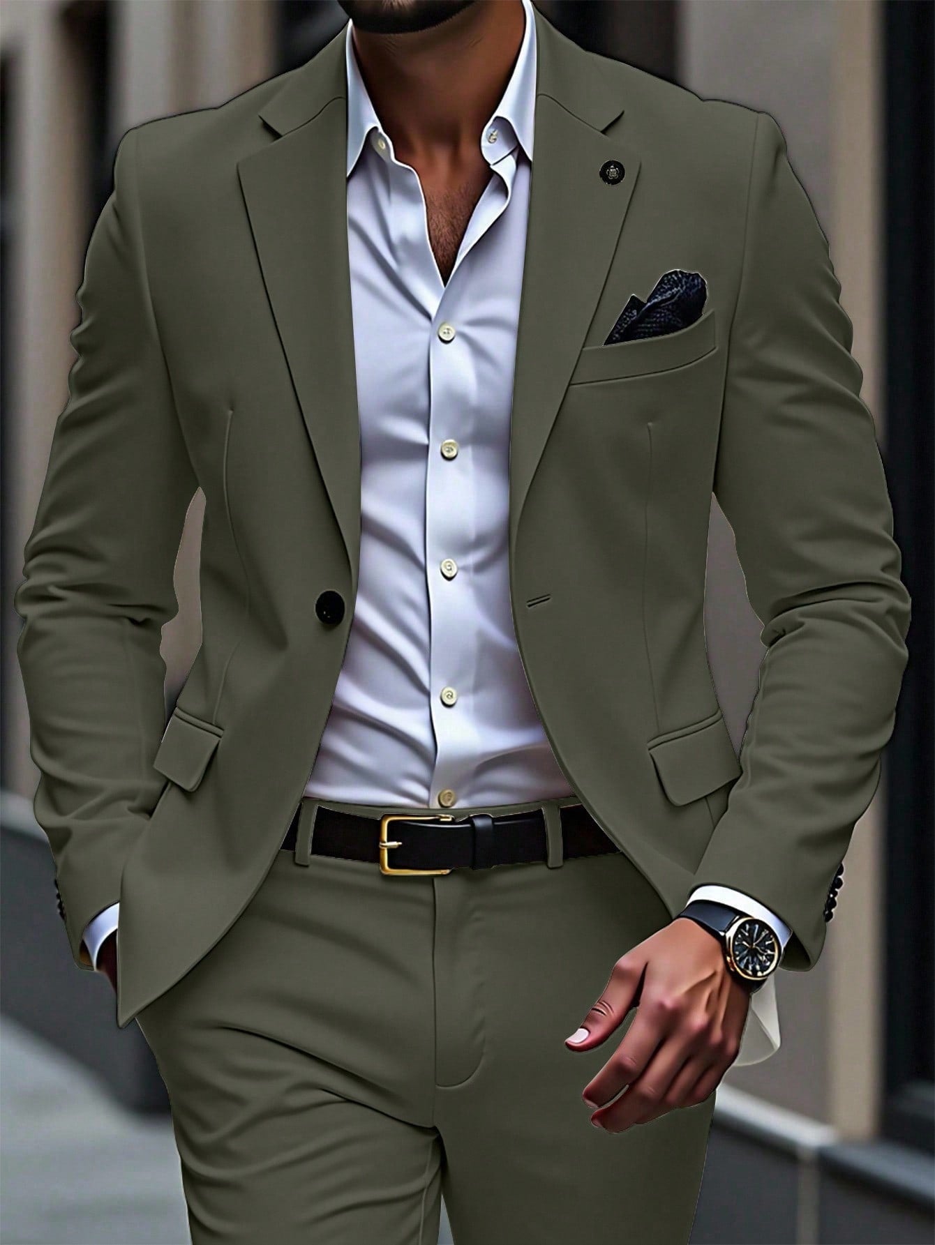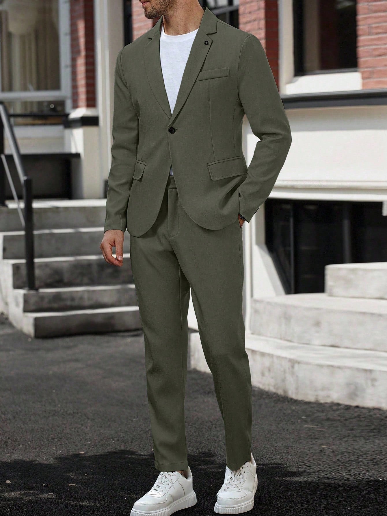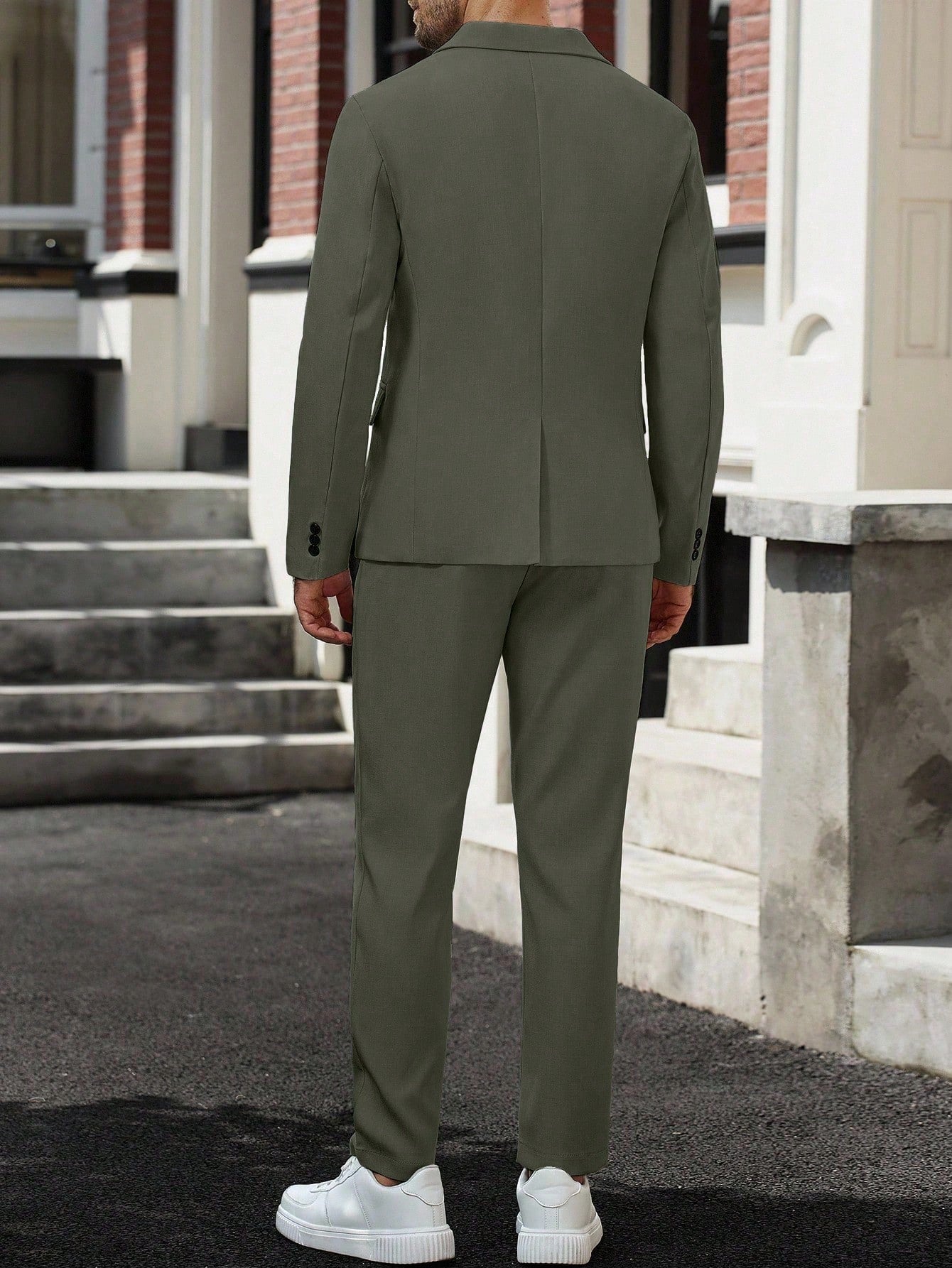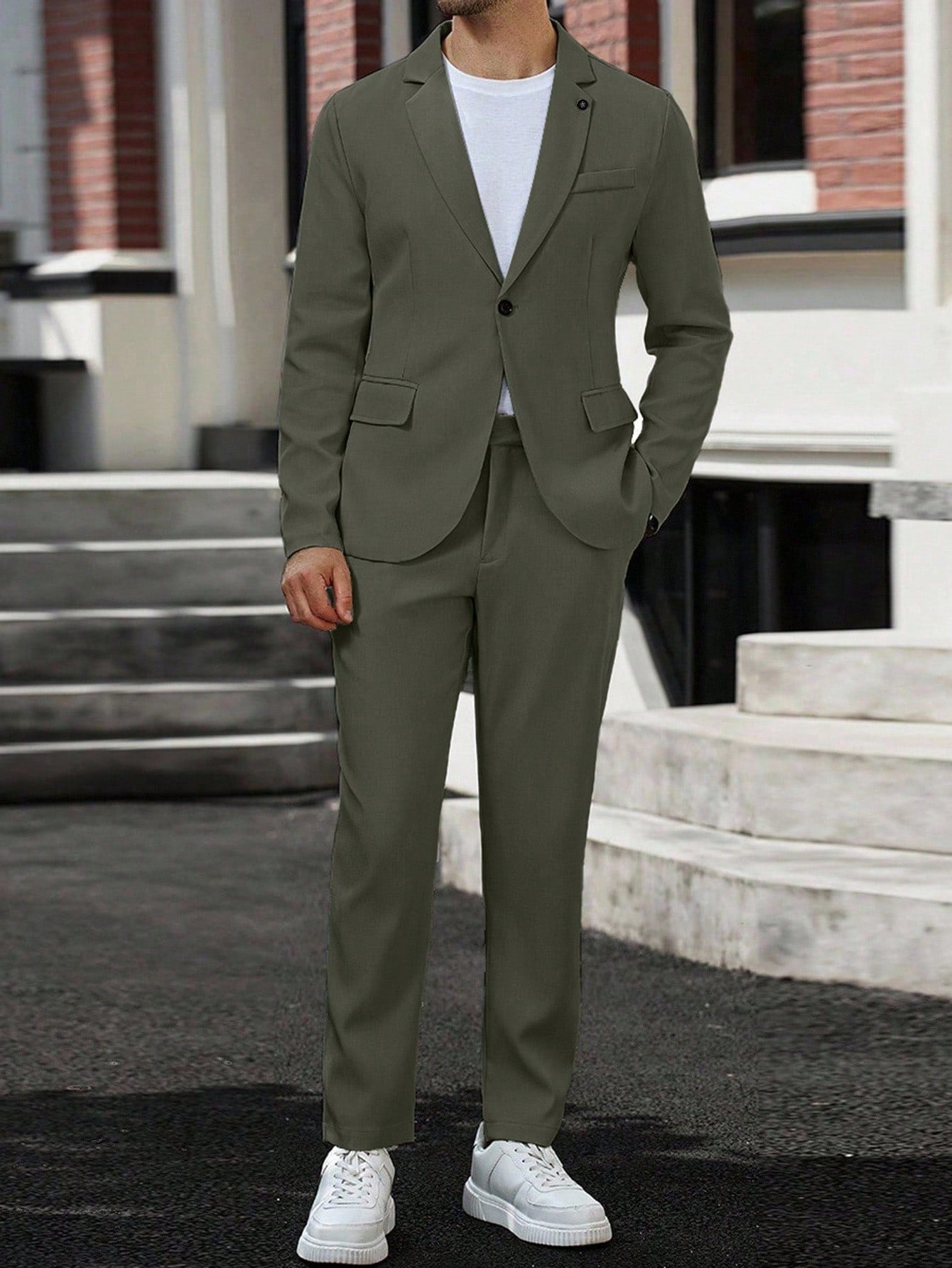 Manfinity Mode Men's Lapel Neck Long Sleeve Blazer And Pants Business Travel Suit Set Men Suits Green Green Blazer Men Olive Green Suit Men Classy Suit