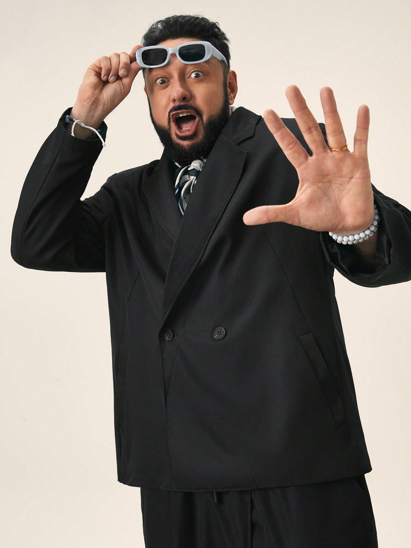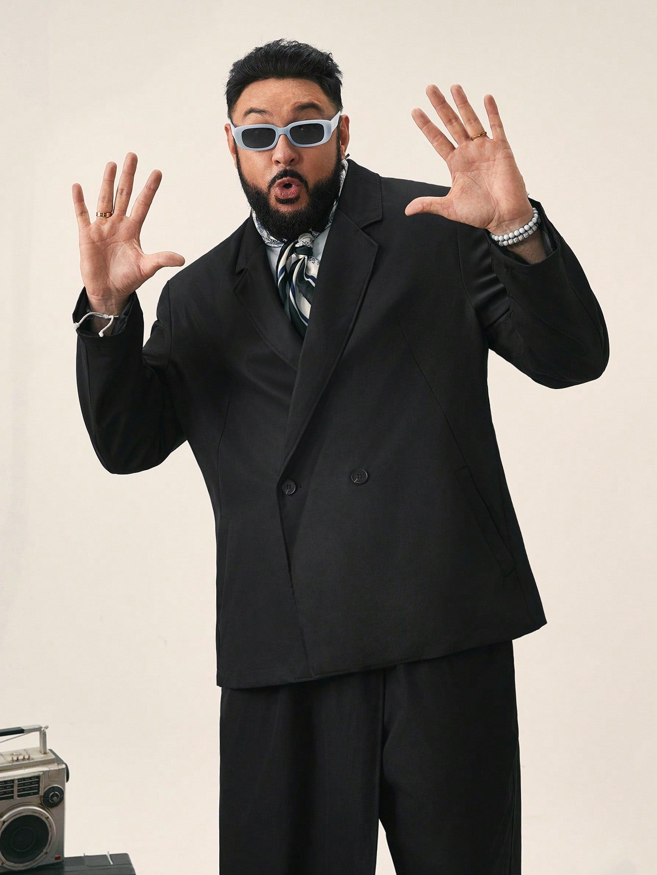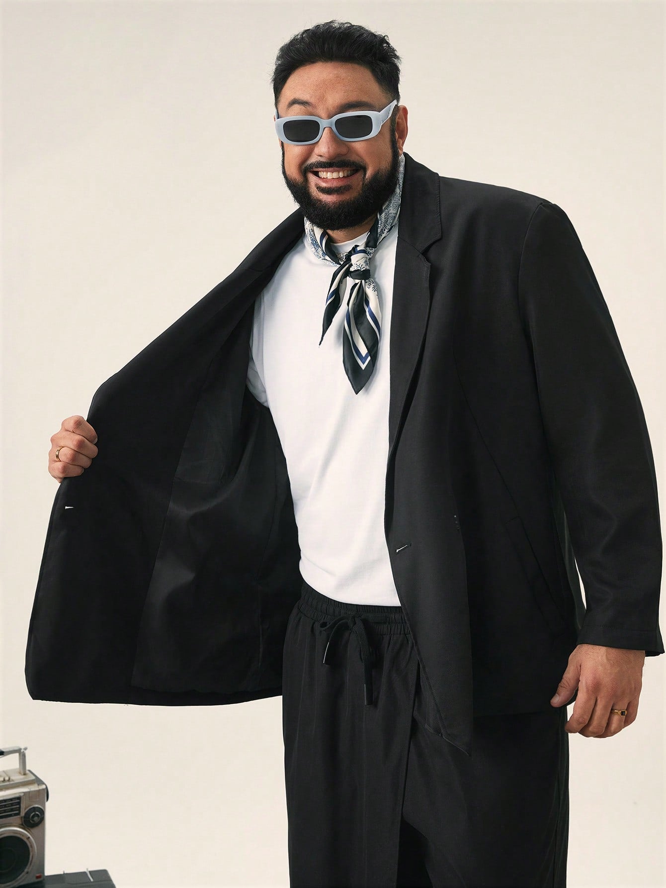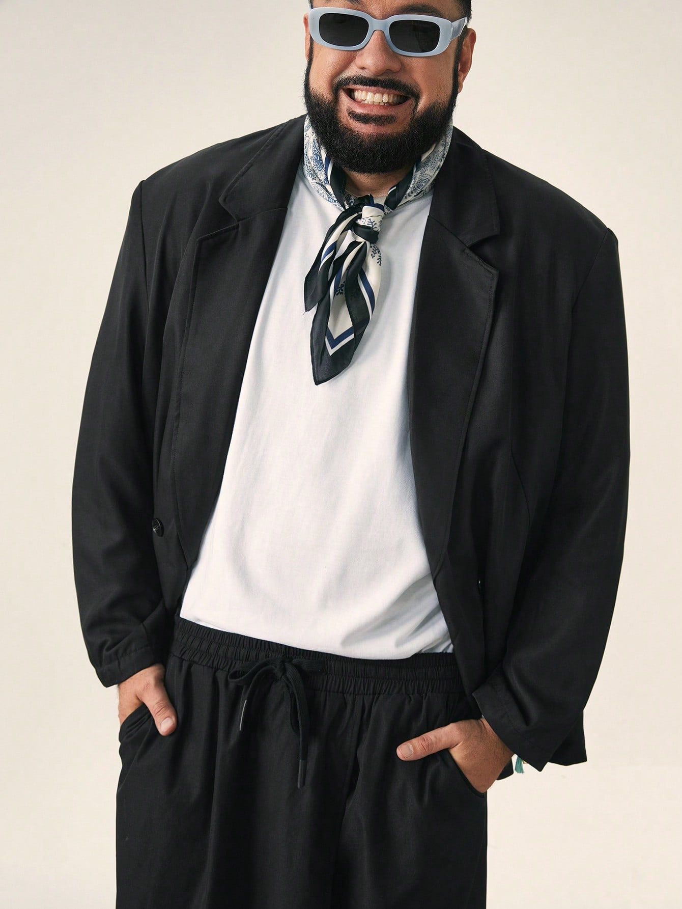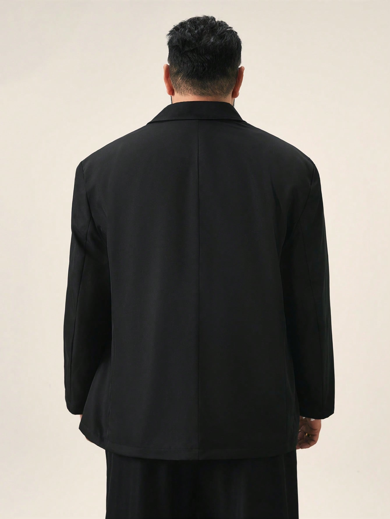 EASEVO Plus Size Men's Loose Fit Black Woven Long Sleeve Blazer Jacket