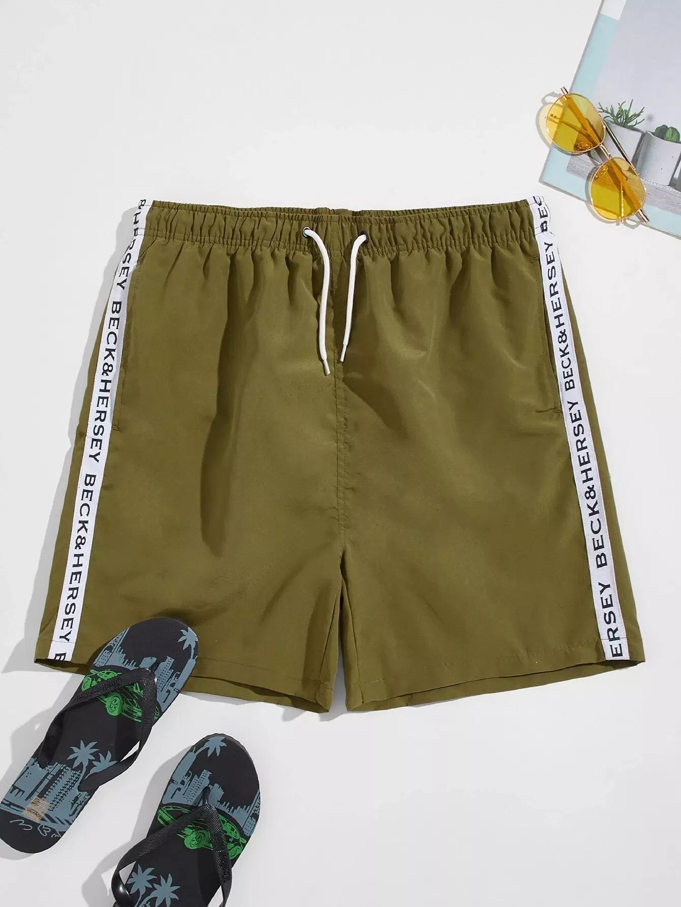 Men - Men Letter Tape Drawstring Swim Shorts
