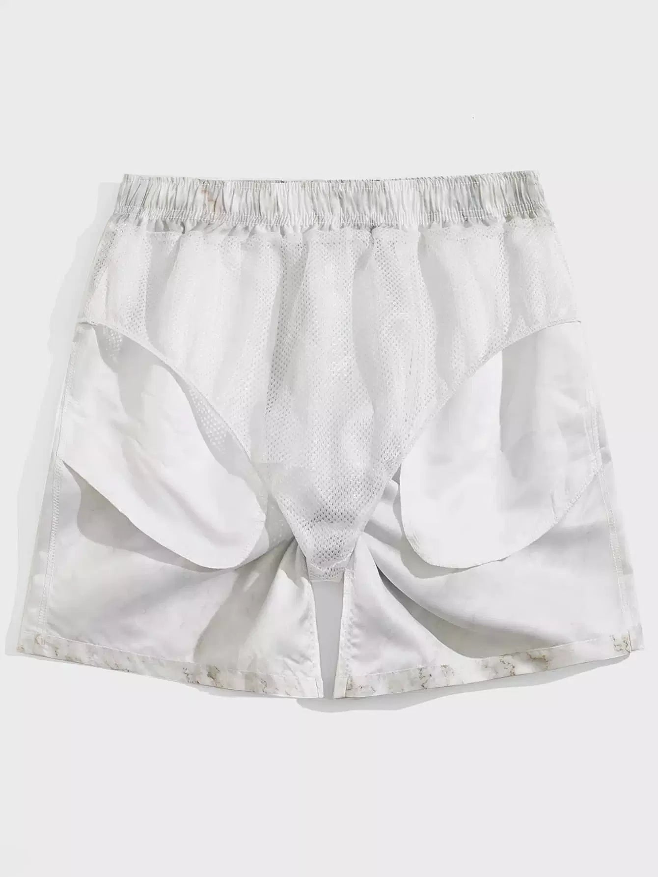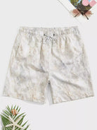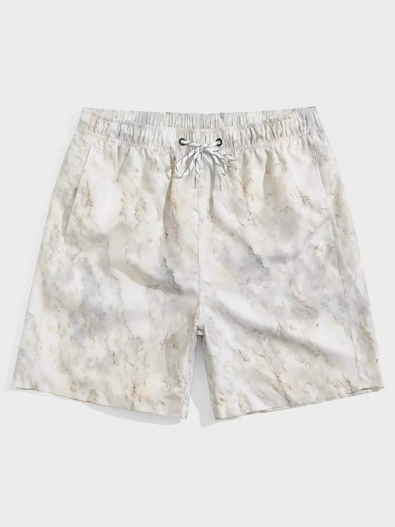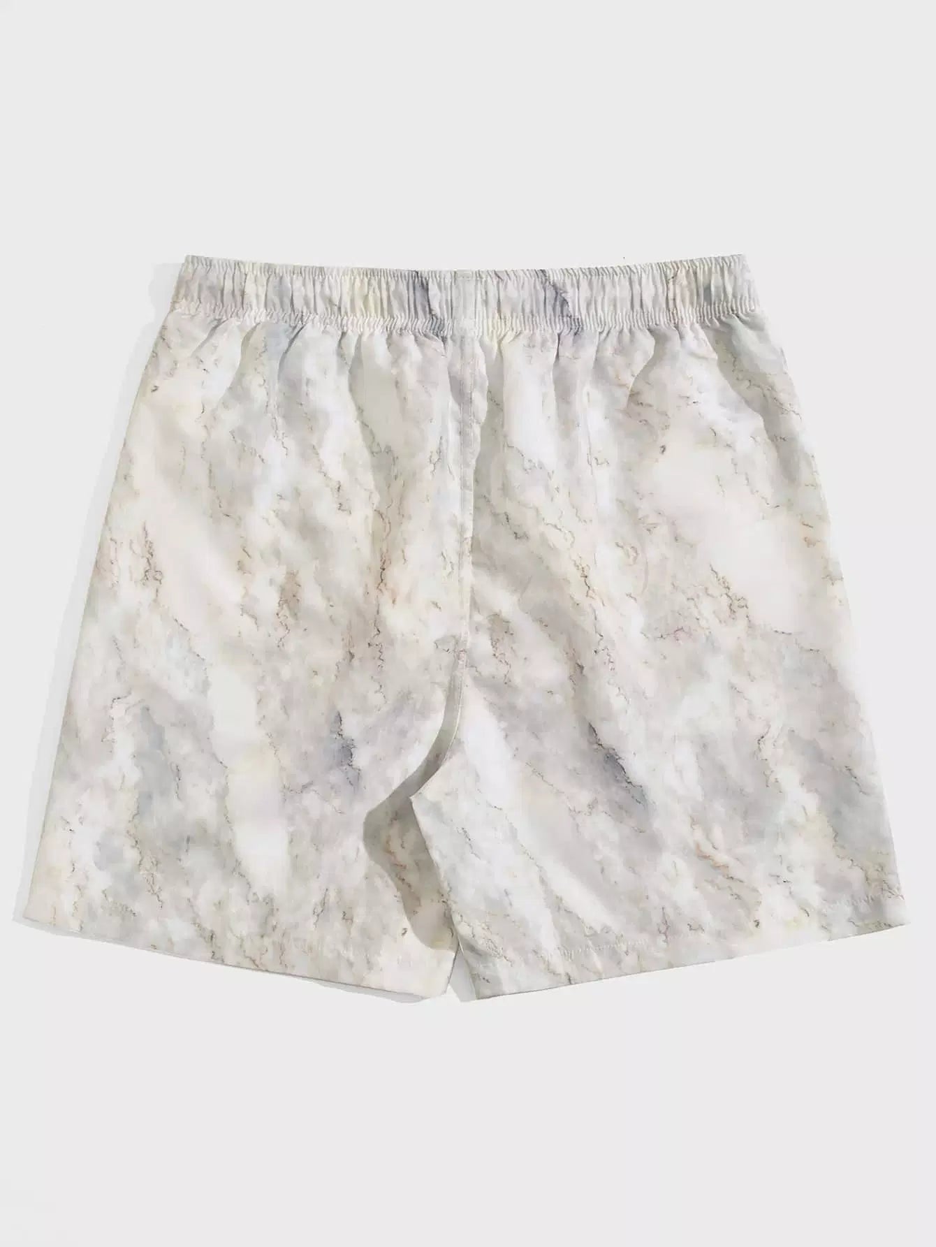 Men Marble Print Grommet Drawstring Waist Swim Trunks