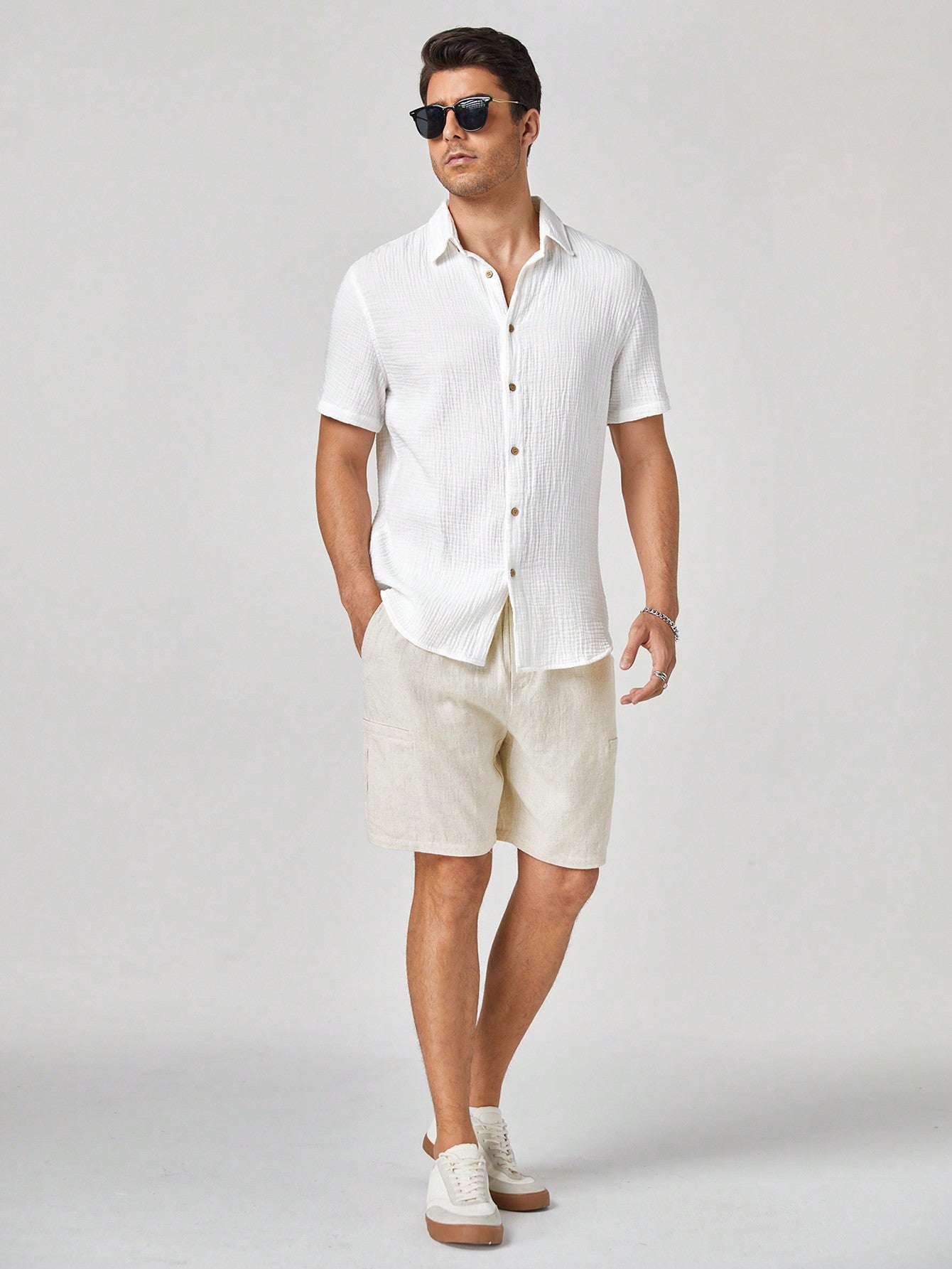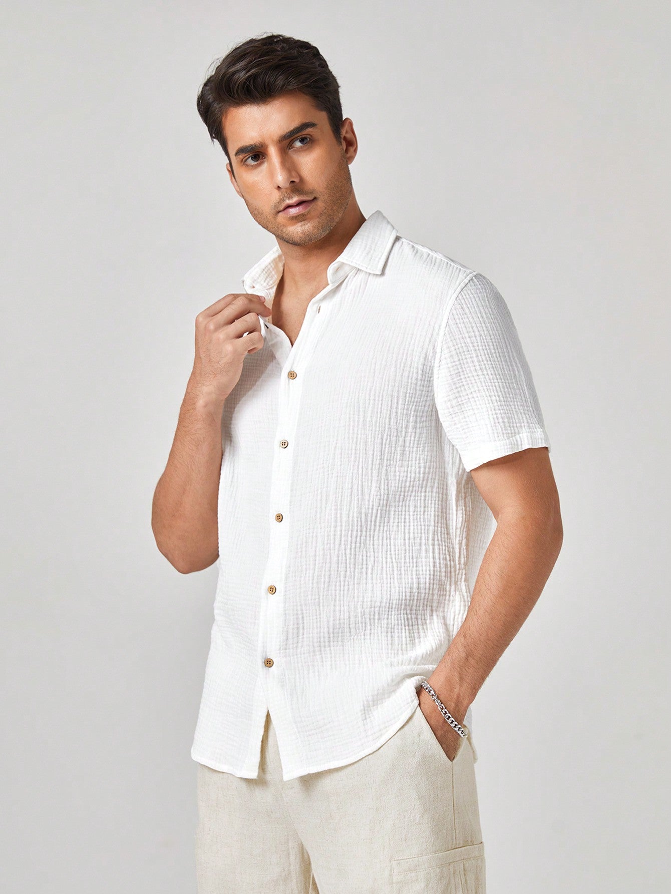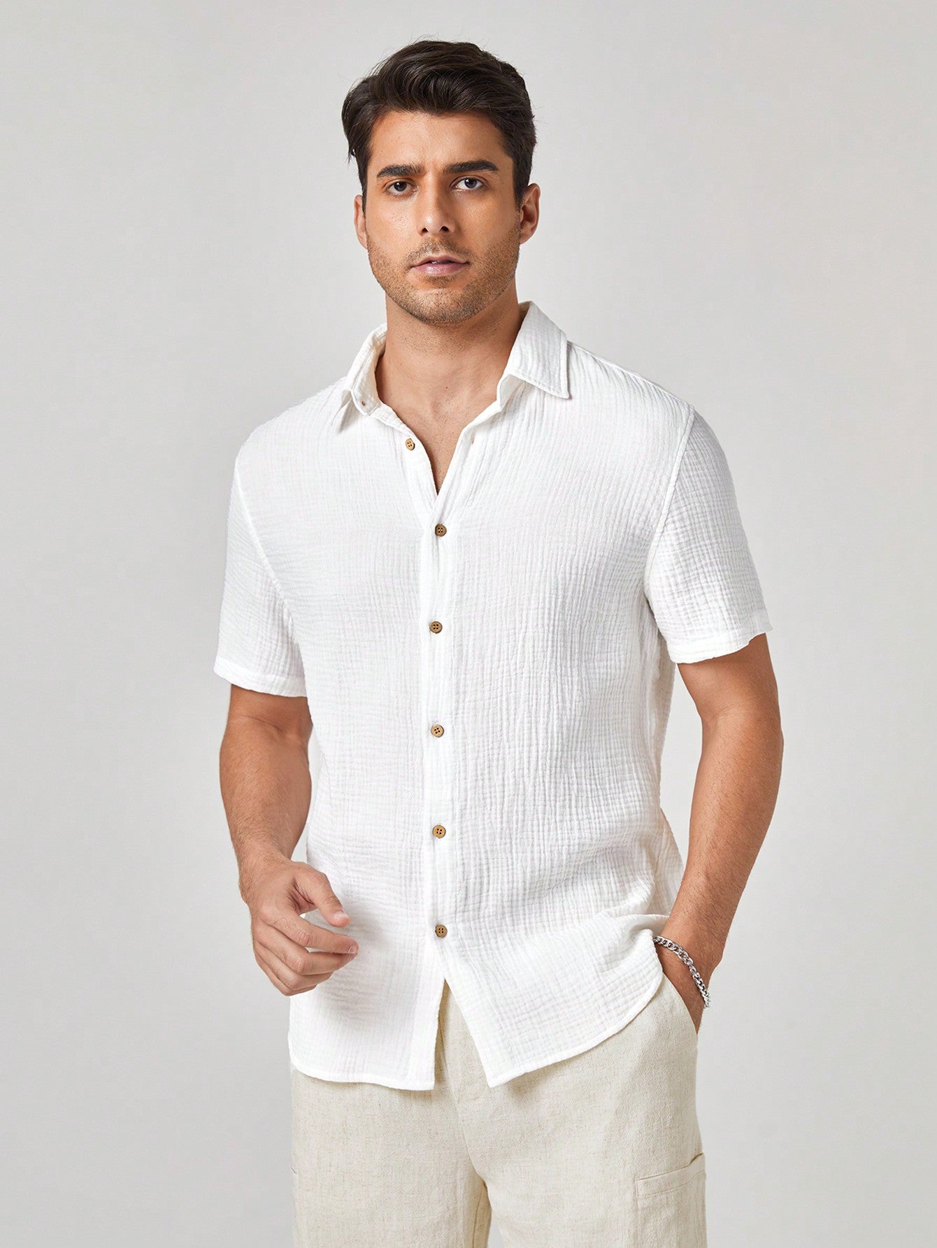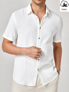 Manfinity BRENVOR Men's Plain Woven Casual Short Sleeve Cotton Shirt