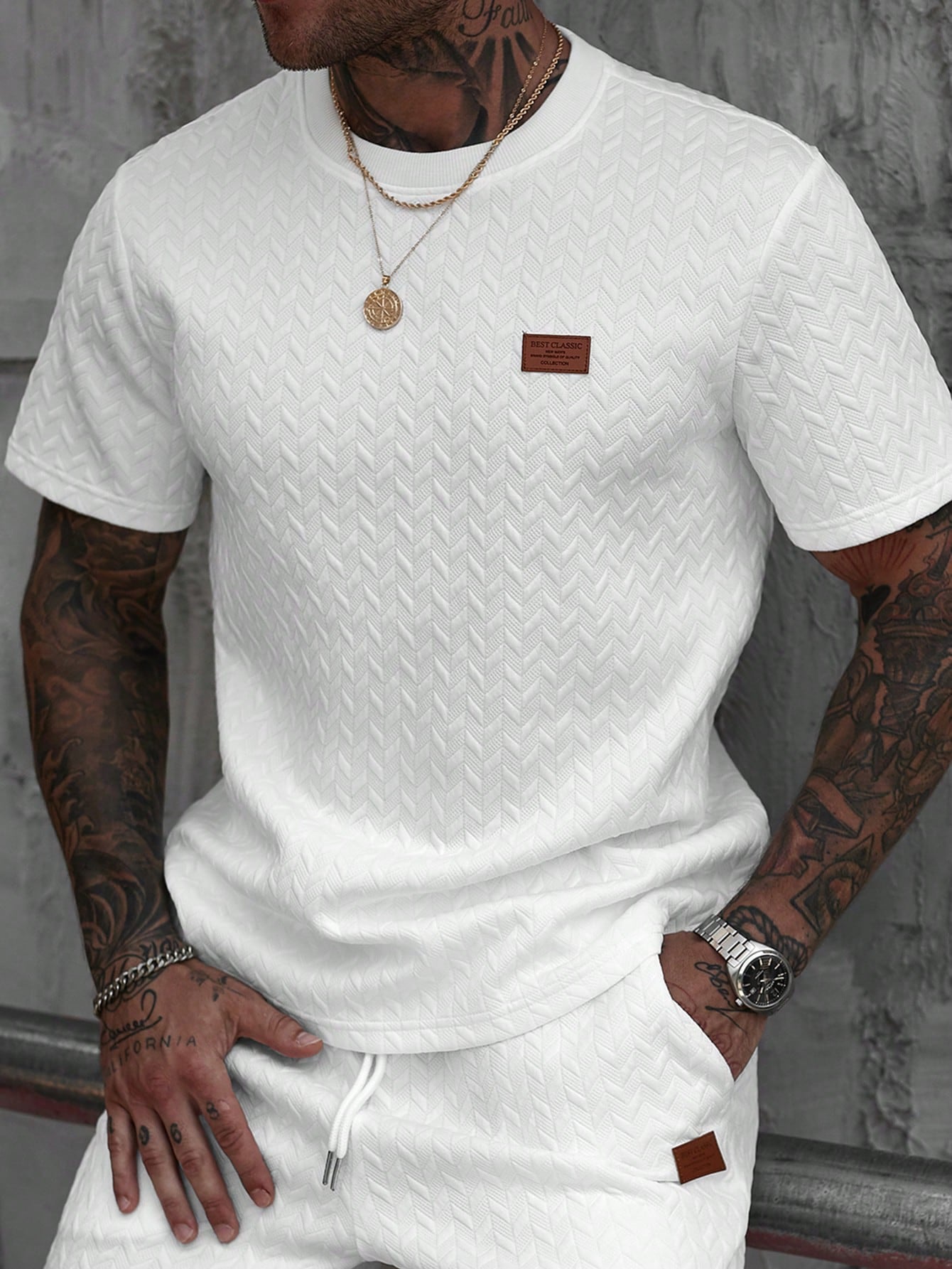 Manfinity CasualCool Men's Summer Jacquard Ribbed Collar Short Sleeve T-Shirt Fine Gift For Boyfriend
