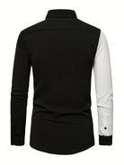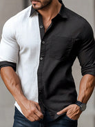 Manfinity Homme Men's Casual Linen-Look Patchwork Long Sleeve Shirt With Chest Pocket