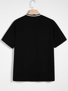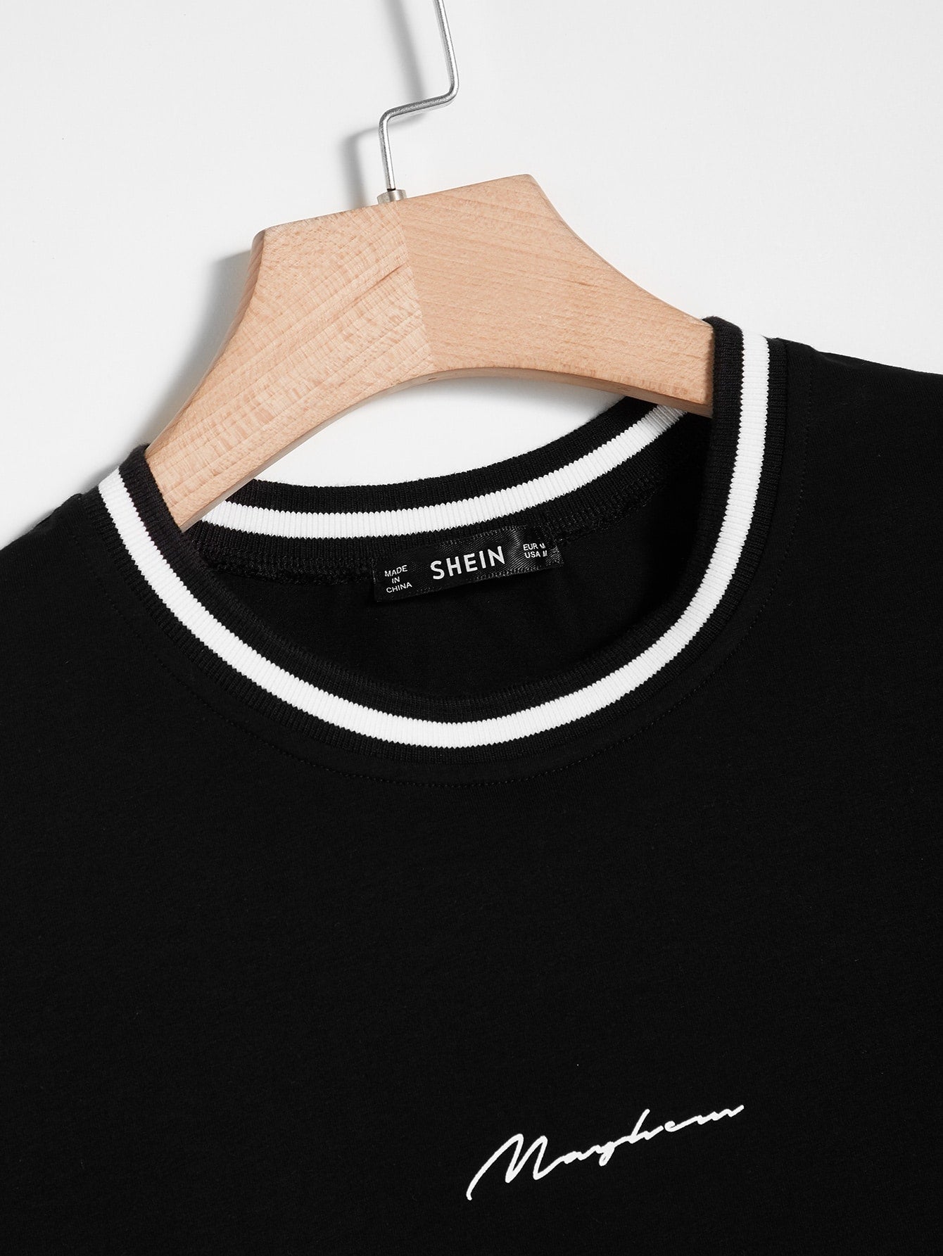 Manfinity VCAY Men Cotton Letter Print Striped Tape Neck Tee, Summer
