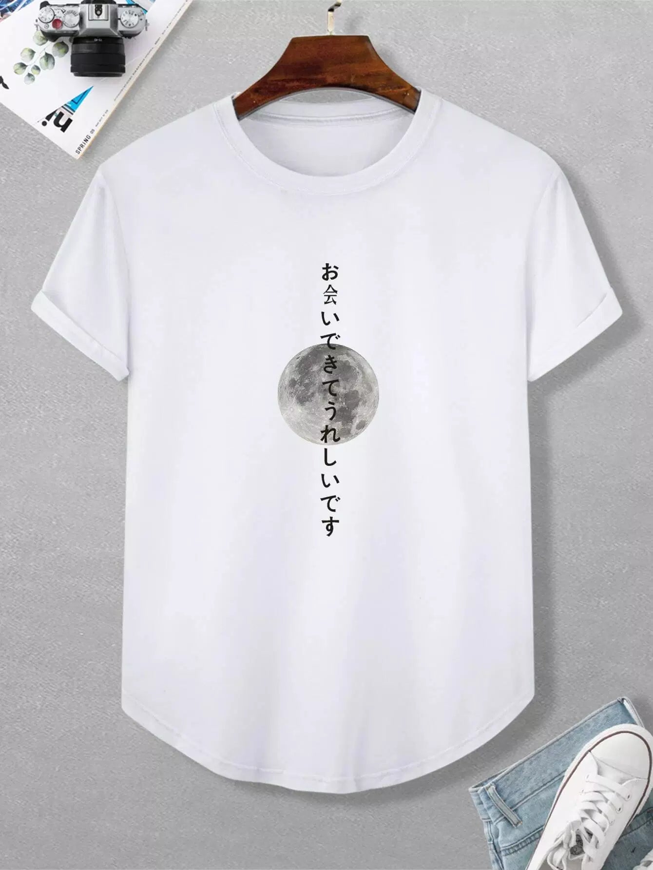 Men Moon And Japanese Letter Graphic Tee