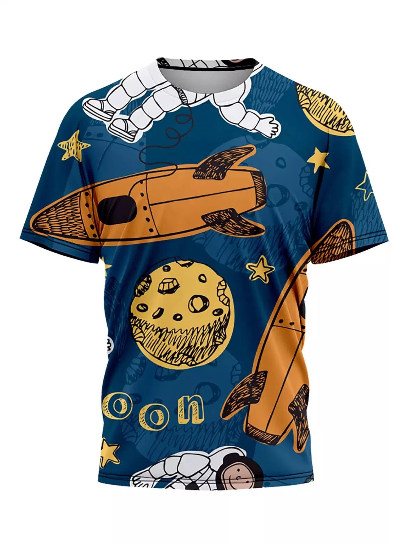 Men Rocket & Planet Print Tee