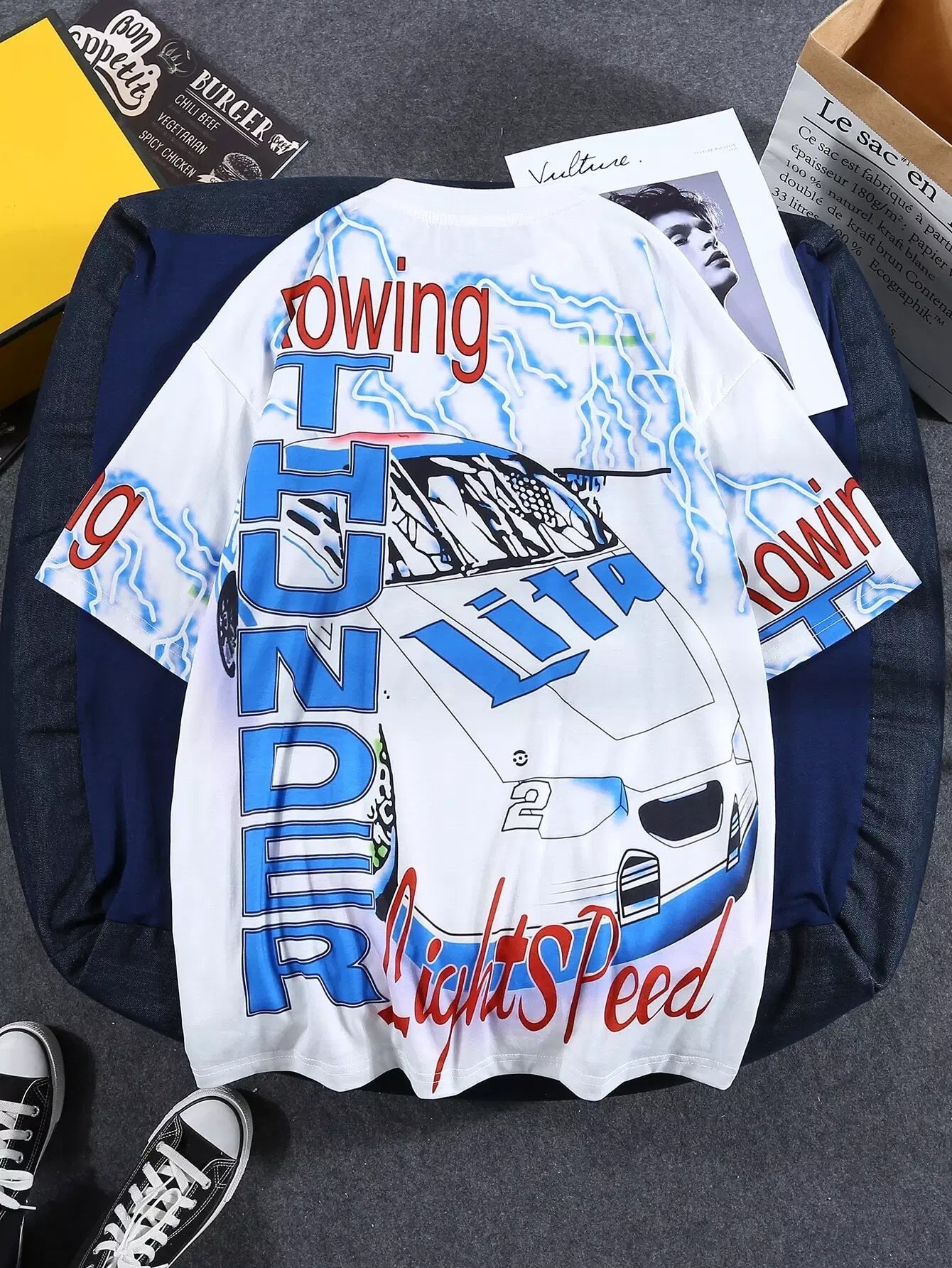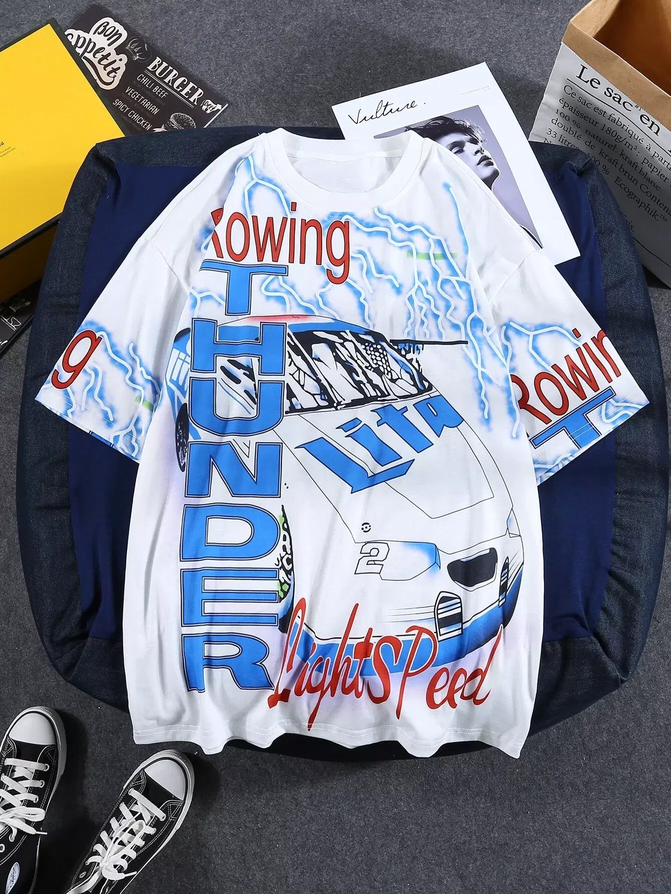 Men Vehicle And Letter Graphic Tee