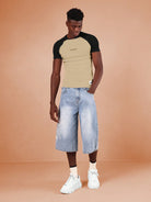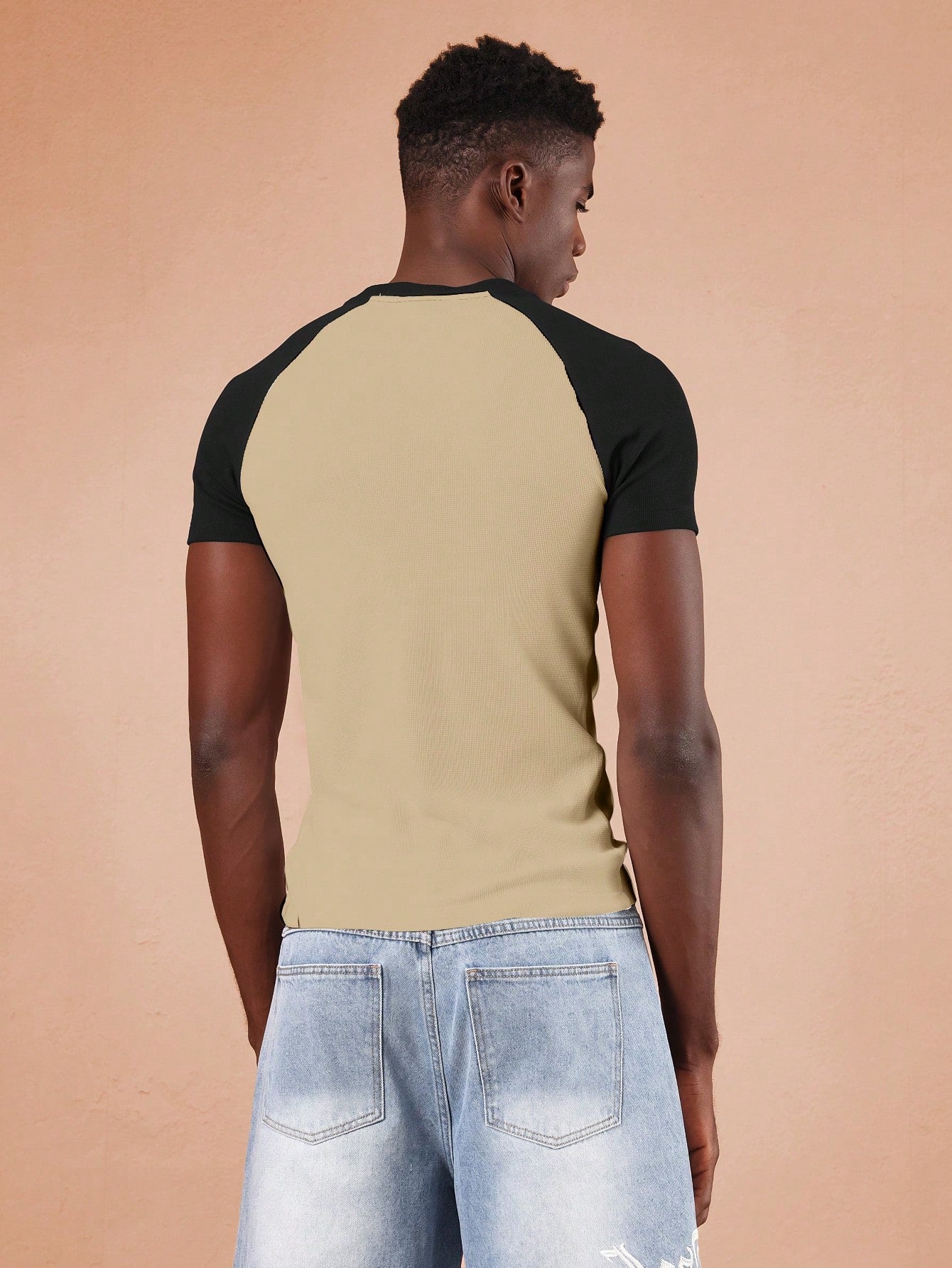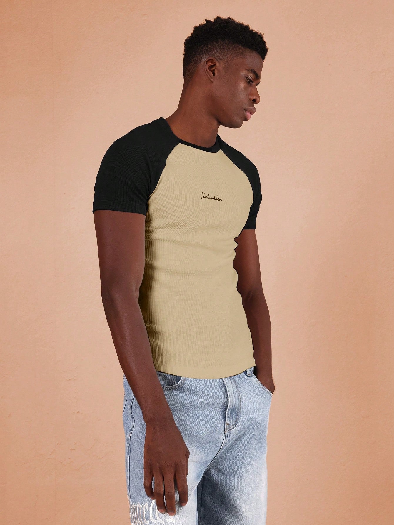 men SUMWON Textured Raglan Short Sleeve Muscle Fit T-Shirt Embroidered Statement Ribbed Athletic Sports Casual Spring Summer Wear