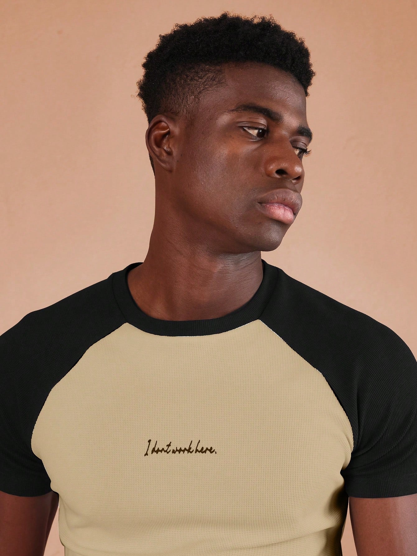 SUMWON Textured Raglan Short Sleeve Muscle Fit T-Shirt Embroidered Statement Ribbed Athletic Sports Casual Spring Summer Wear