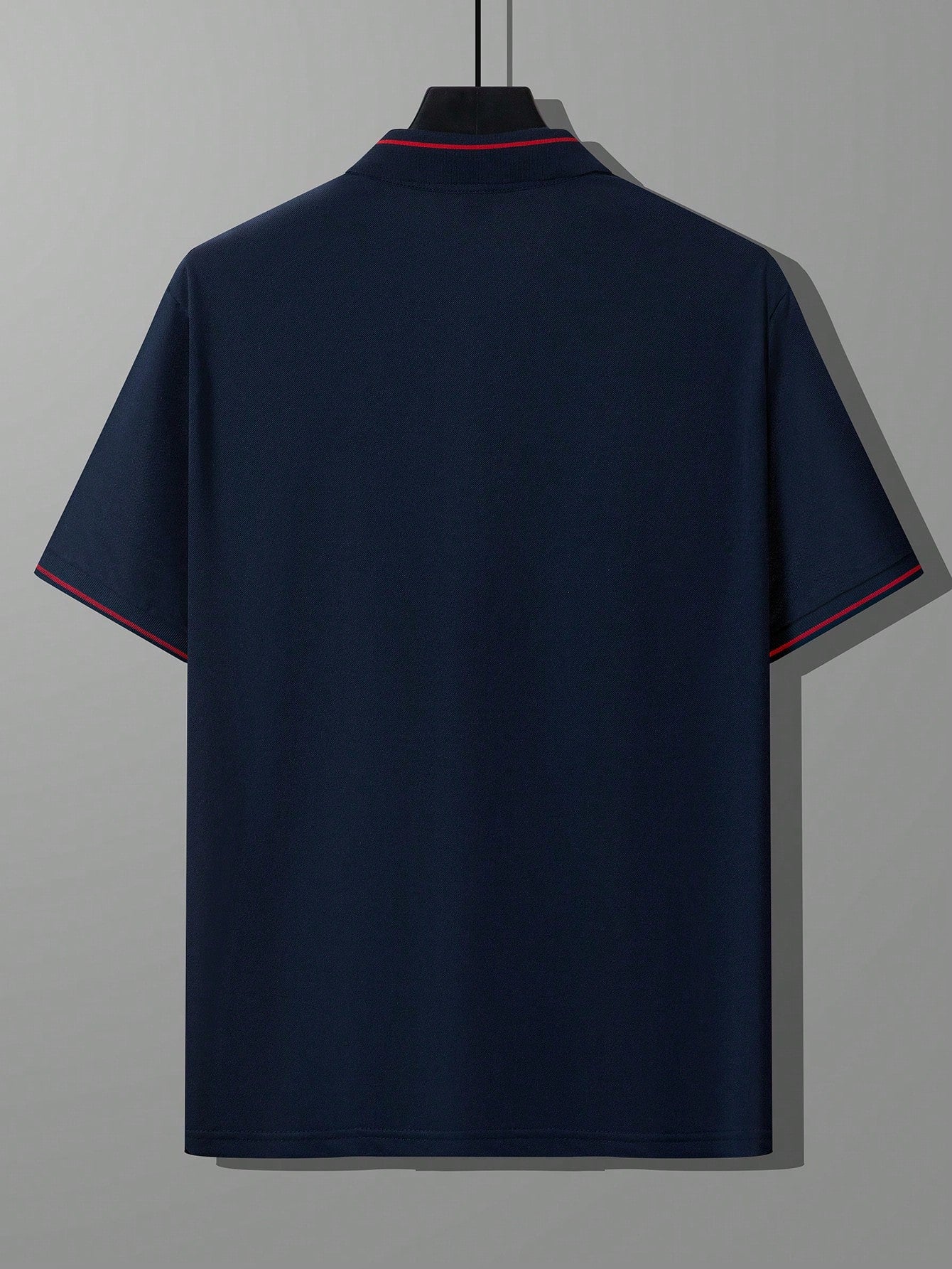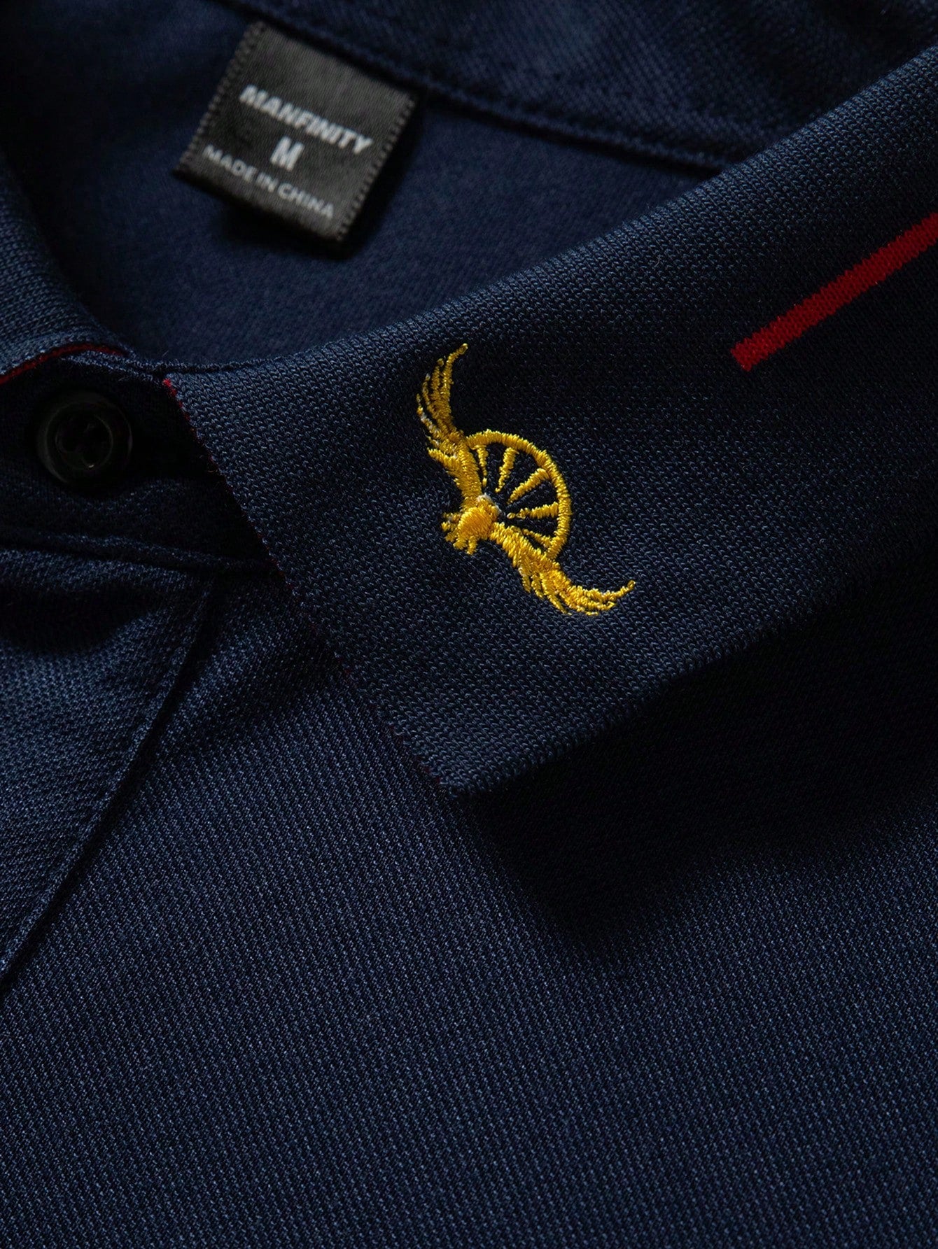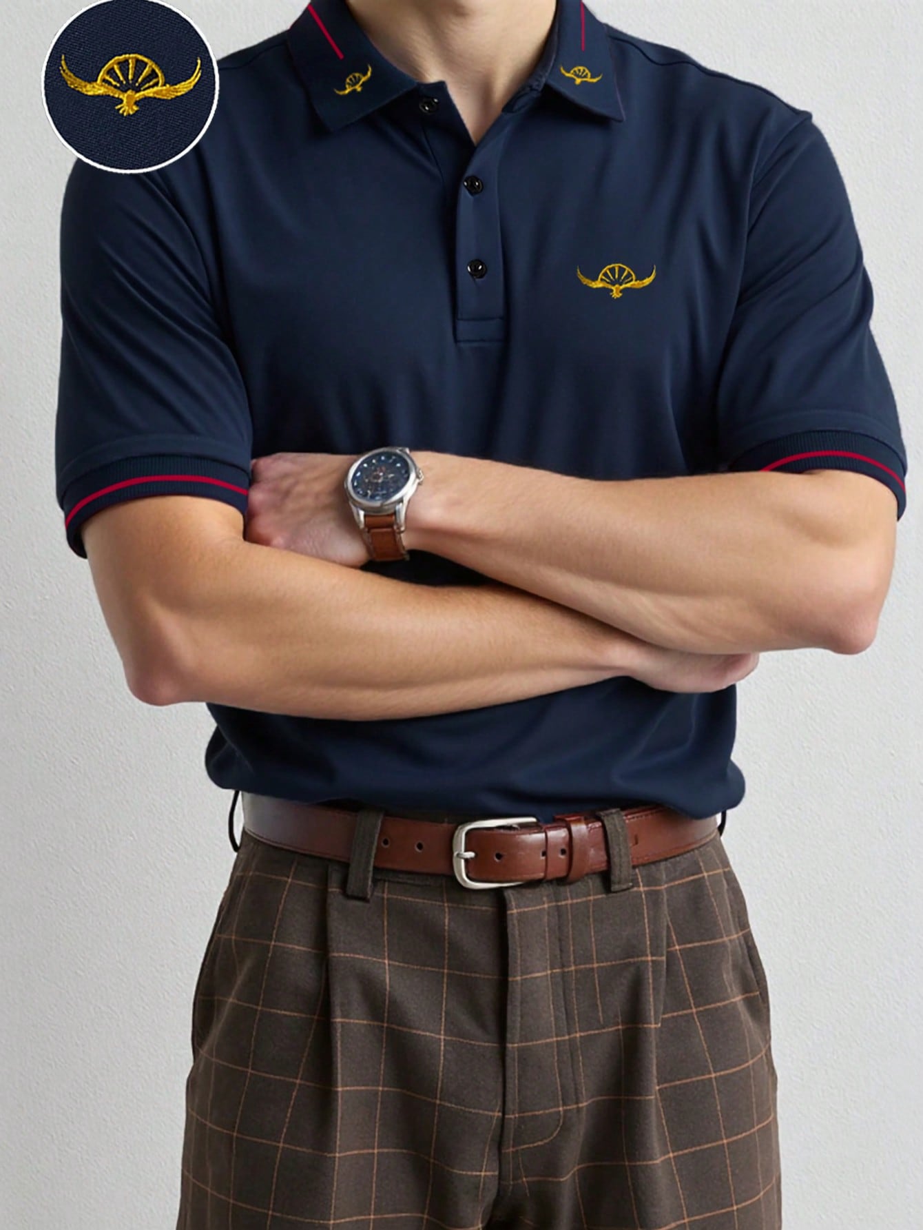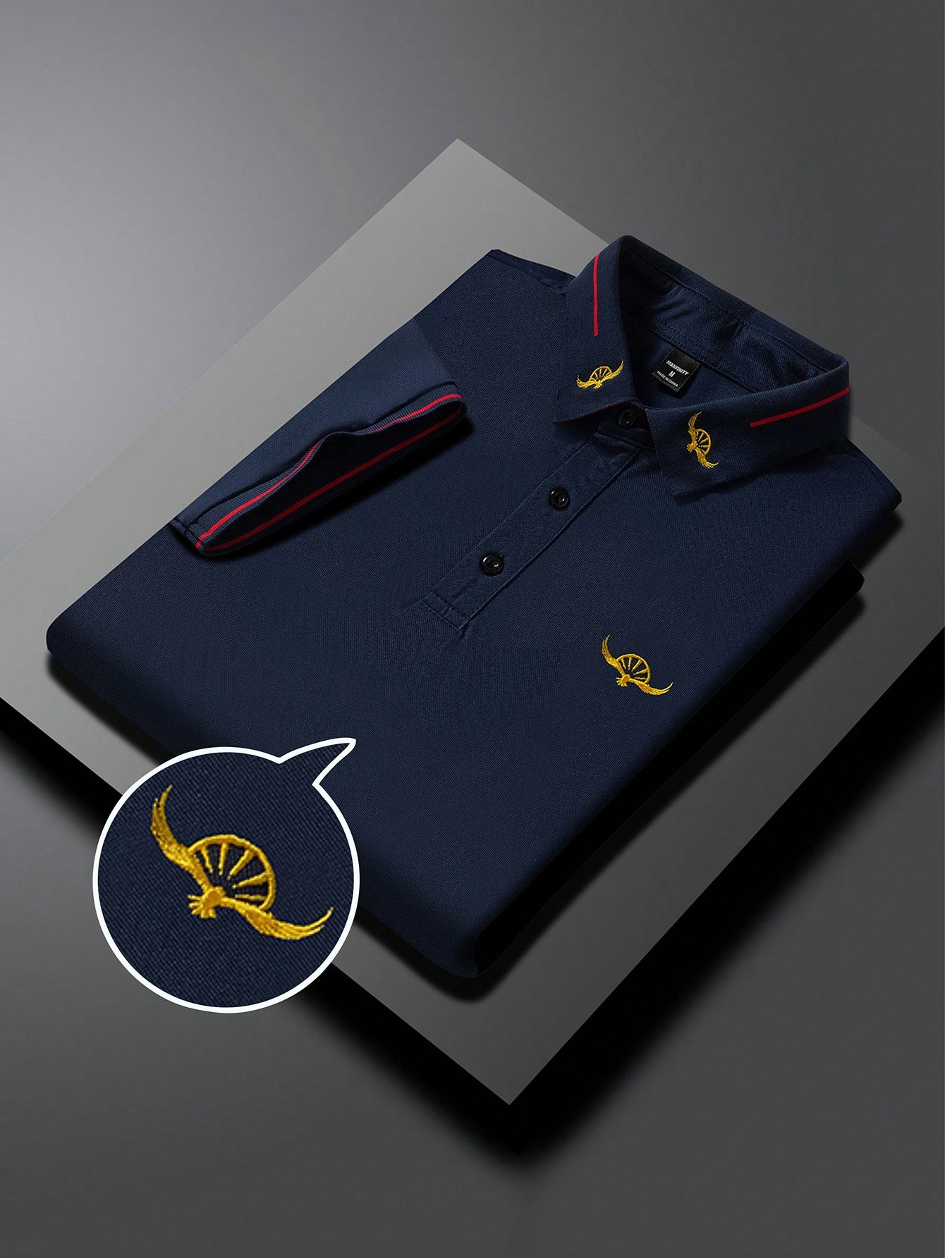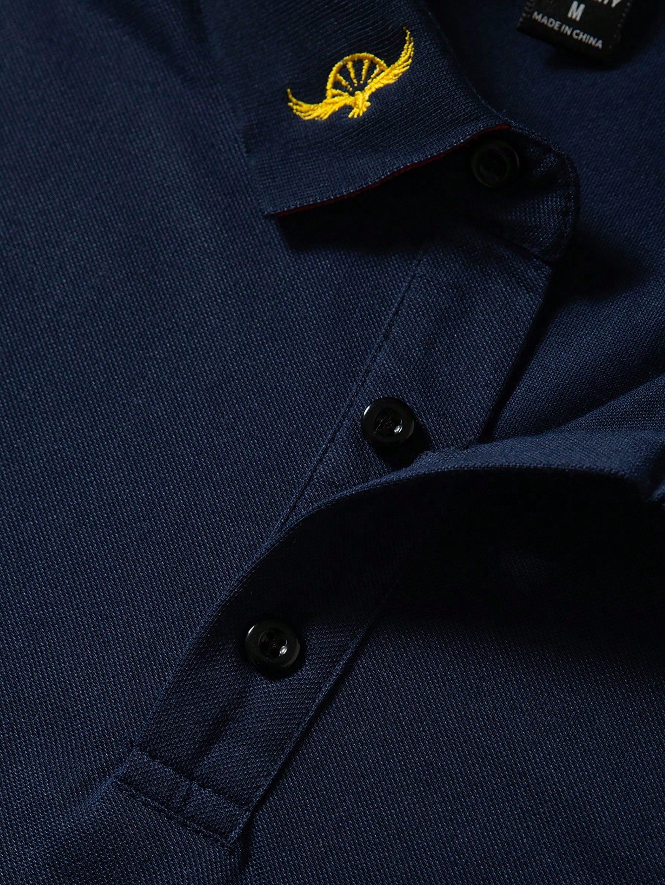 Manfinity Homme Men's Casual Eagle Embroidered Short Sleeve Polo Shirt, Office Commute Wear