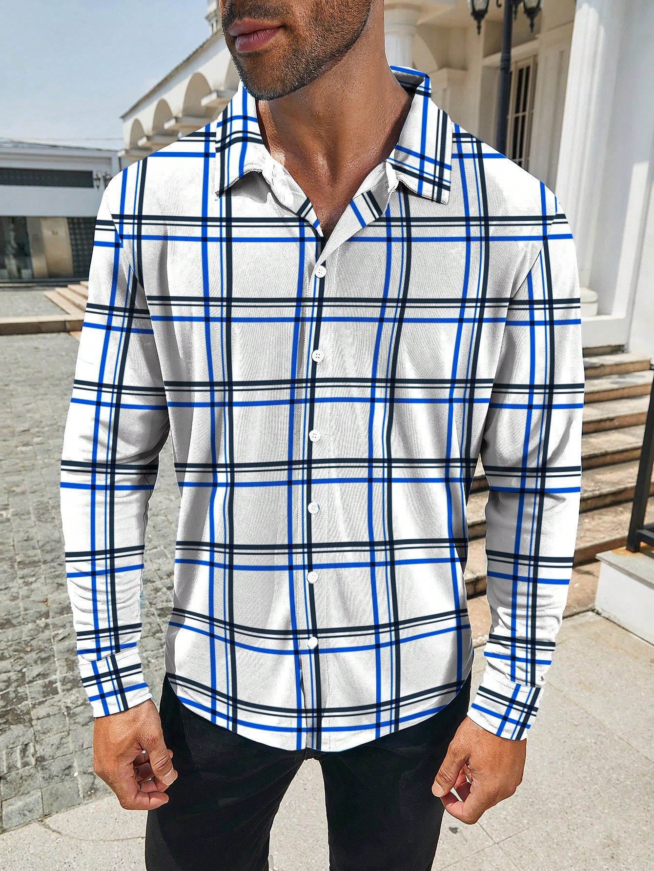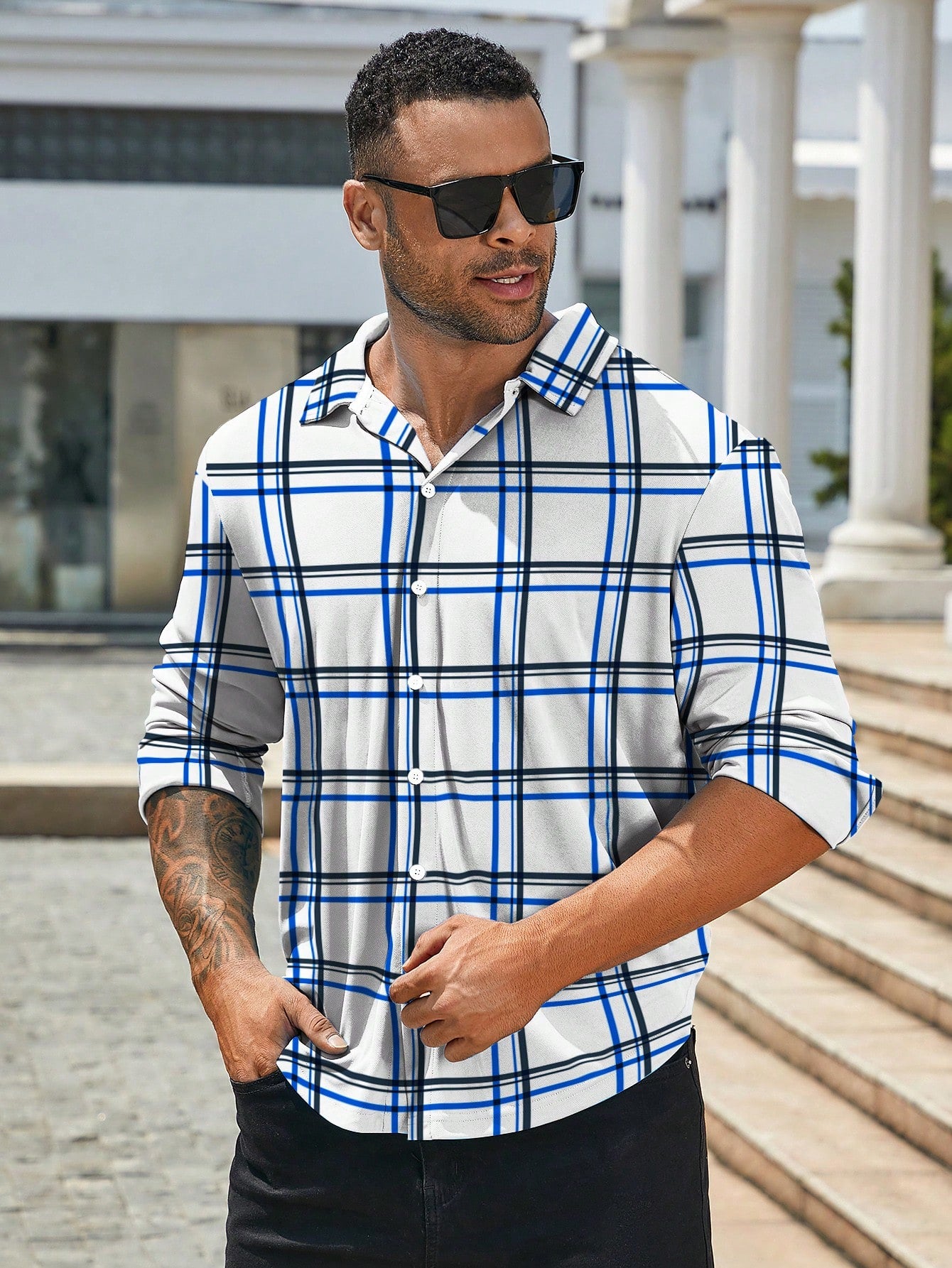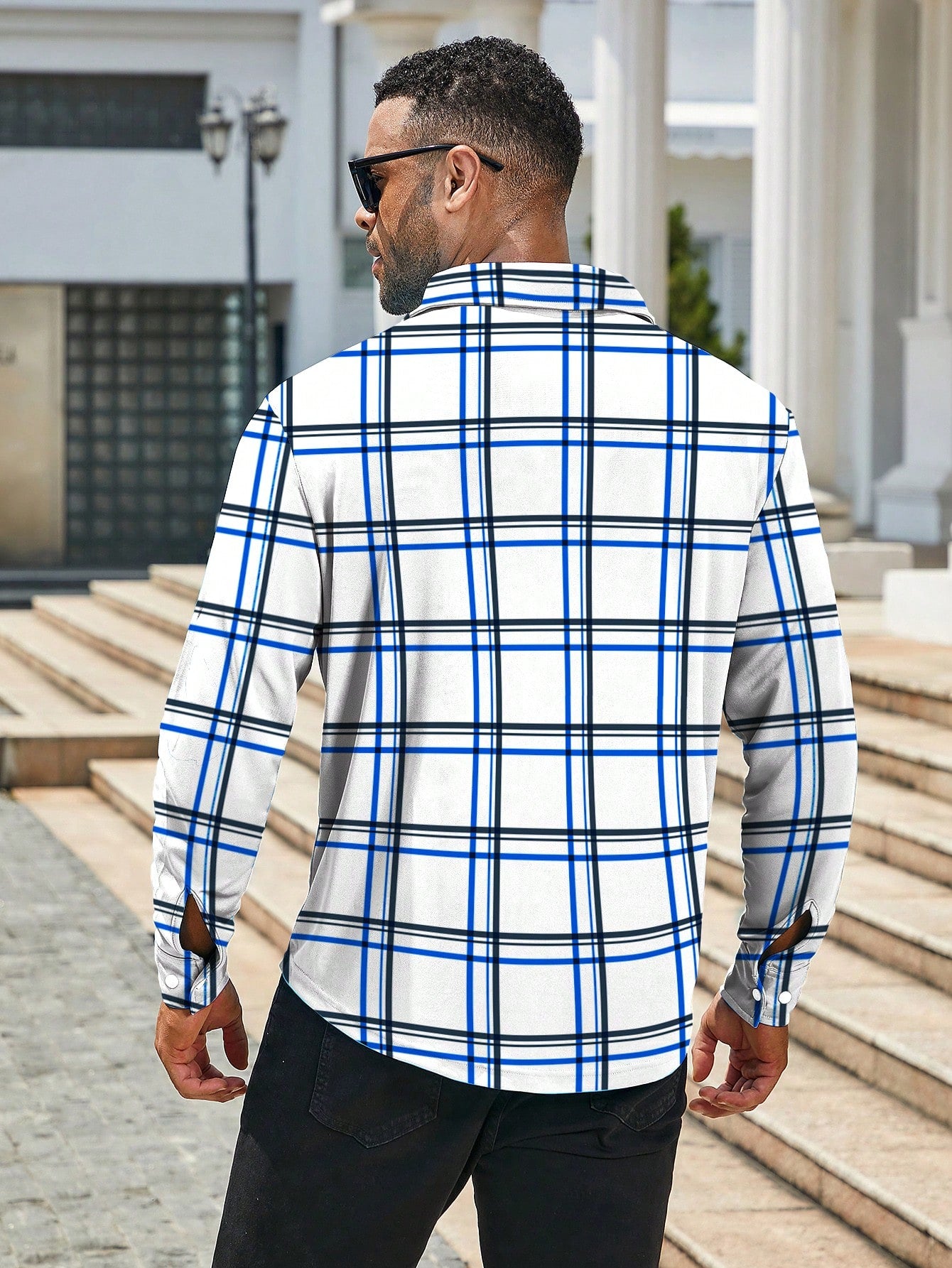 Manfinity Homme Men's Plus Size Button-Down Long Sleeve Plaid Casual Business Dress Shirt
