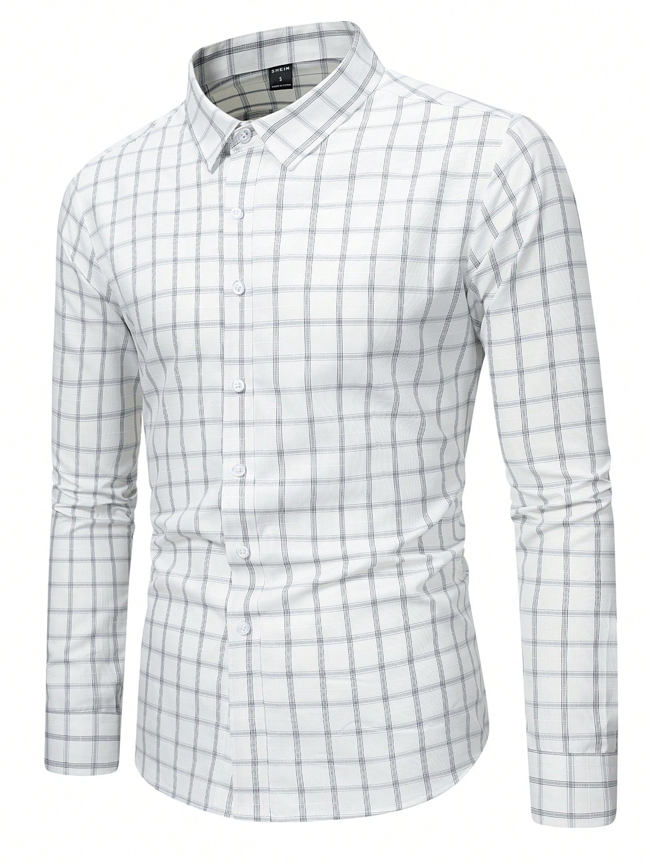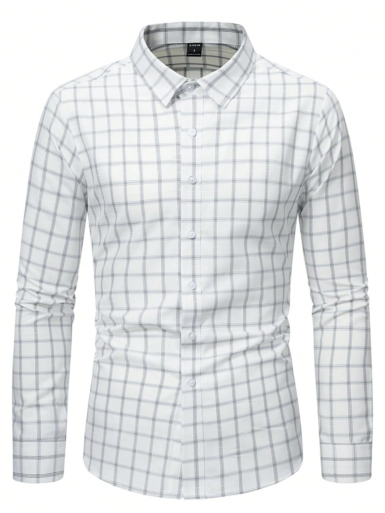 Manfinity Mode Men Spring Casual Plaid Long Sleeve Shirt For Business Commute