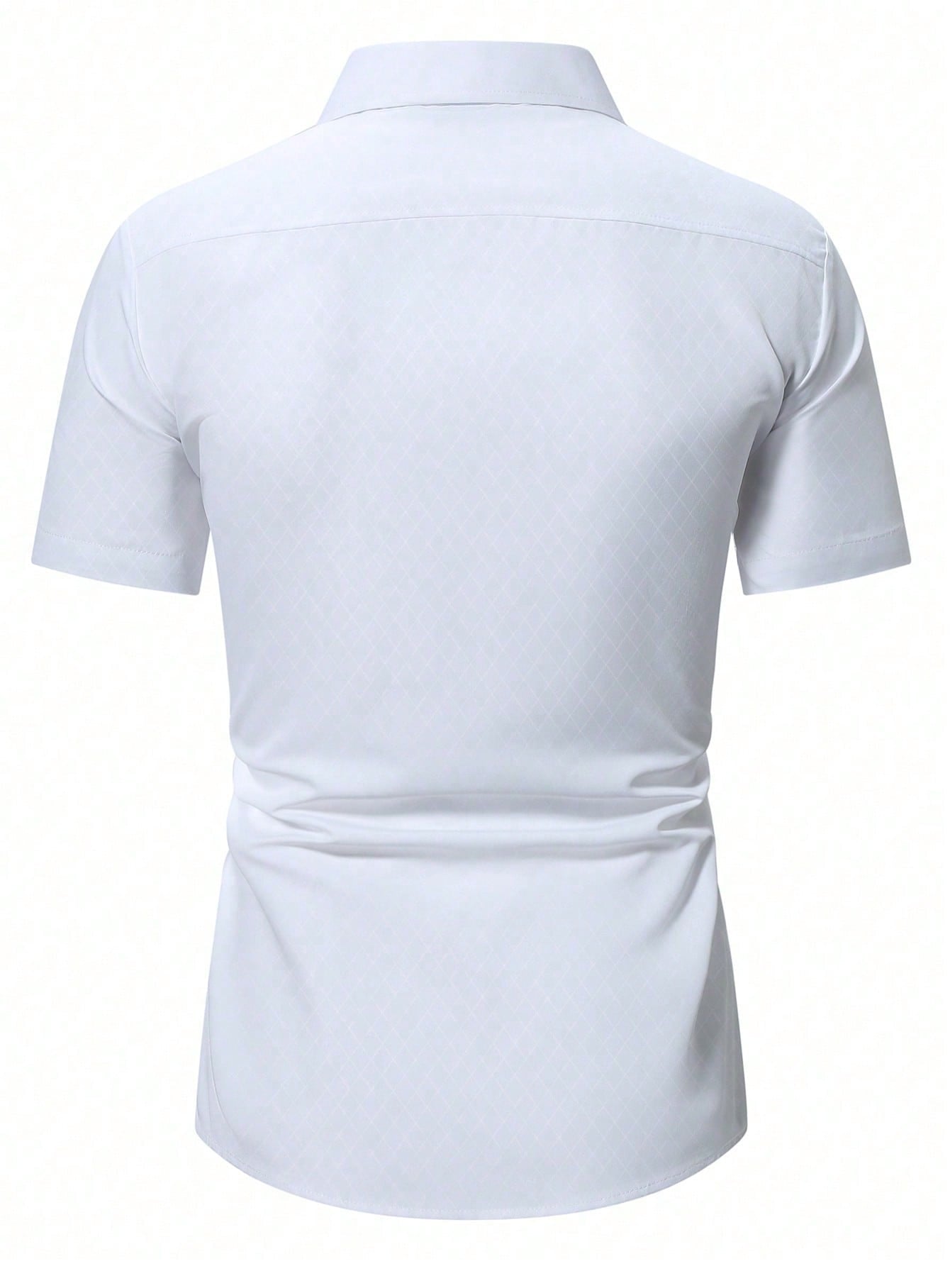 Manfinity Mode Men's Front Button Short Sleeve Pocket Casual Top (Graphic Print Asymmetric Cut)