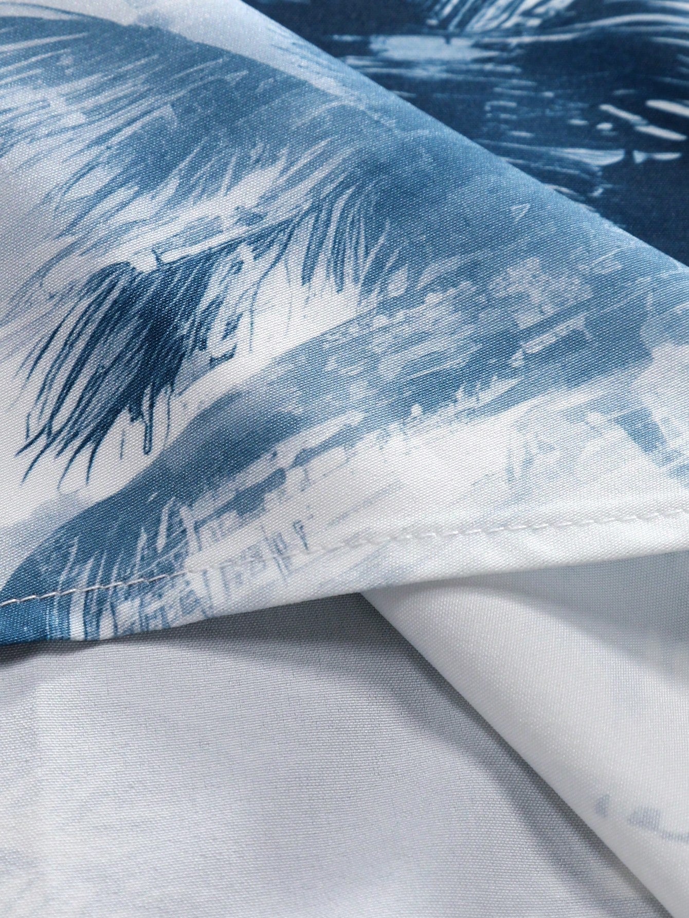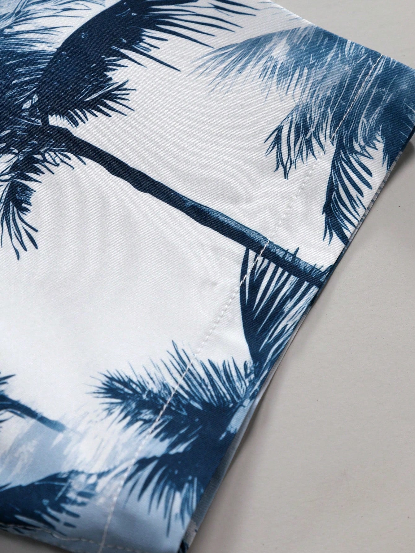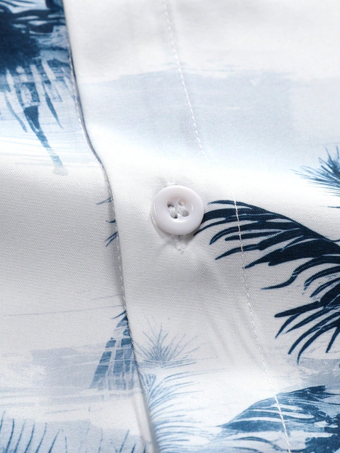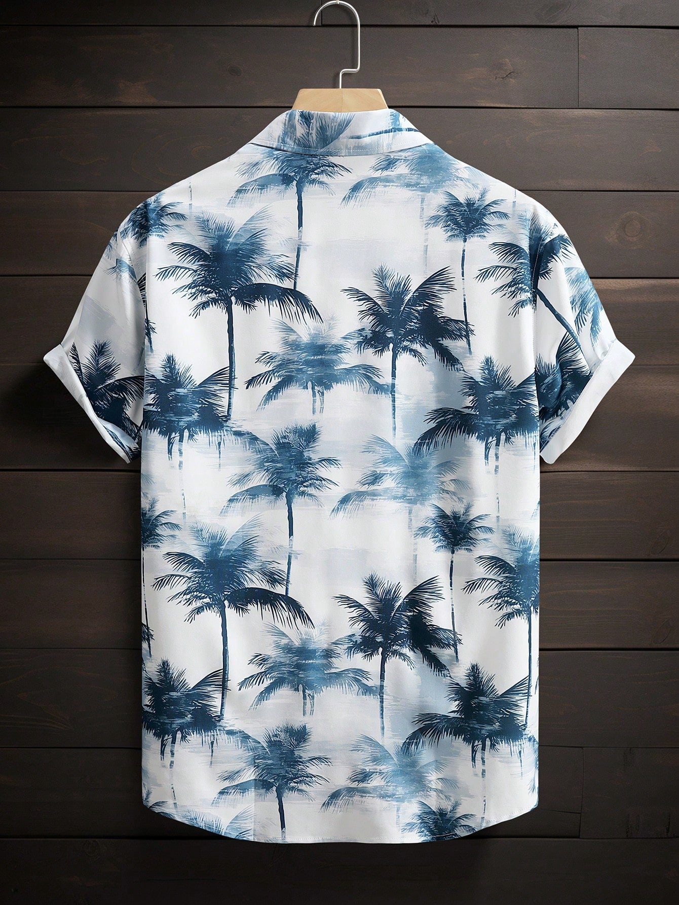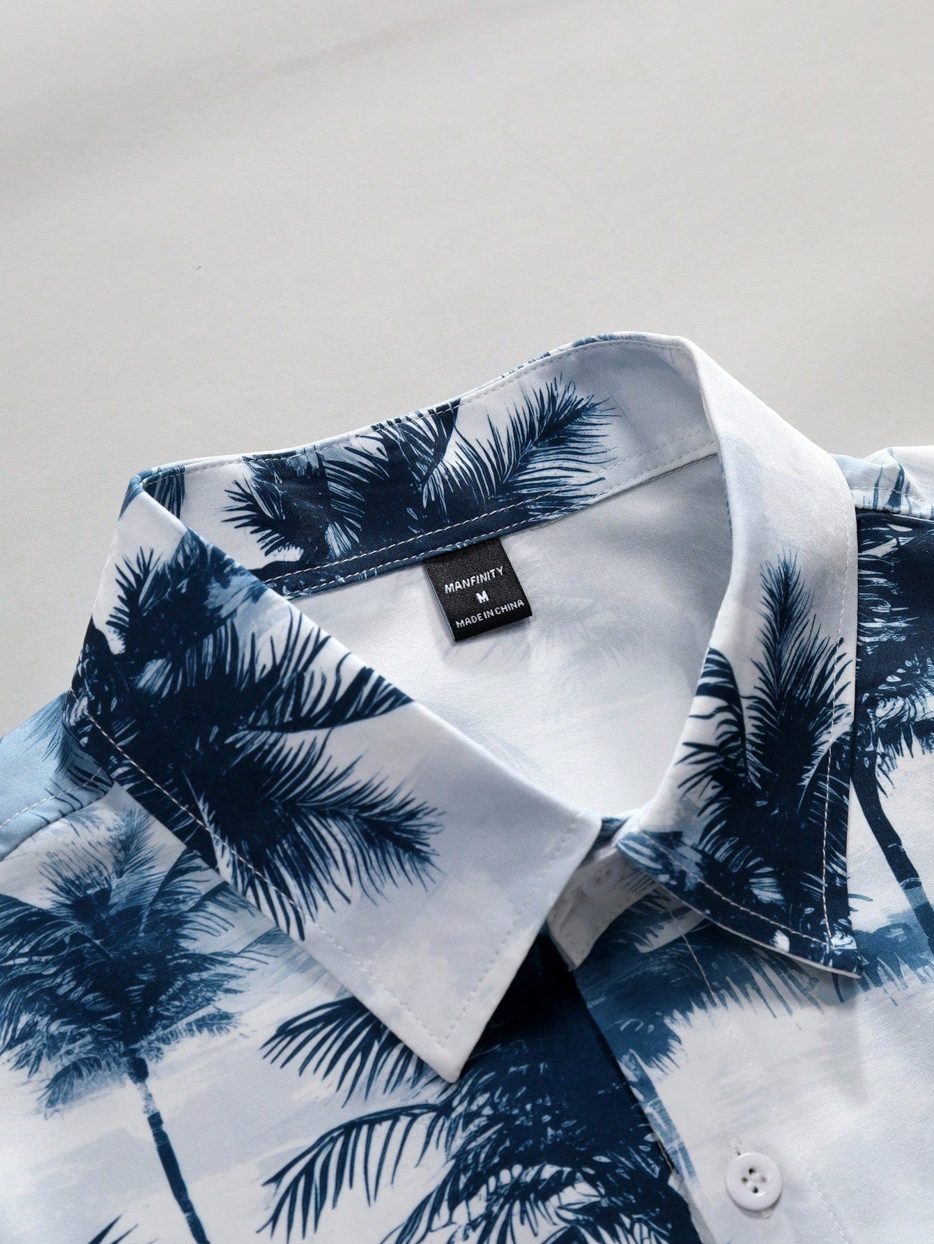 Manfinity RSRT Men Tropical Coconut Tree Printed Graphic Casual Collar Short Sleeve Button-Up Shirt,