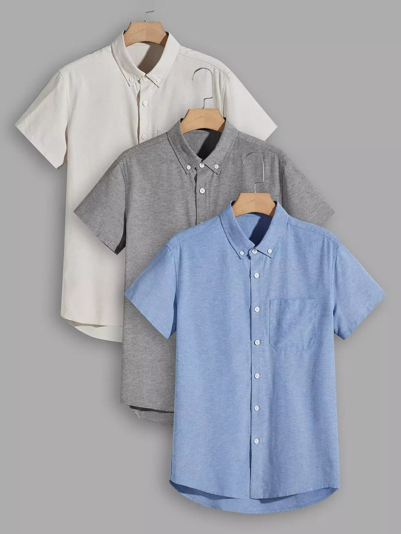 Men 3 Pack Cotton Patch Pocket Button Down Shirt