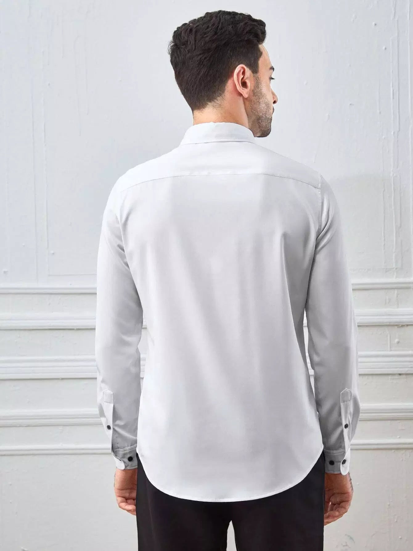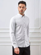 Men Button Down Collar Solid Shirt
