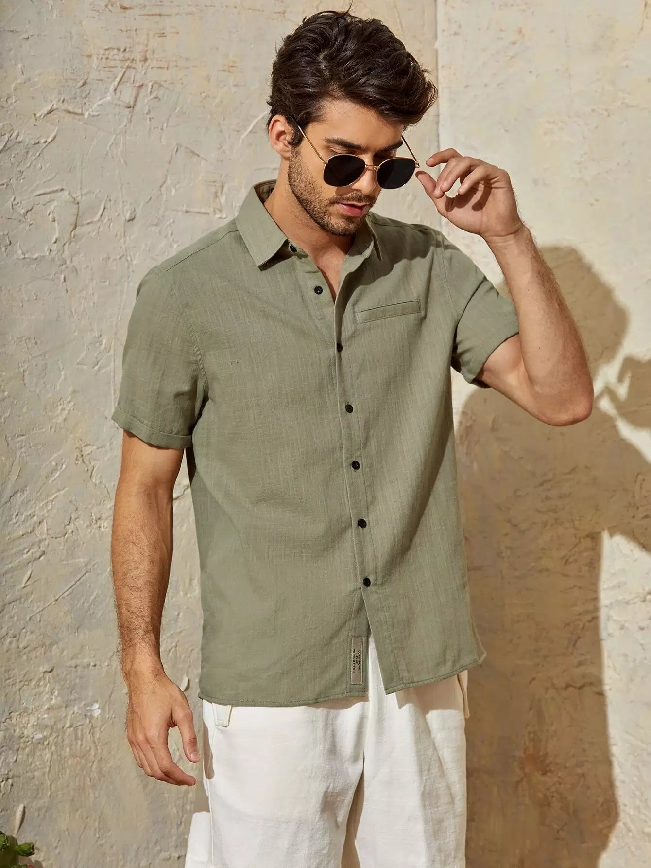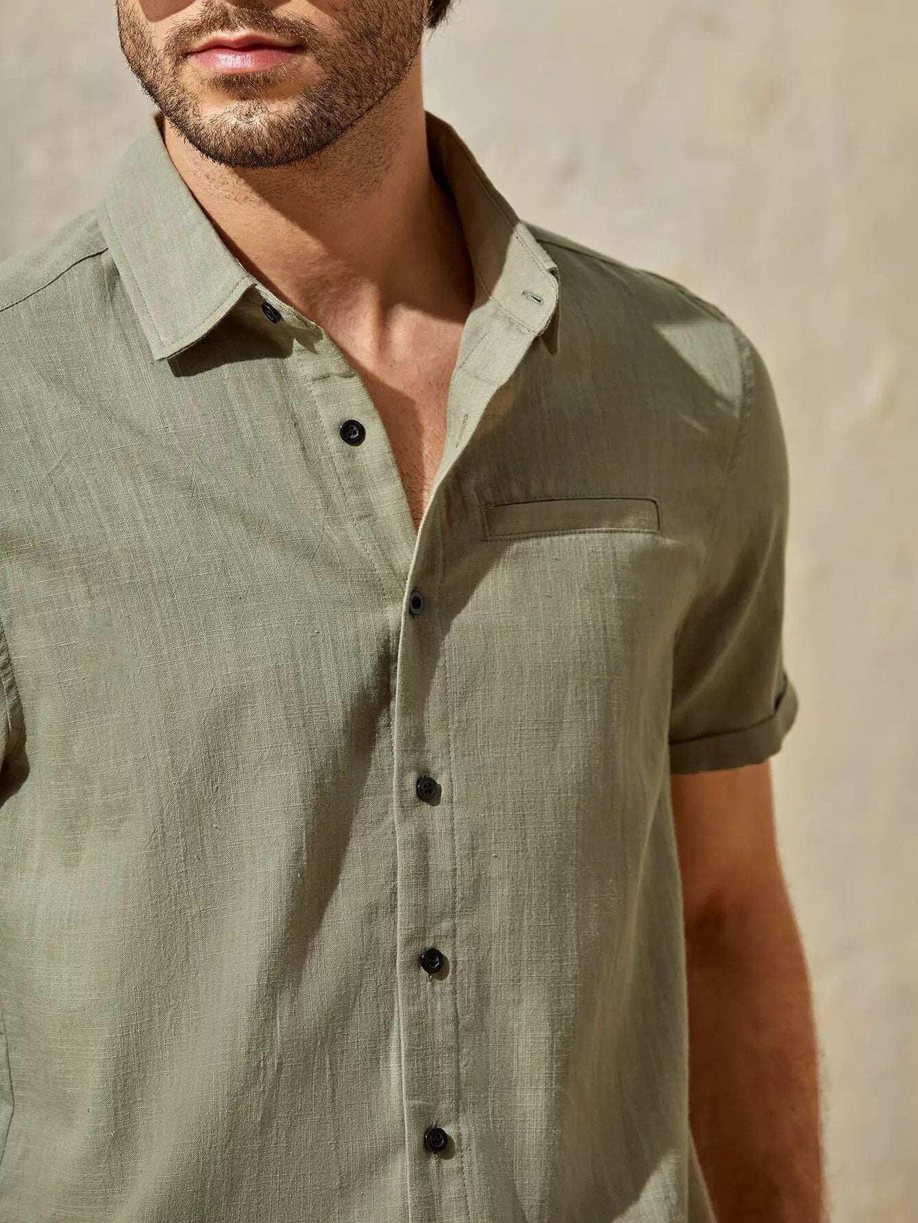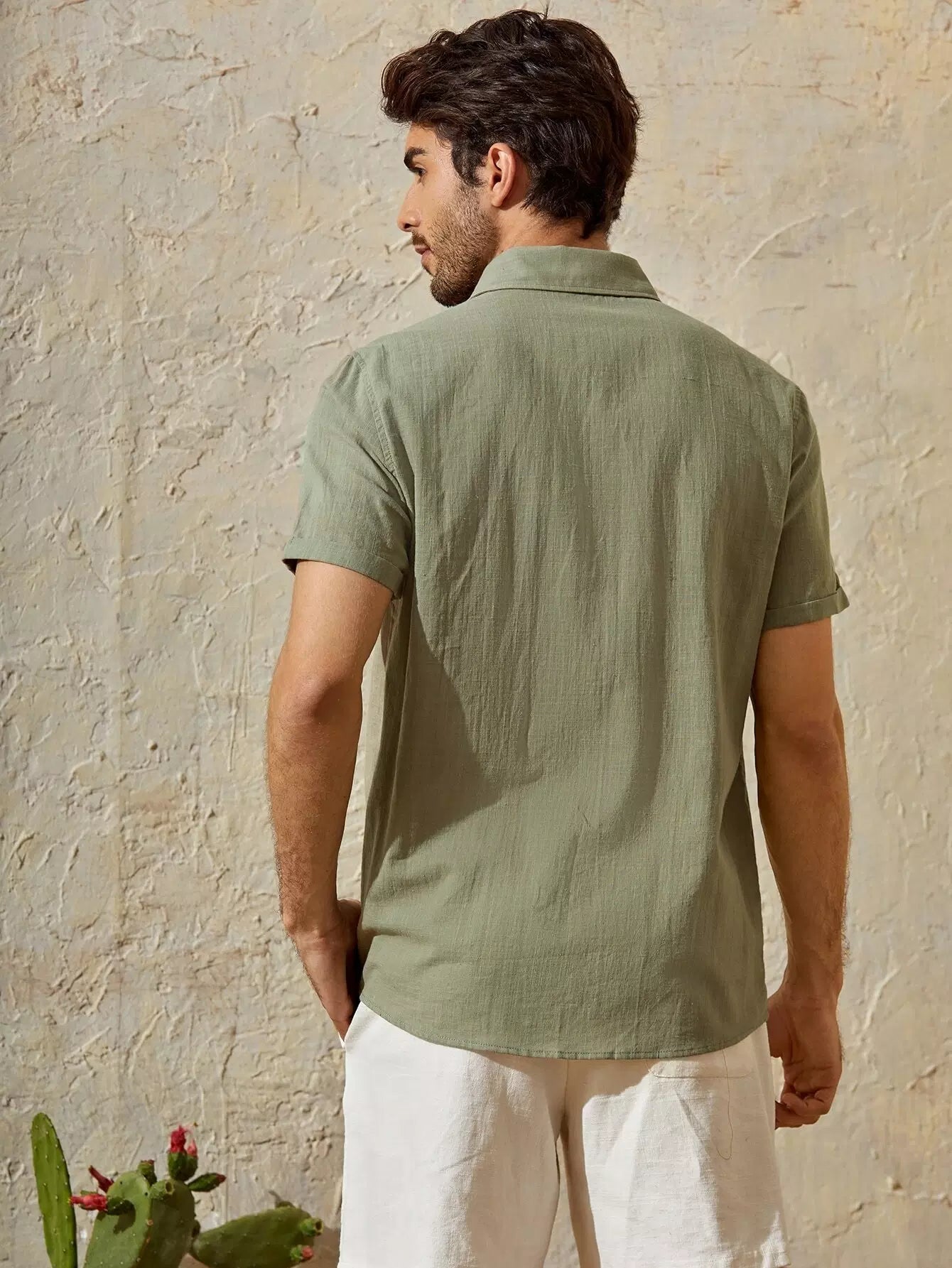 Men Cuffed Sleeve Button Placket Shirt