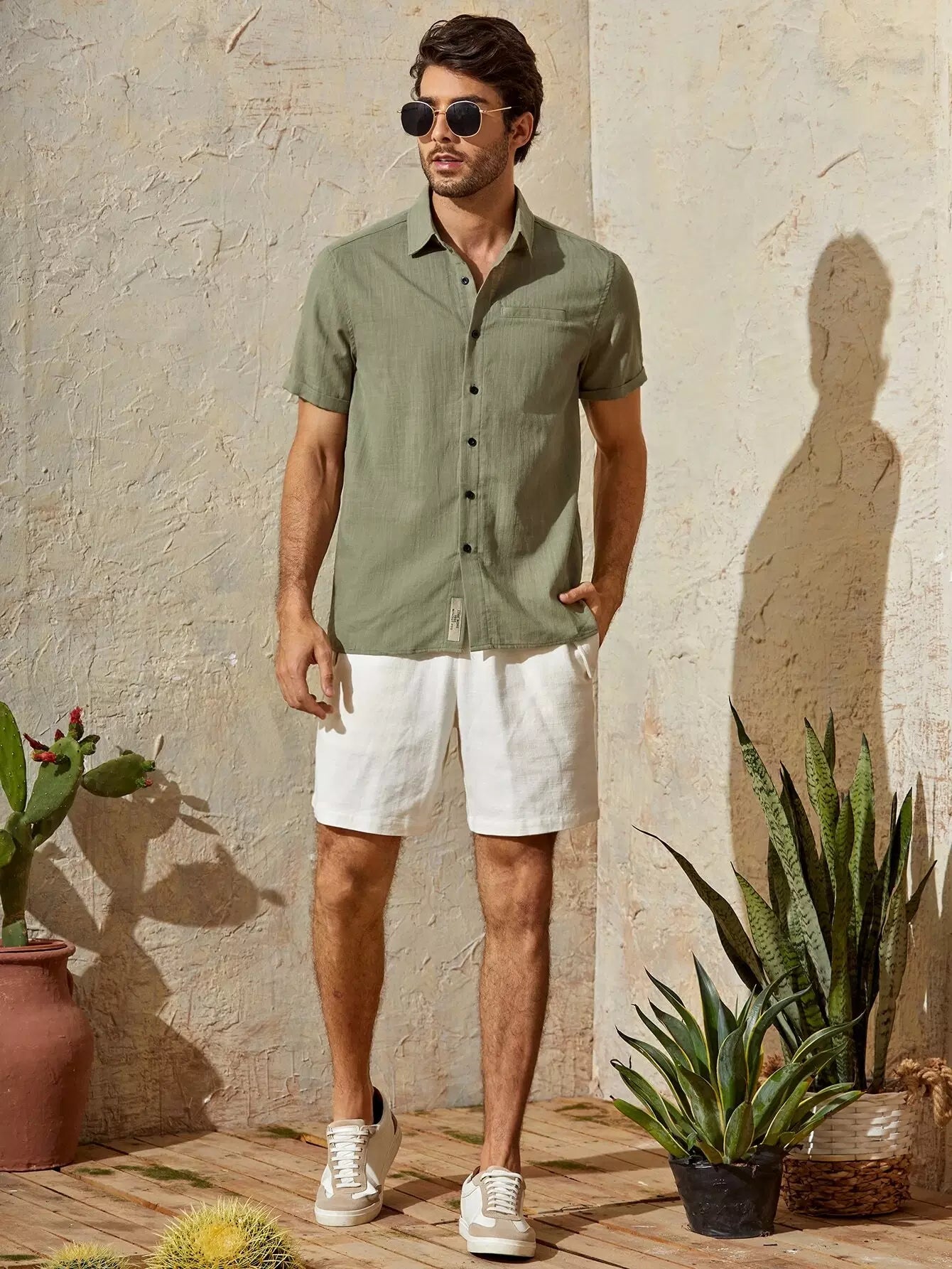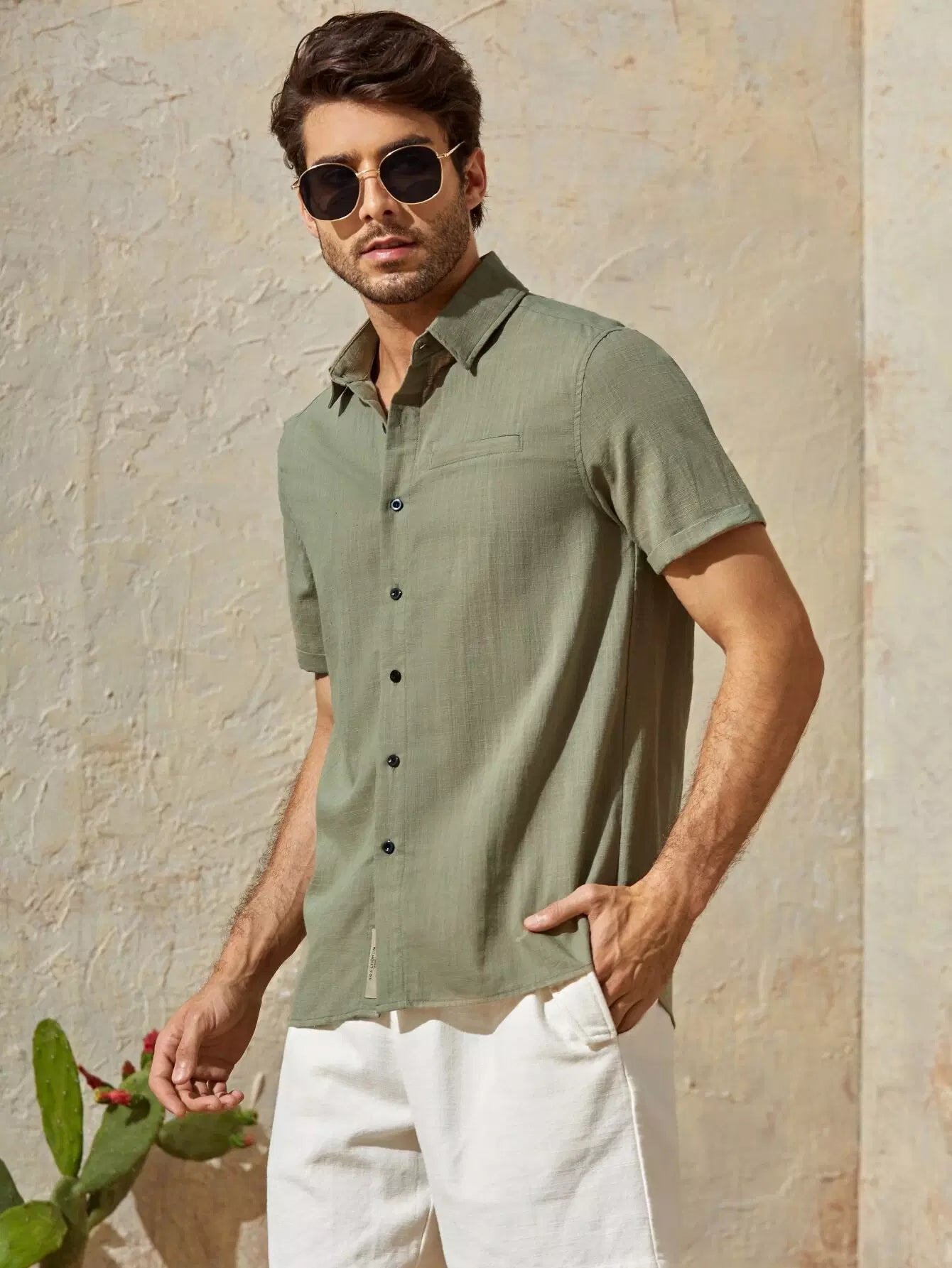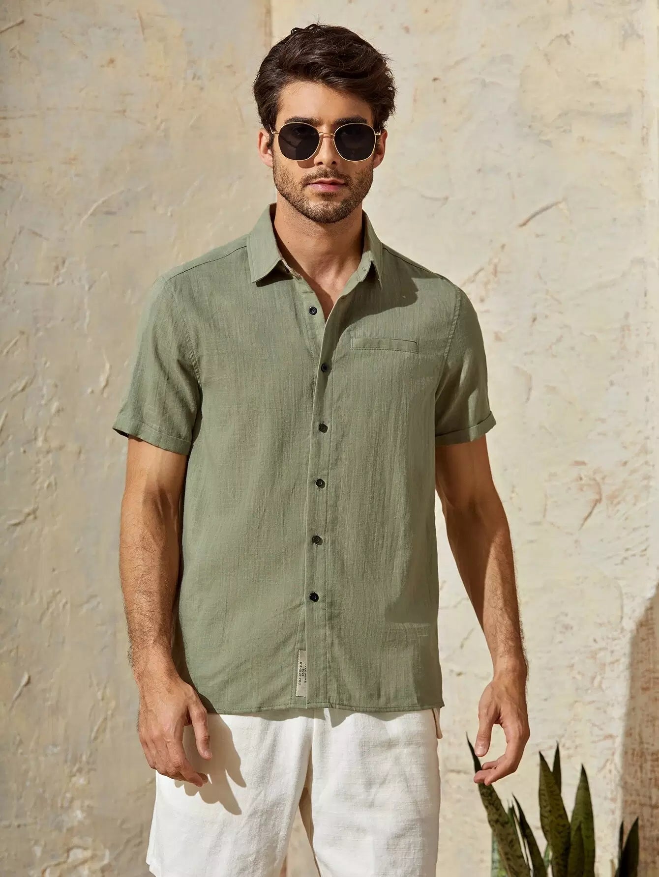 Men Cuffed Sleeve Button Placket Shirt