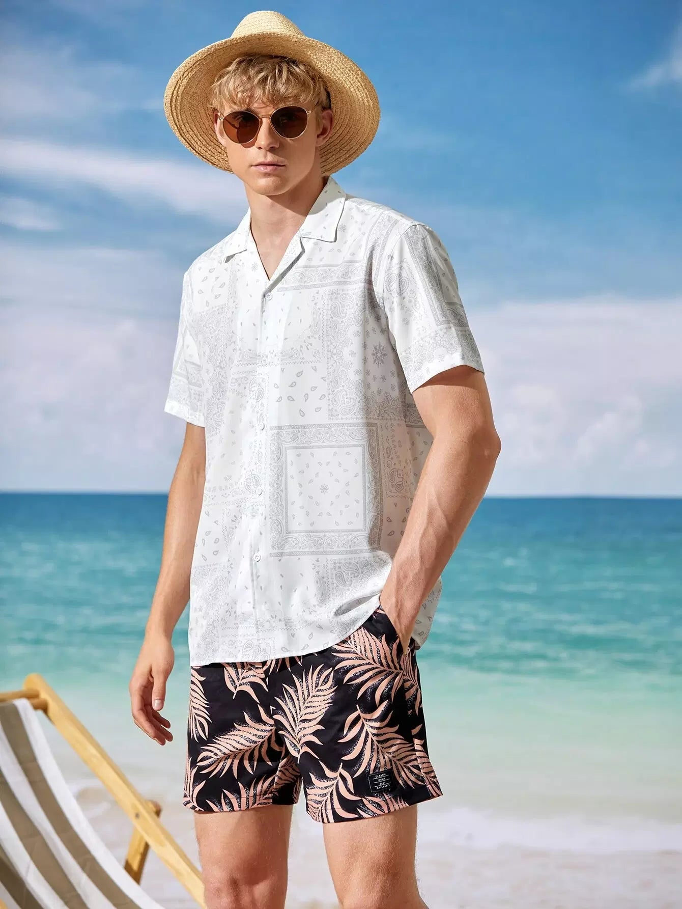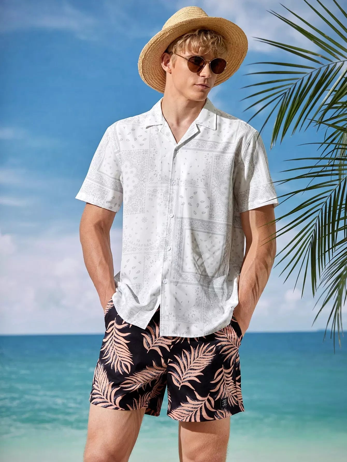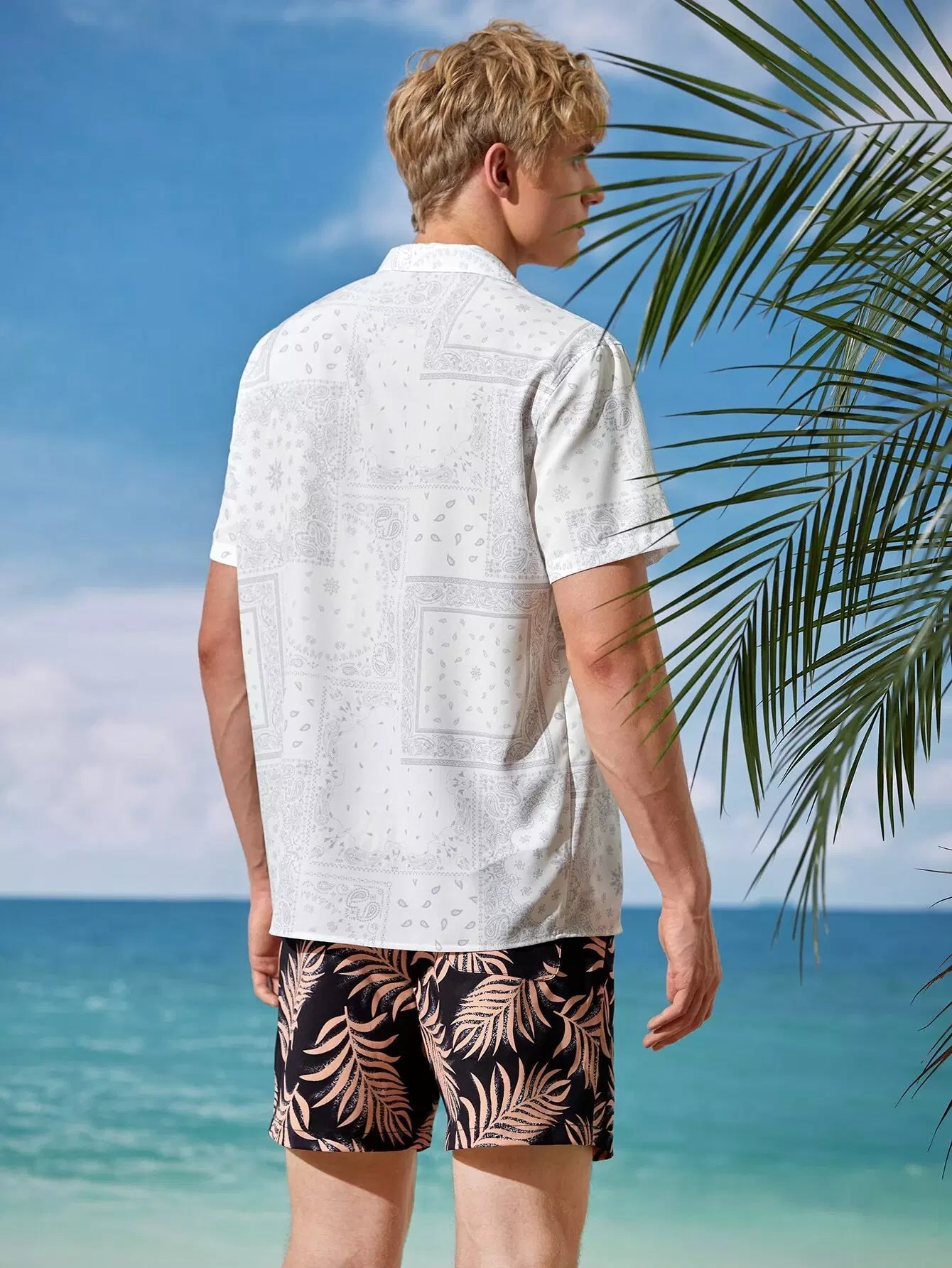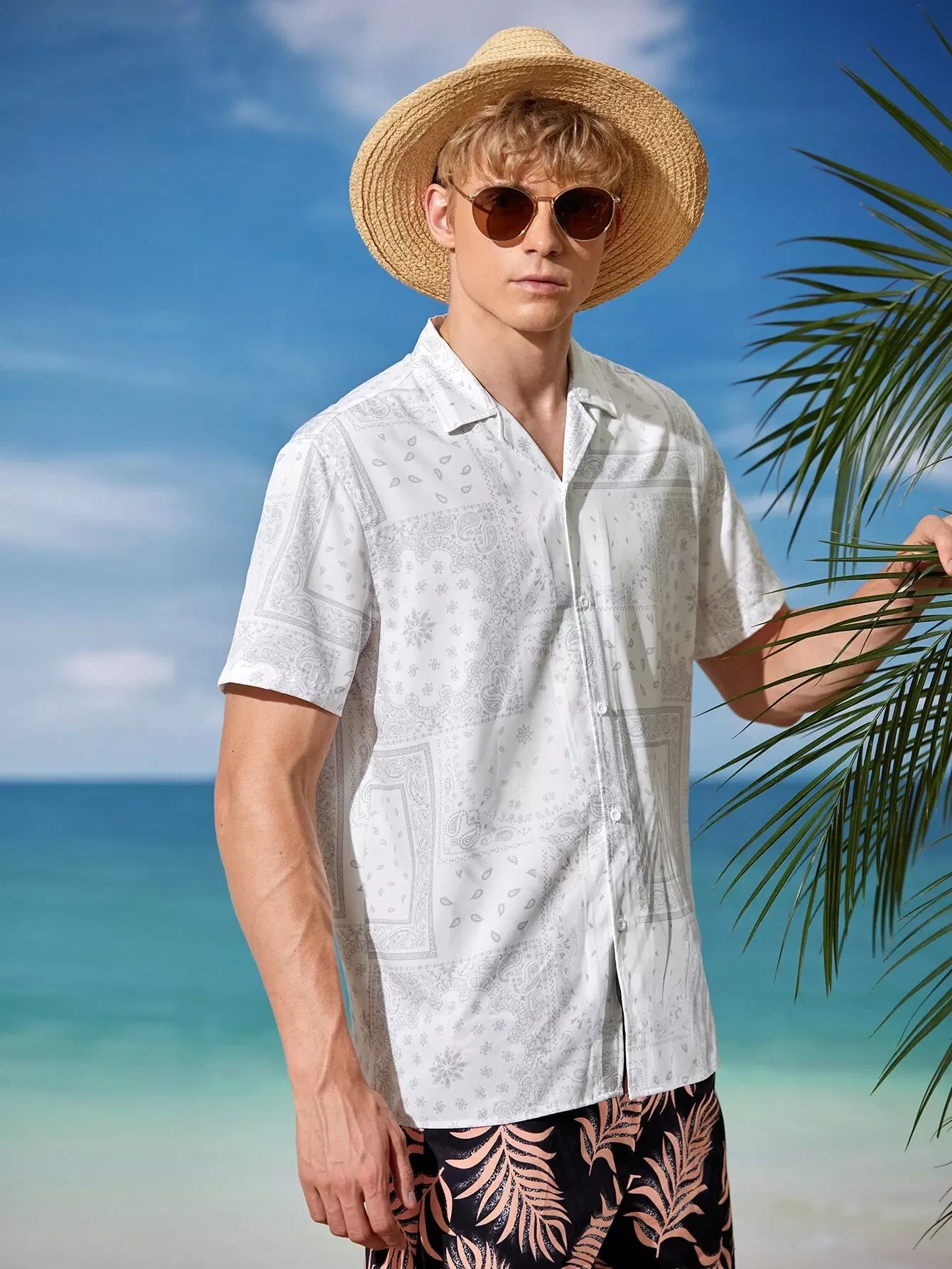 Men Lapel Collar Paisley Scarf Print Shirt