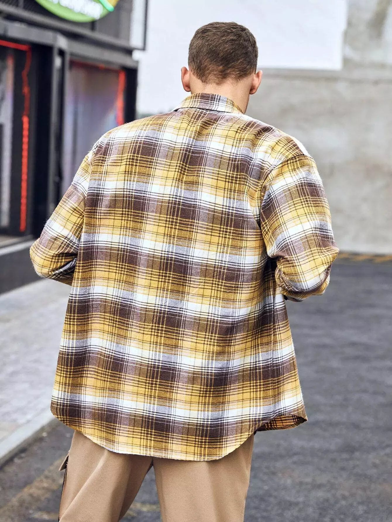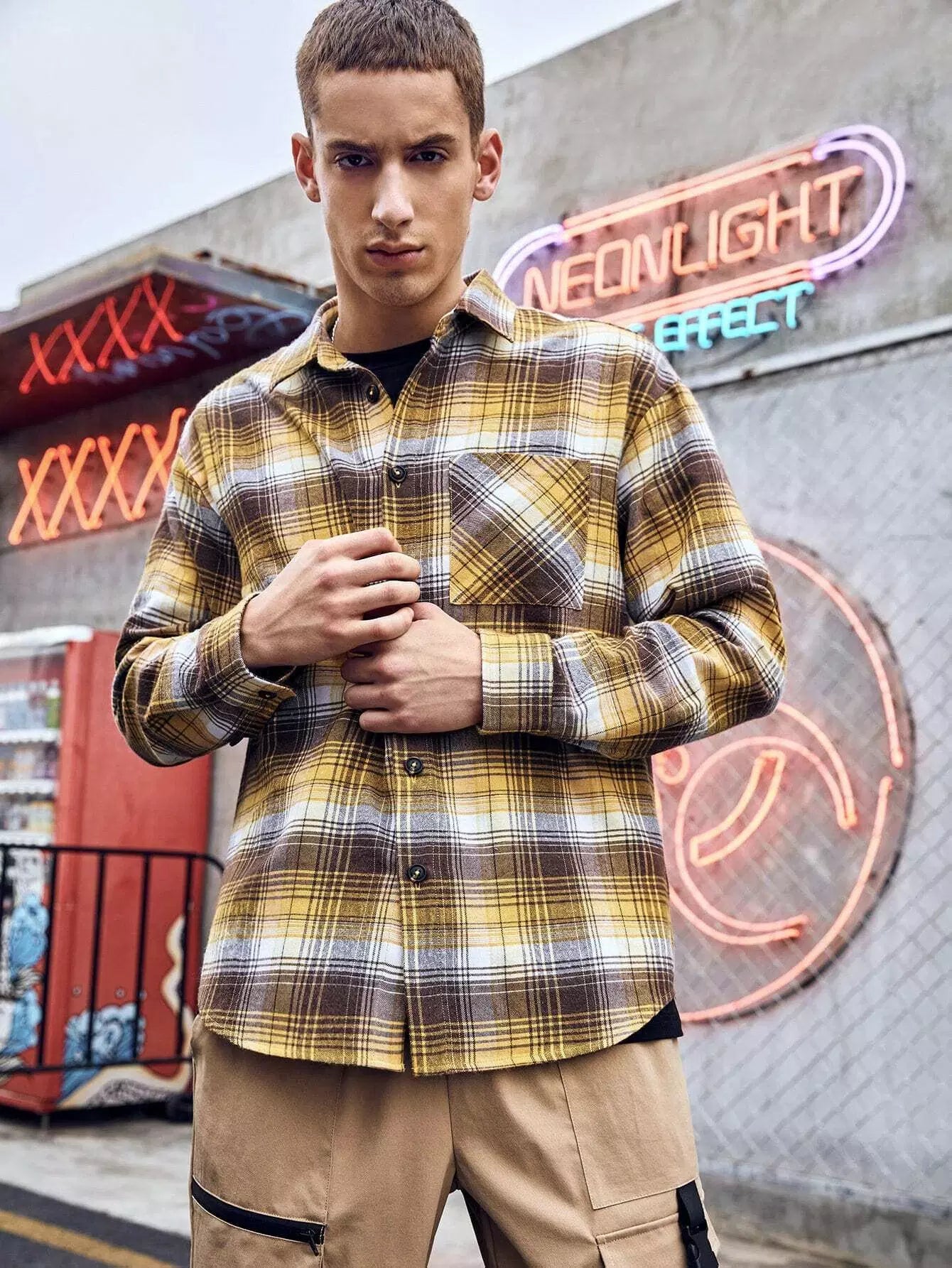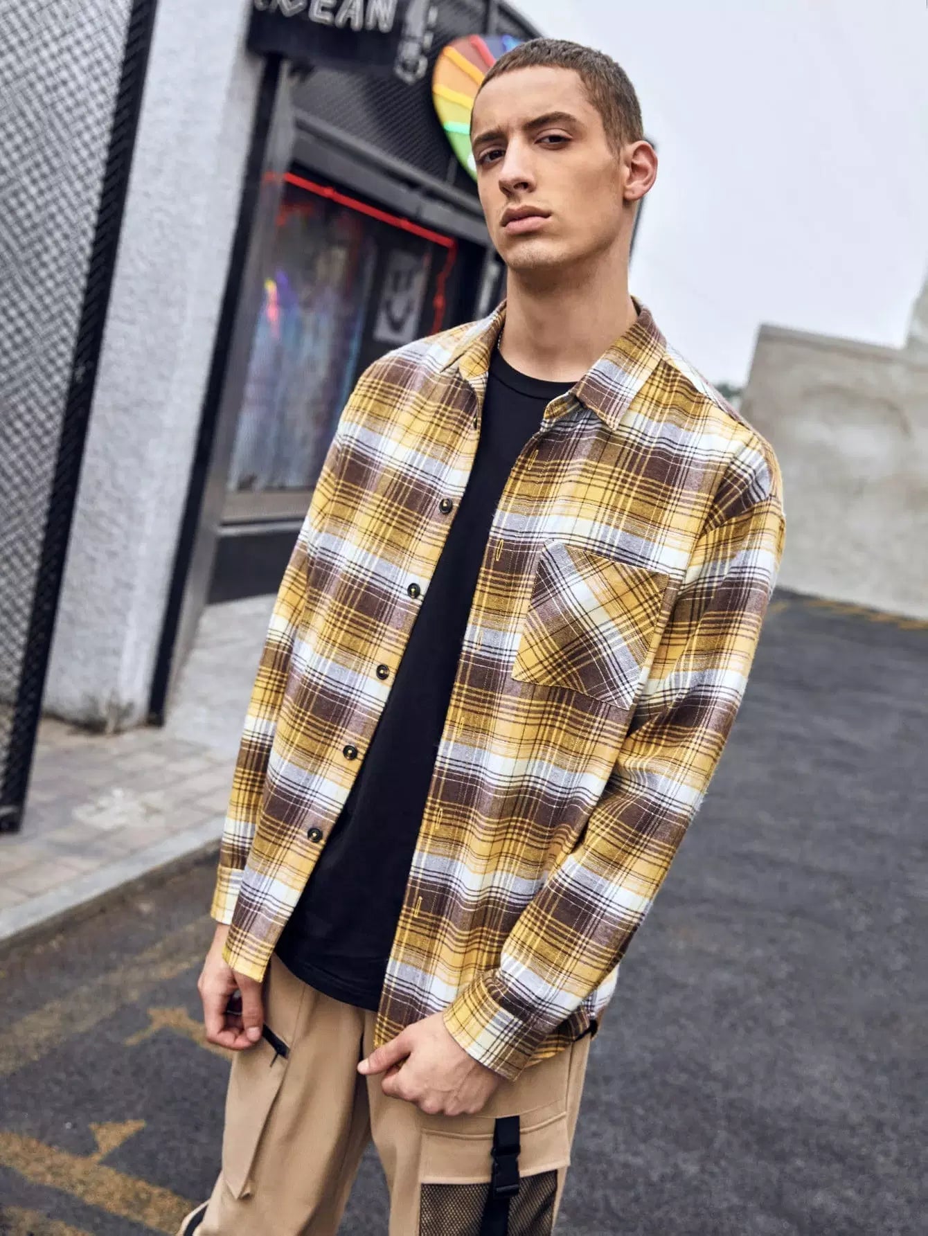 Men - Men Patch Pocket Curved Hem Tartan Shirt