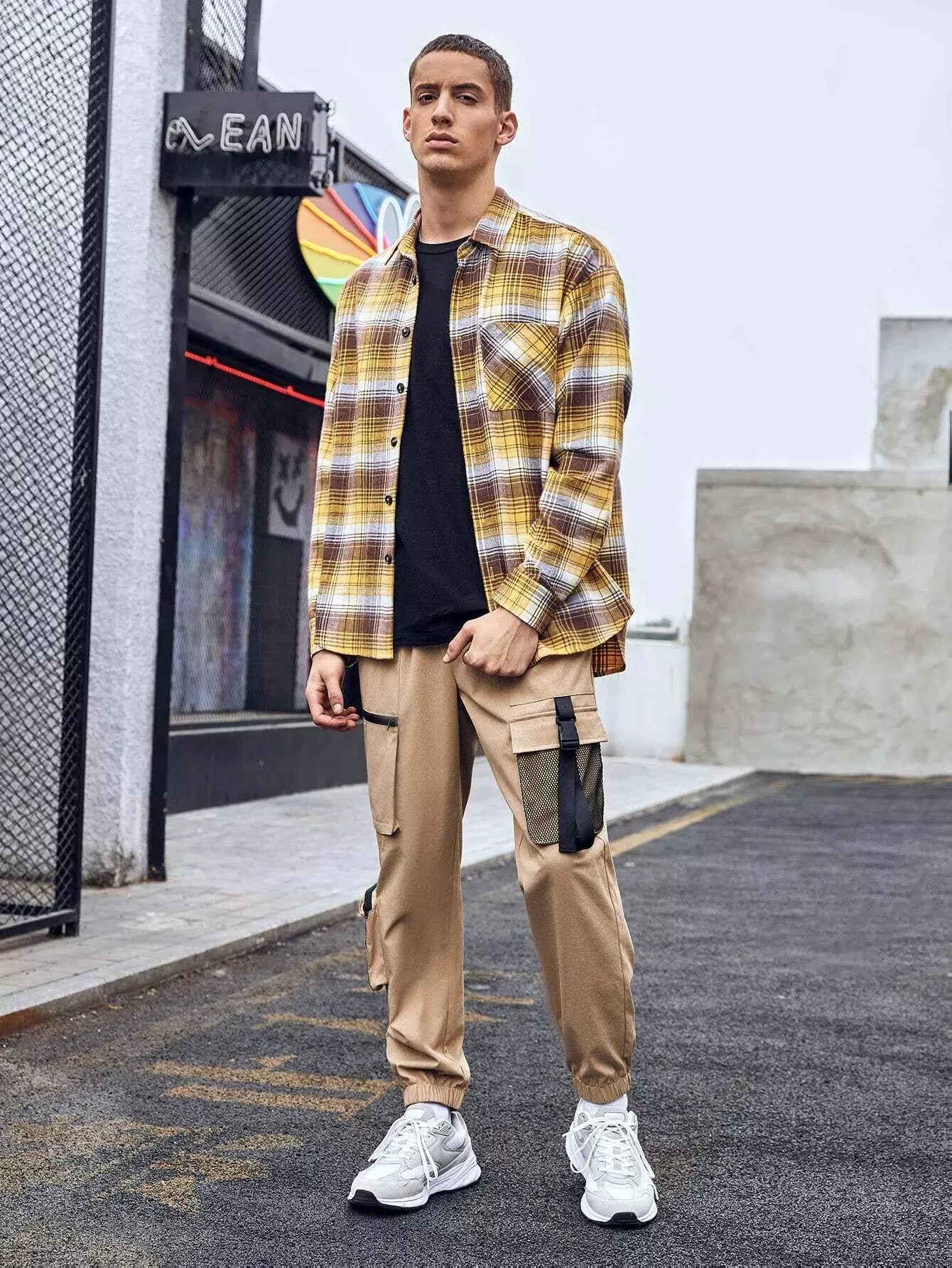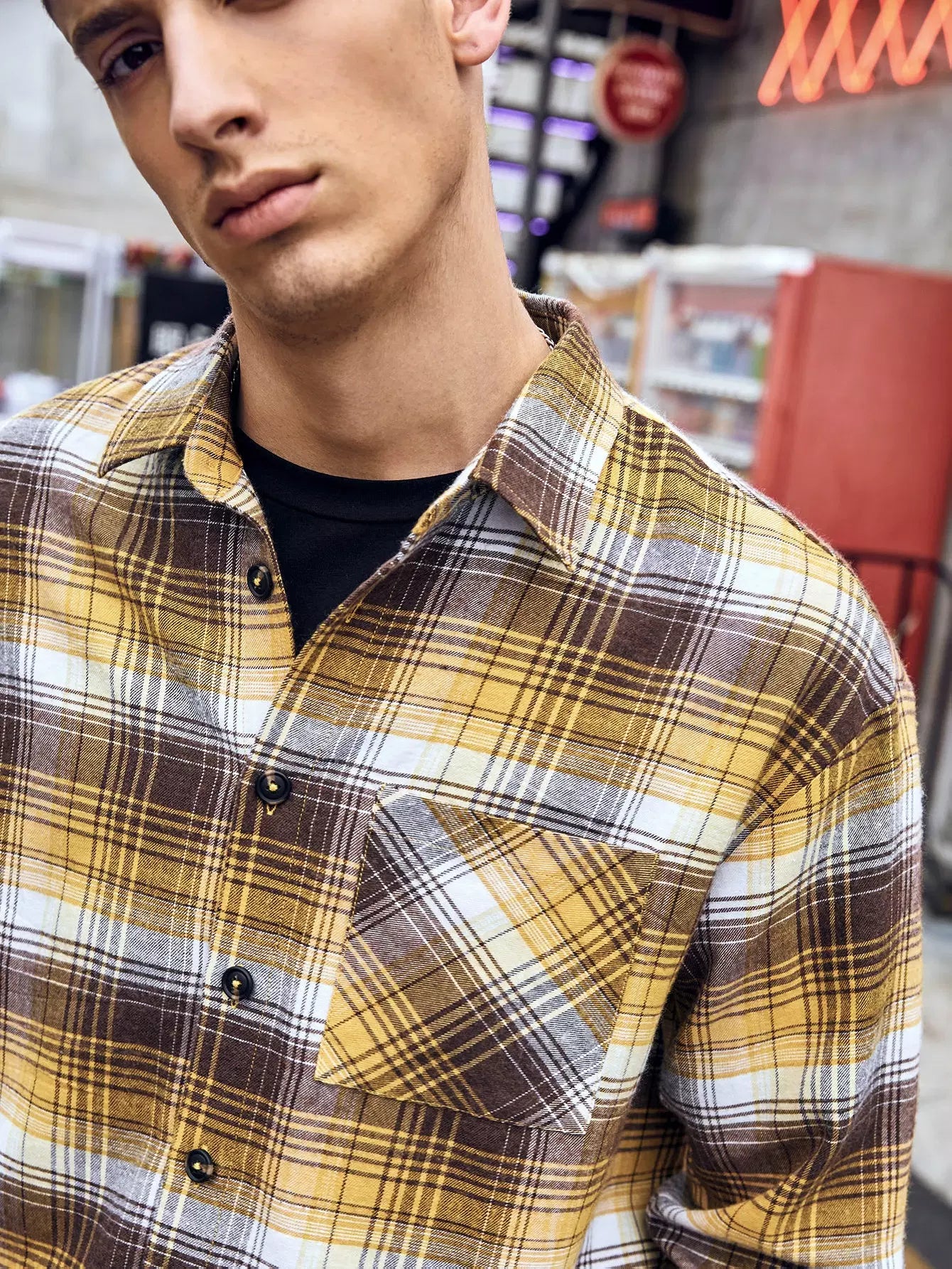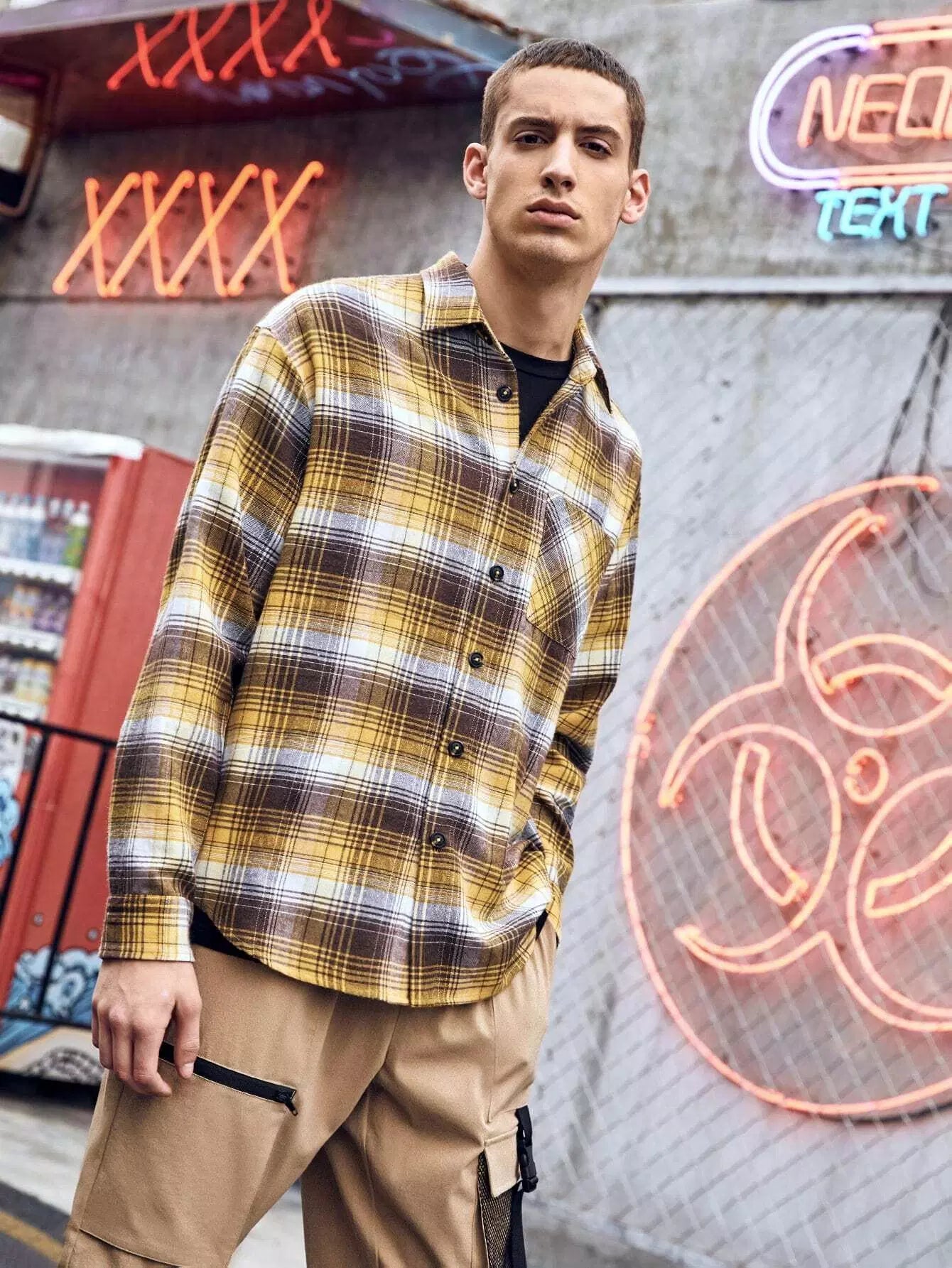 Men - Men Patch Pocket Curved Hem Tartan Shirt