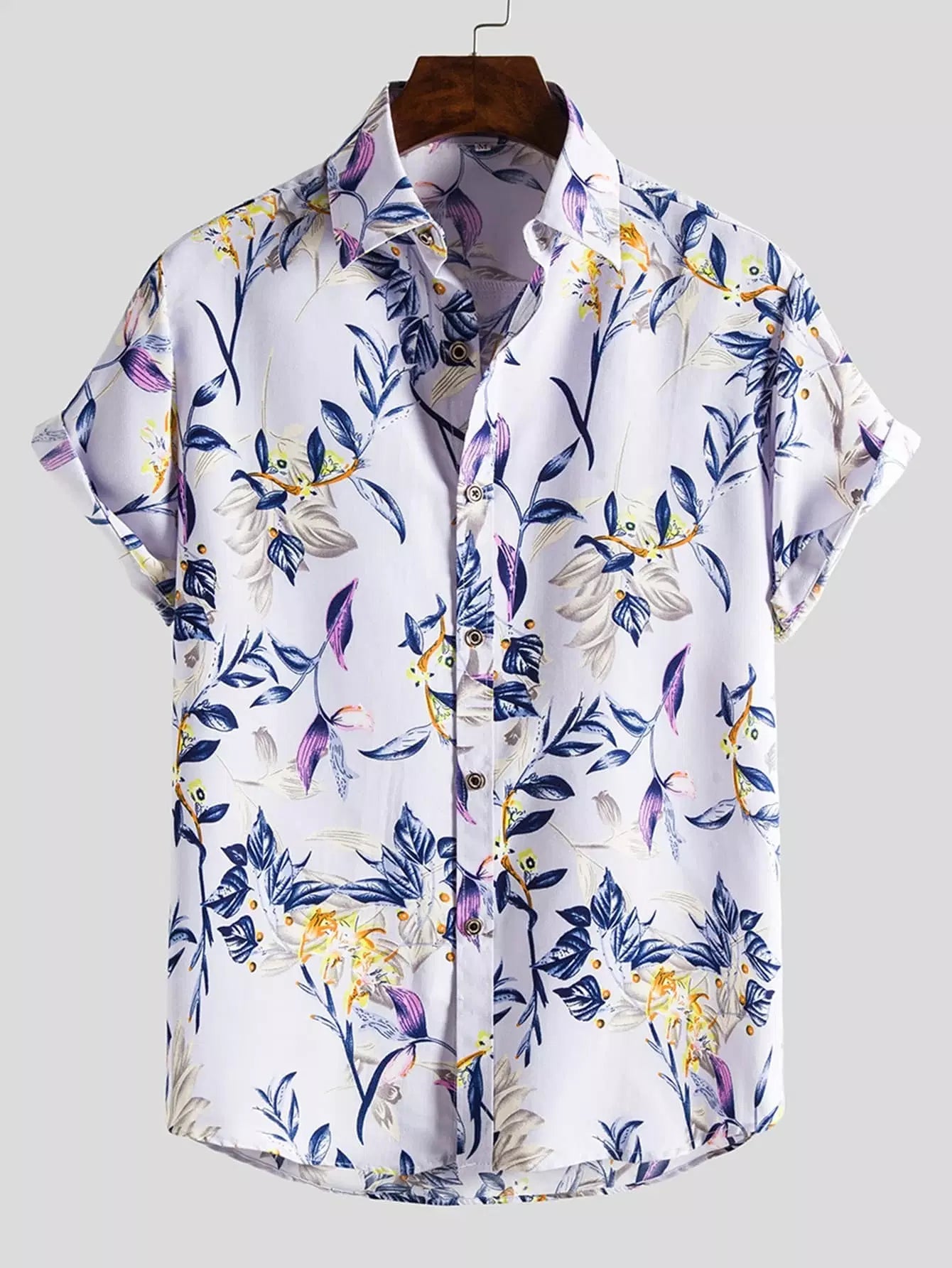 Men - Men Plants Print Curved Hem Shirt