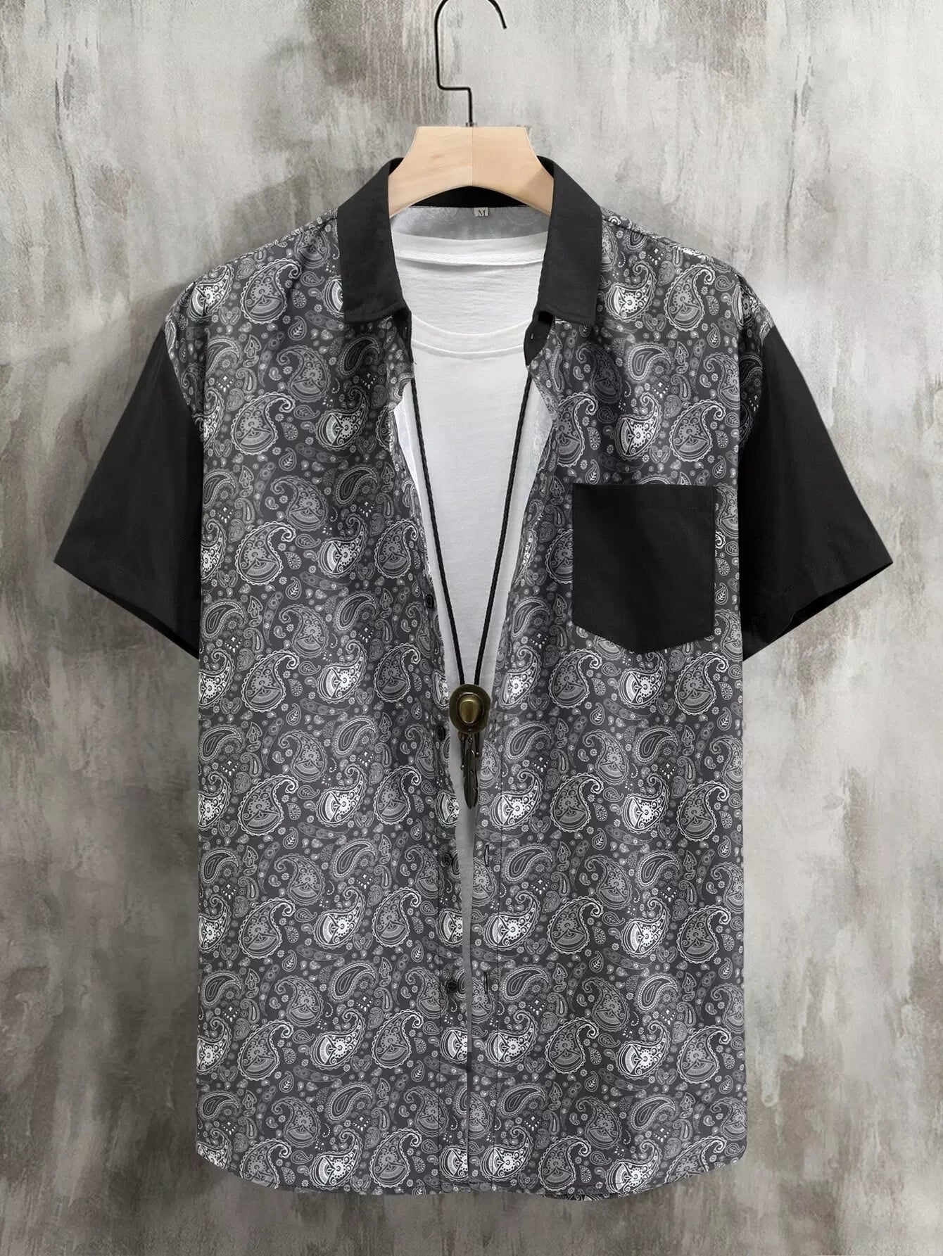 Men Random Ditsy Floral & Paisley Print Patched Pocket Shirt Without Tee