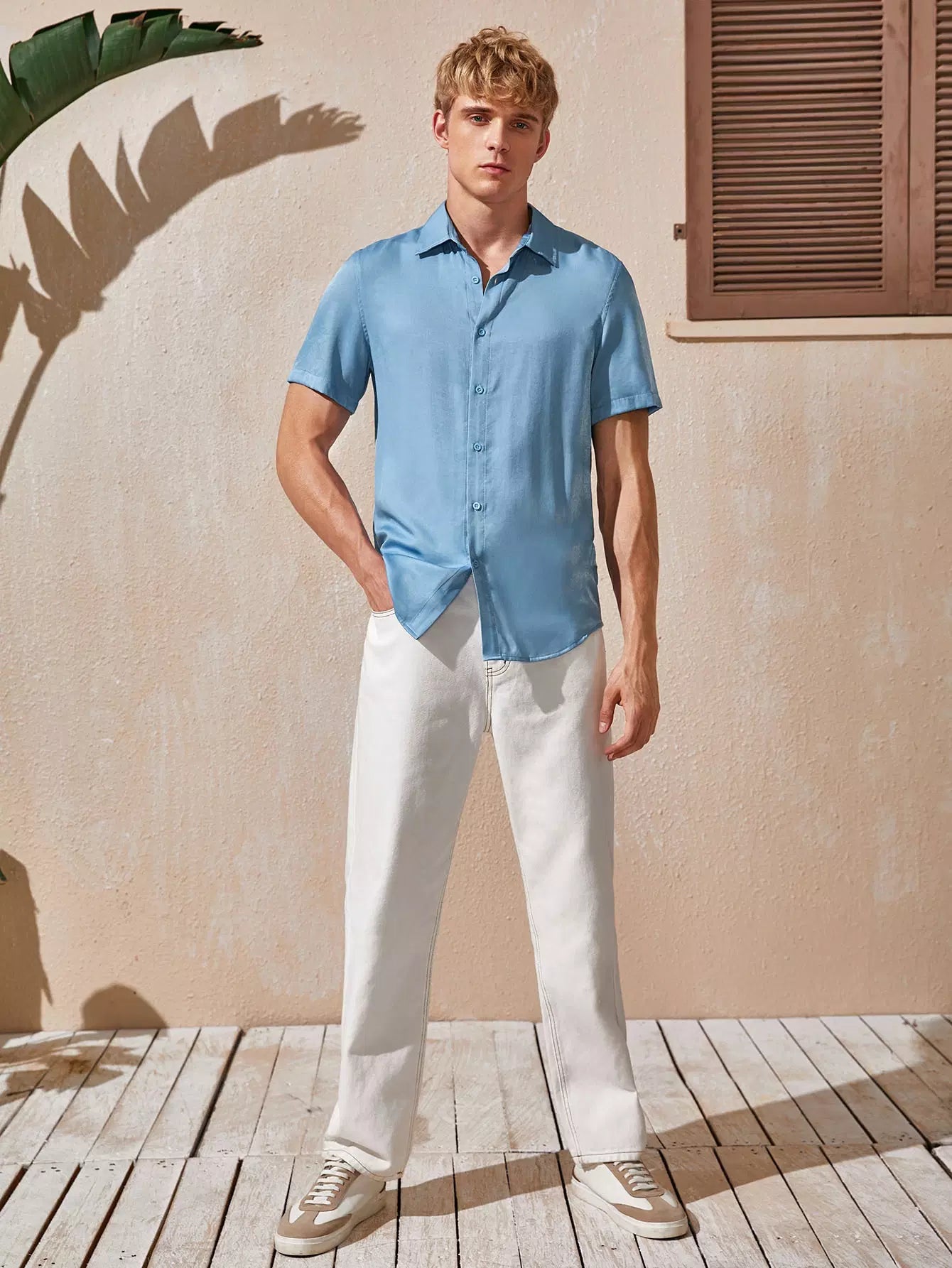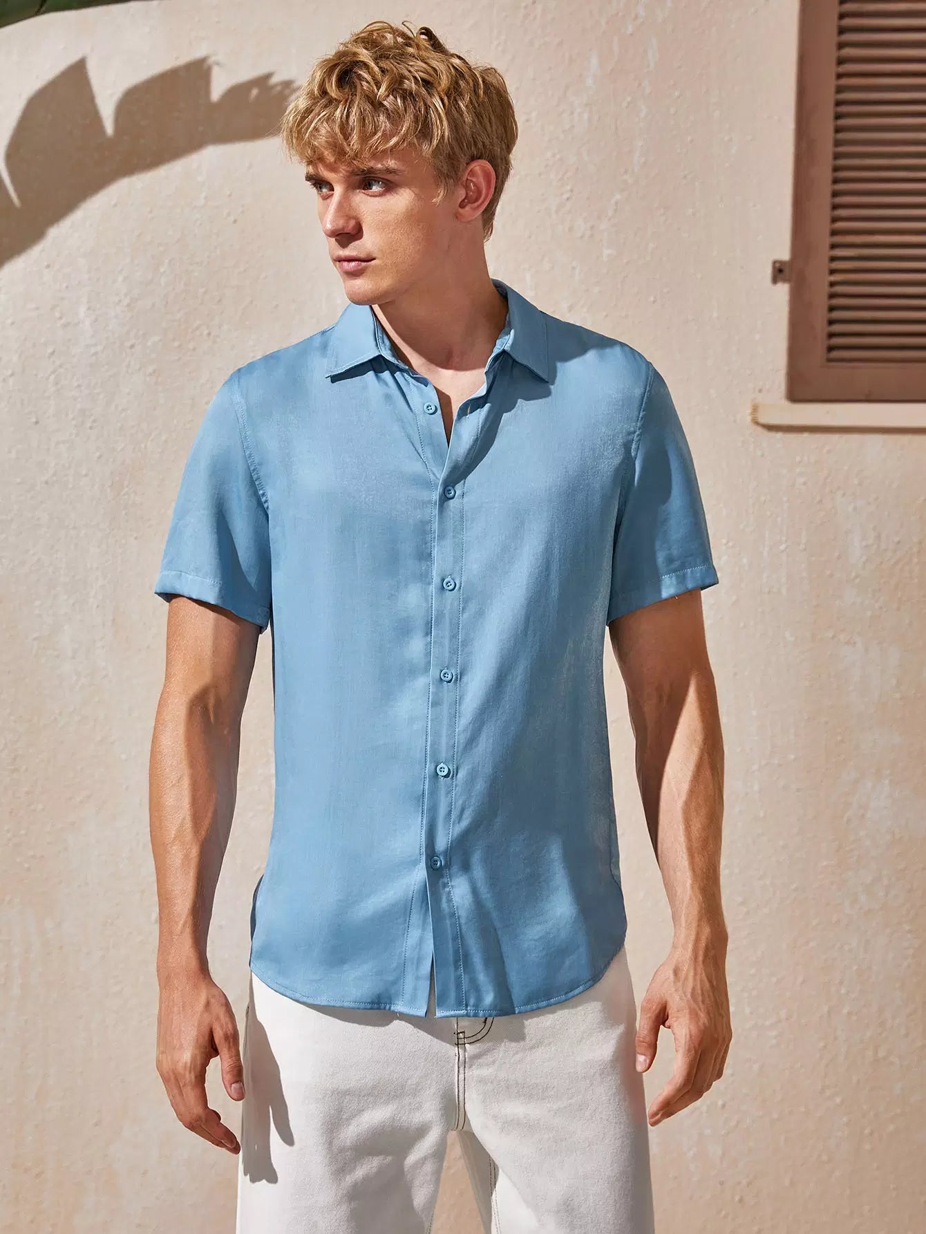 Men Single Breasted Solid Shirt