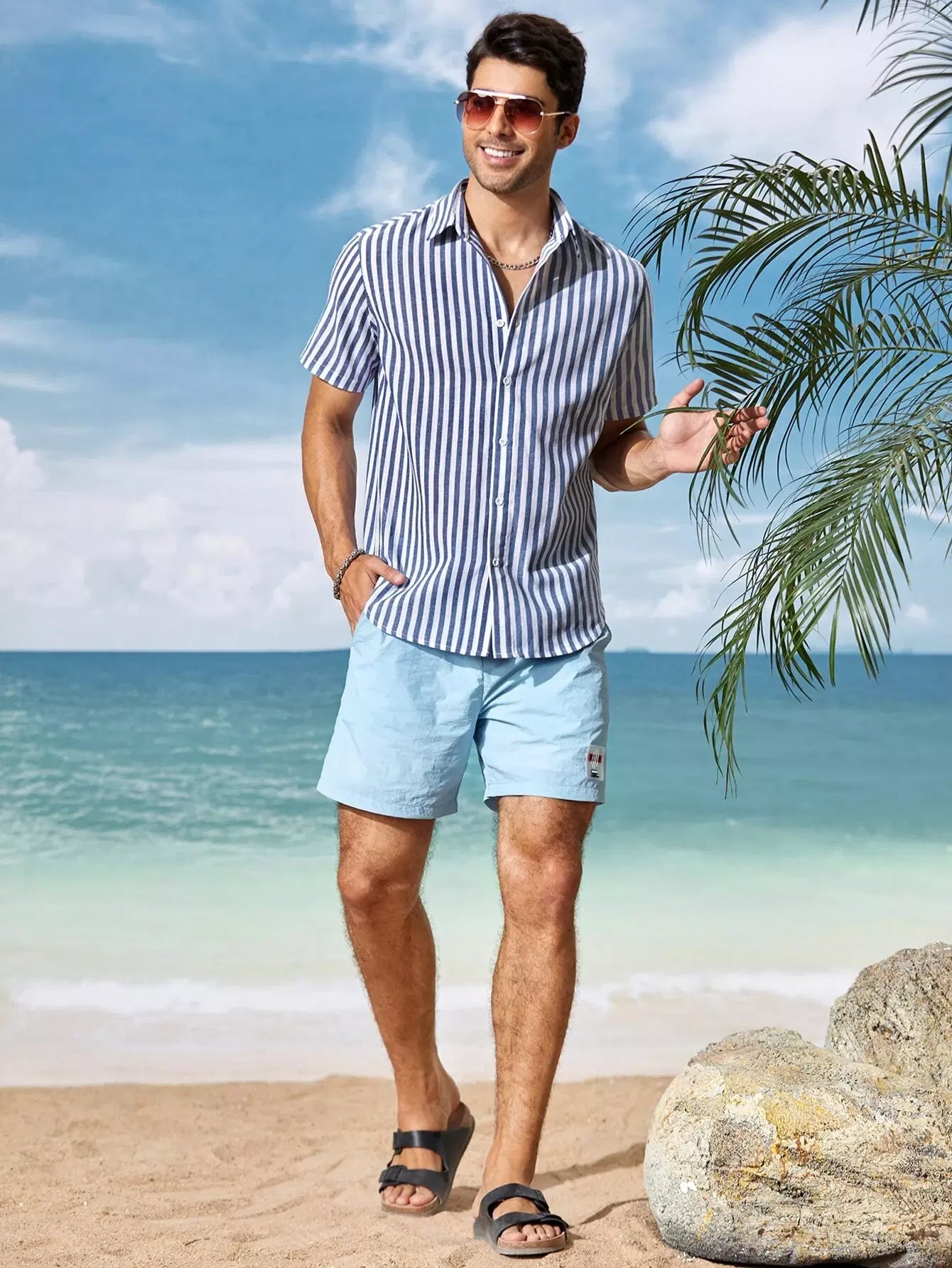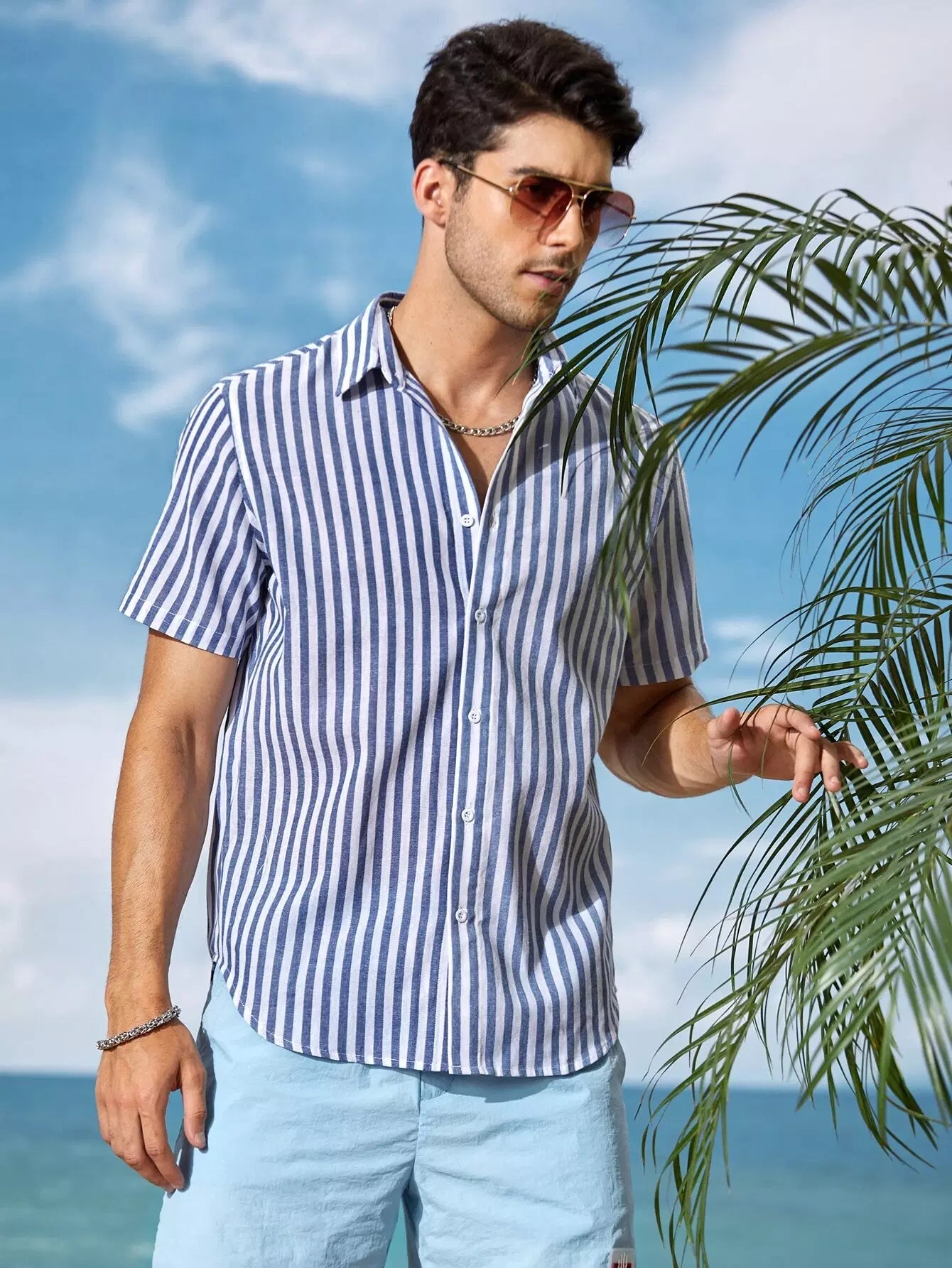 Men Single Breasted Striped Shirt