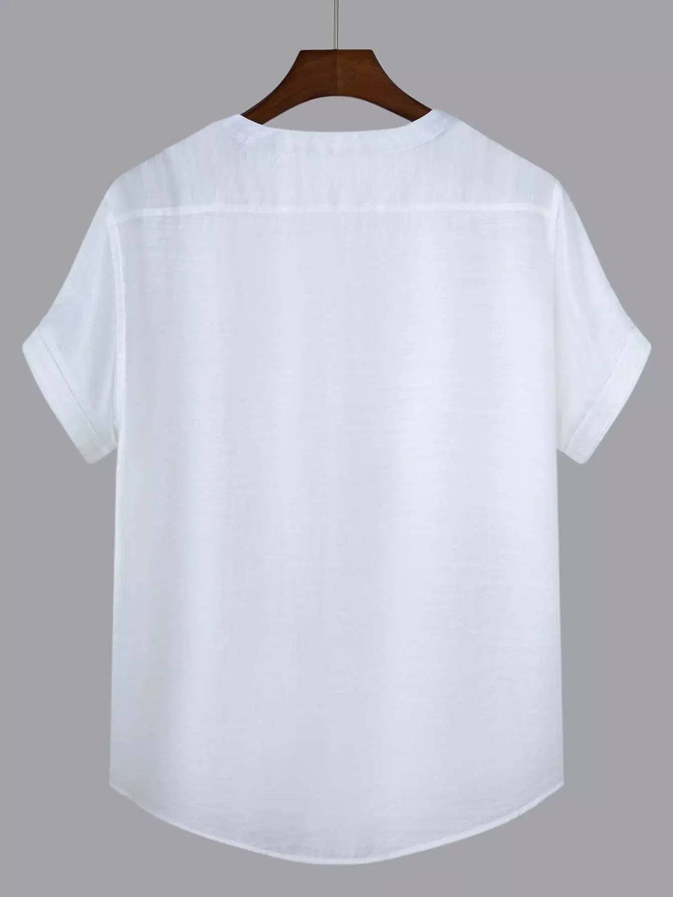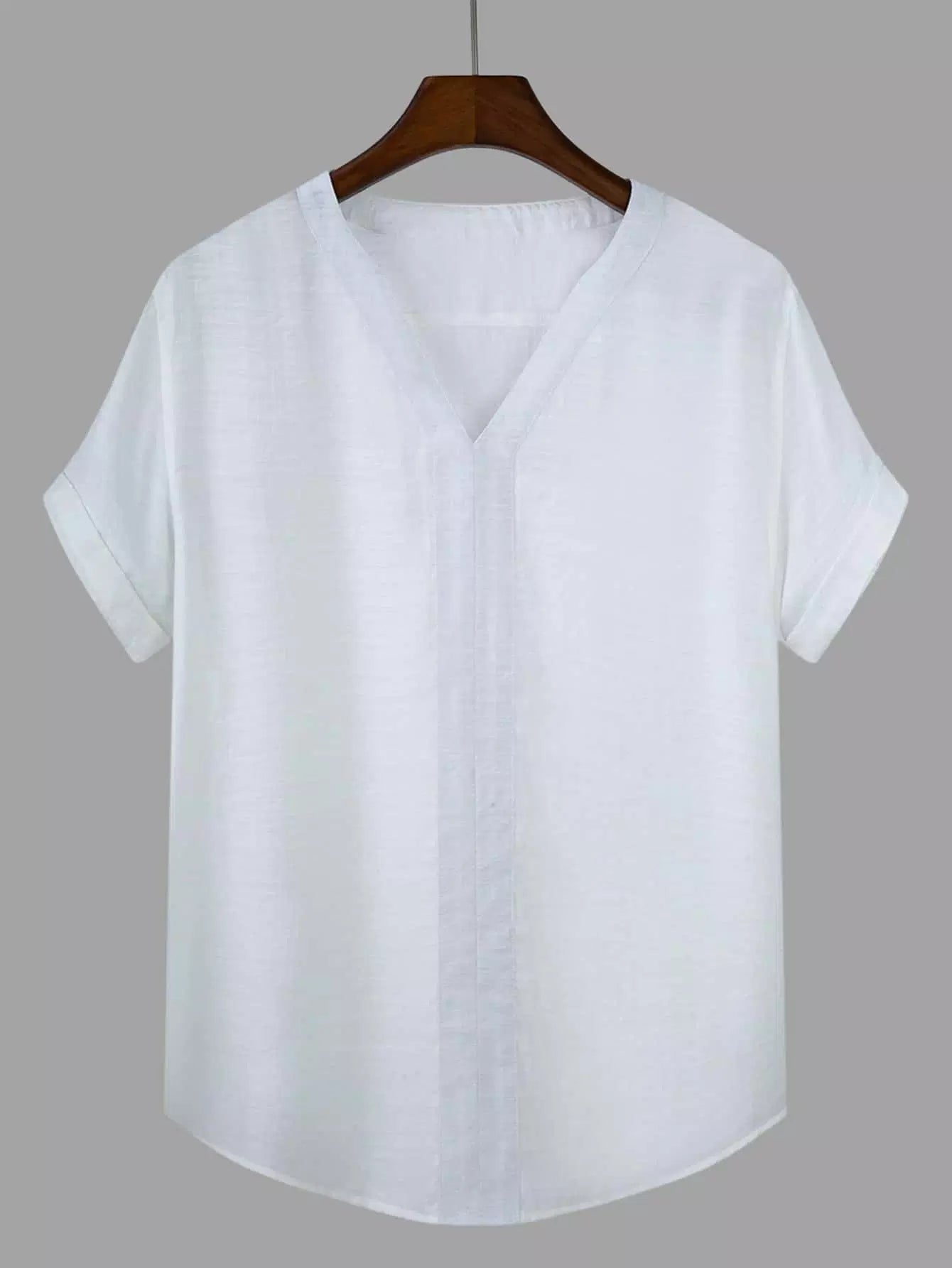 Men Solid V-neck Short Sleeve Top