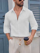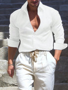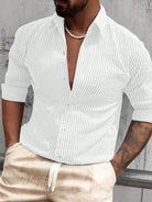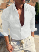 Men's Casual Striped Textured Fabric Shirt, Comfortable Soft Skin-Friendly, Suitable For Home, Commuting