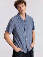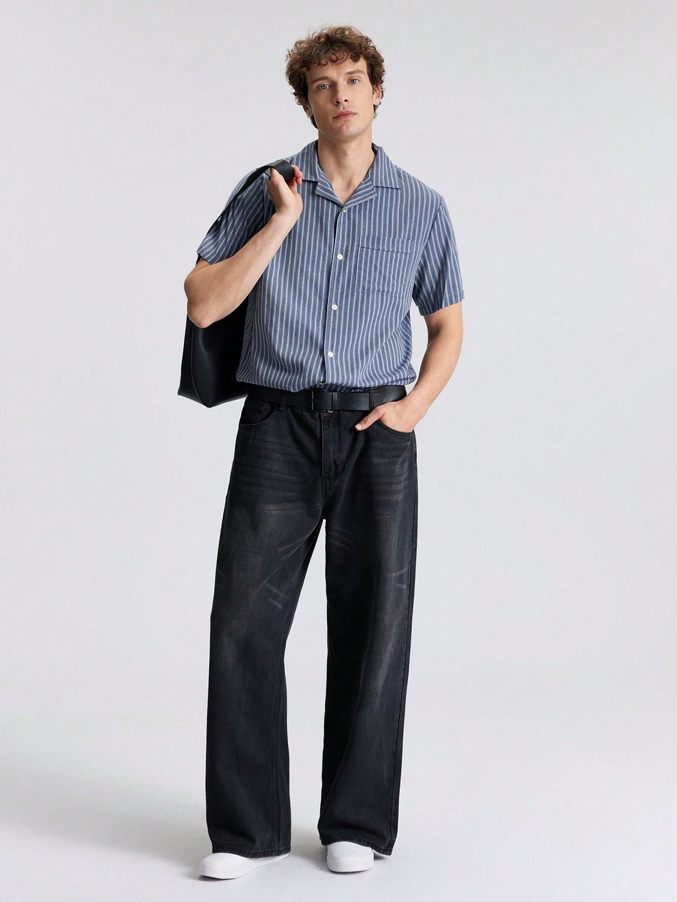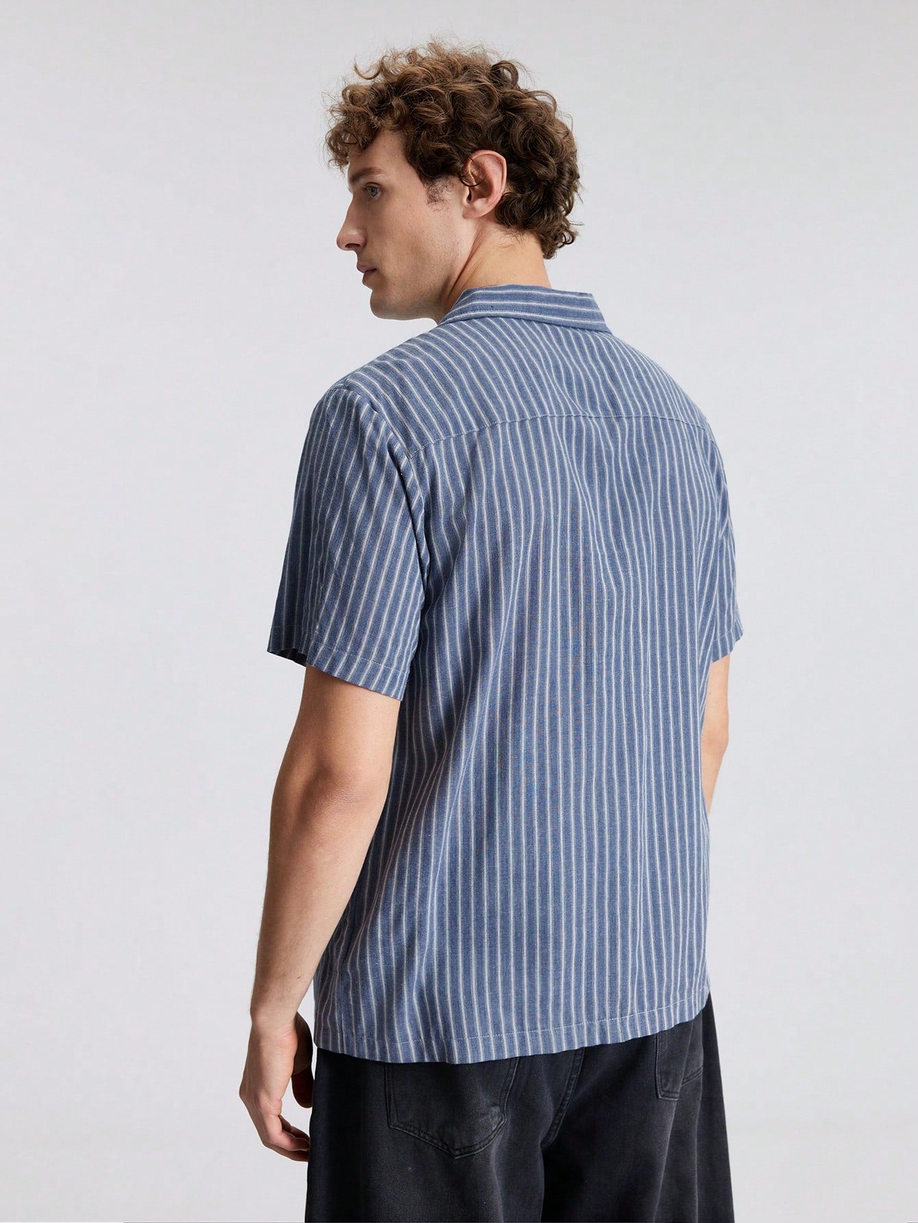 Ontre Men's Front Button Short Sleeve Pocket Striped Linen Simple Casual Shirt Outing Clothes, New Styles