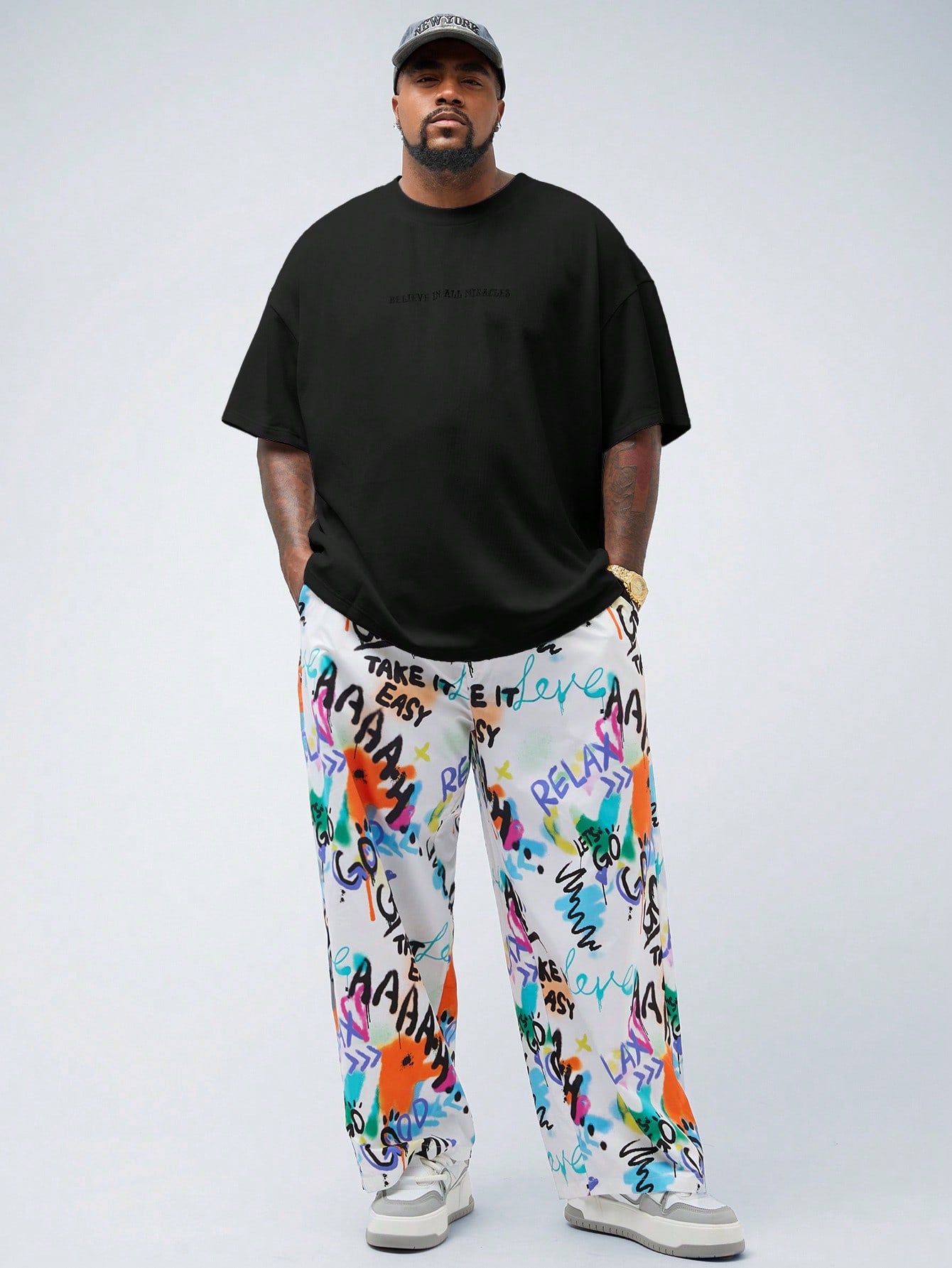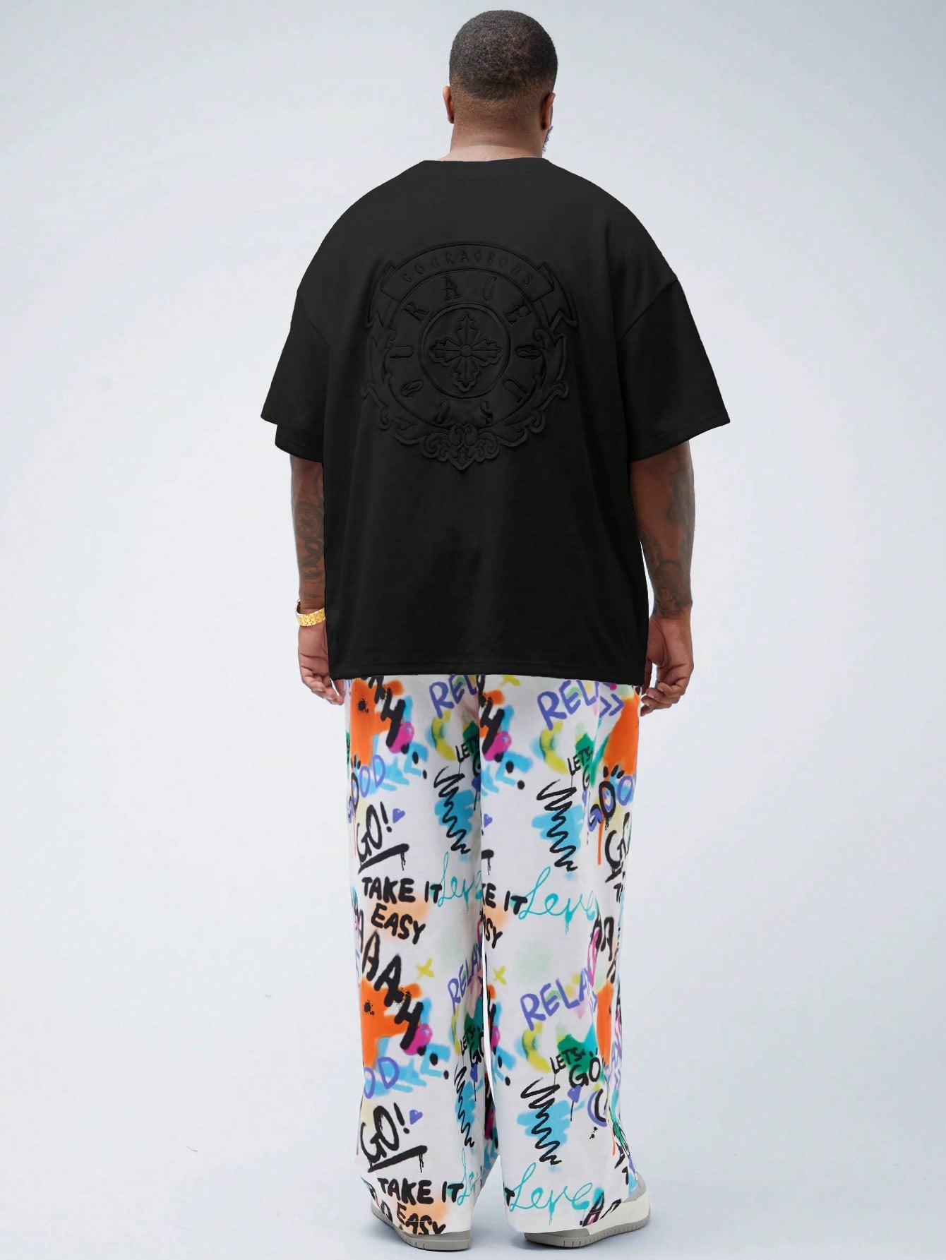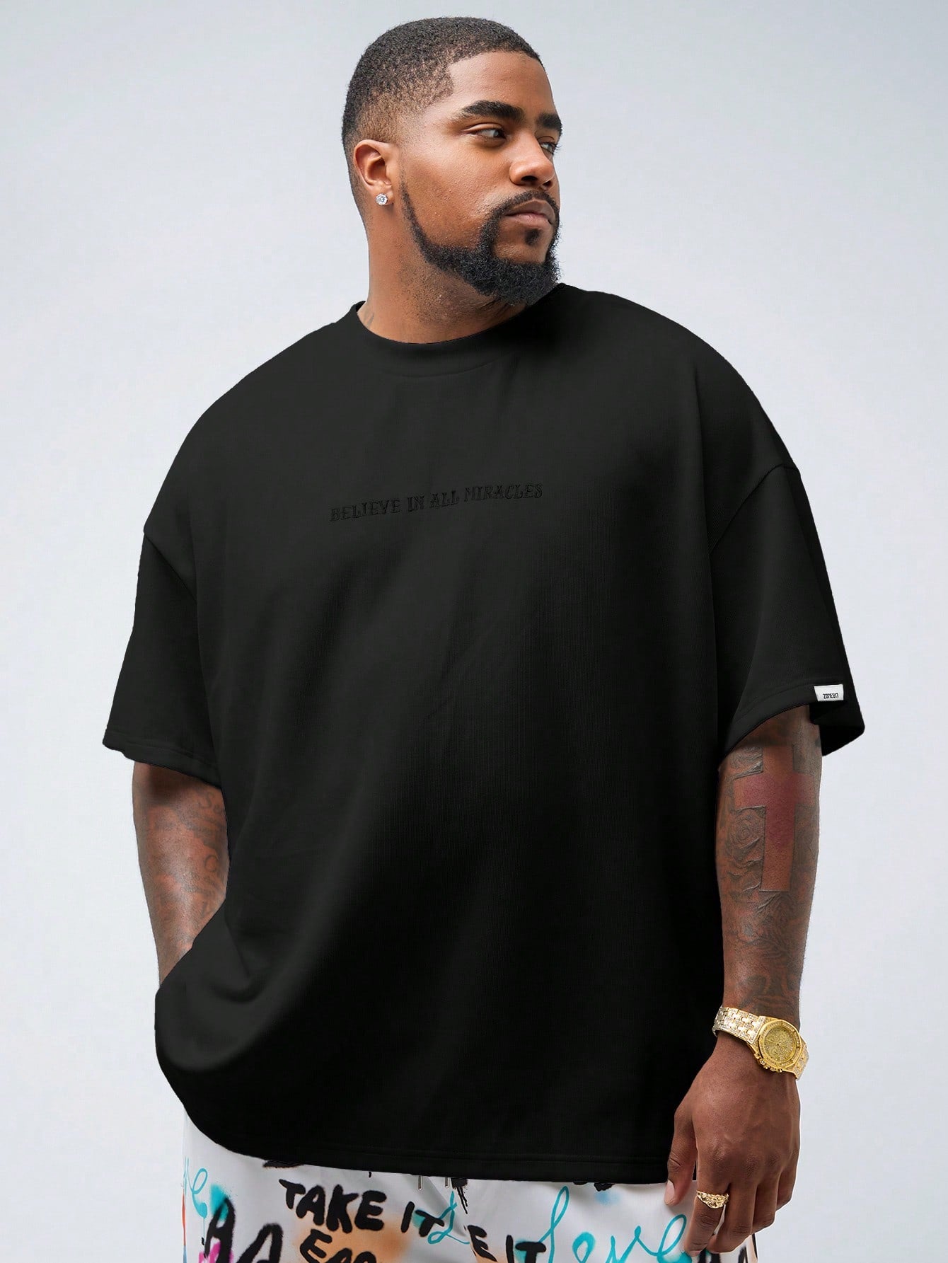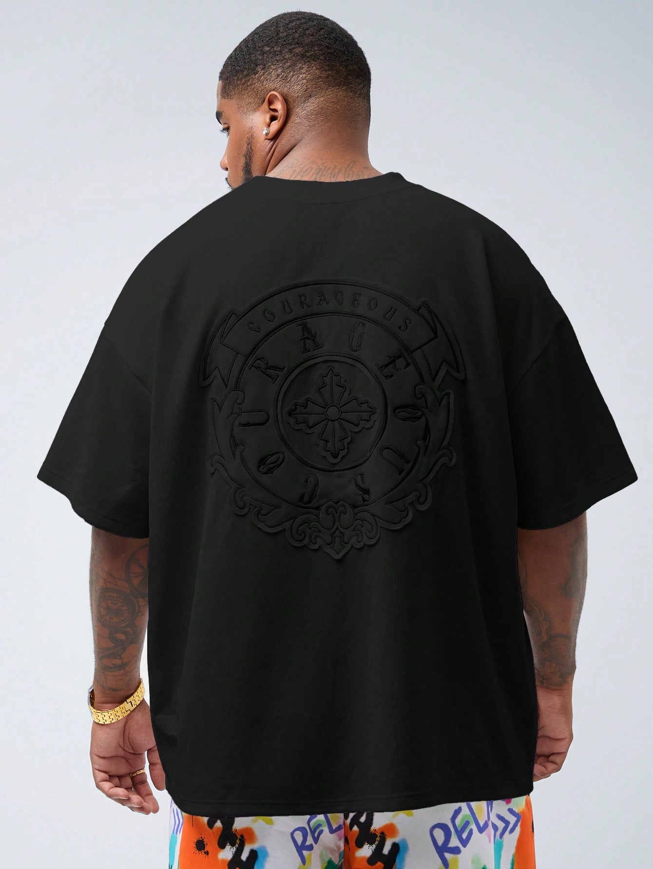 EASEVO Plus Size Men Casual Embroidery Patched Loose Dropped Shoulder Crew Neck Short Sleeve T-Shirt