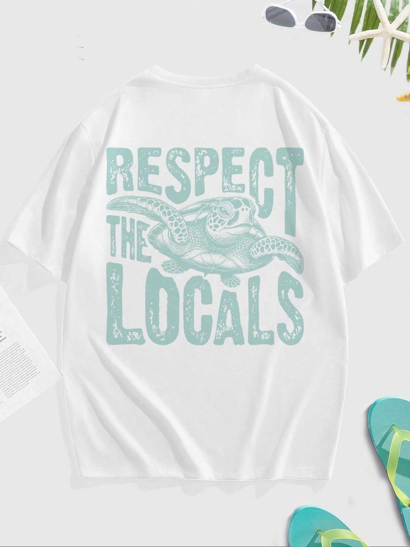 Manfinity Chillmode Fashionable Casual Vacation Style Marine Life Sea Turtle & Letter Graphic Print Fitted