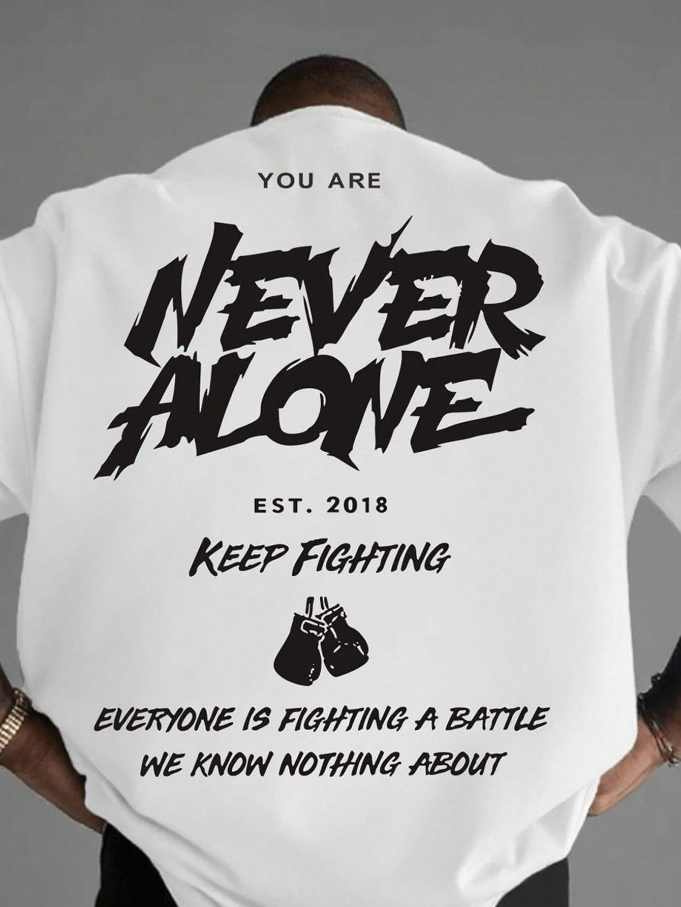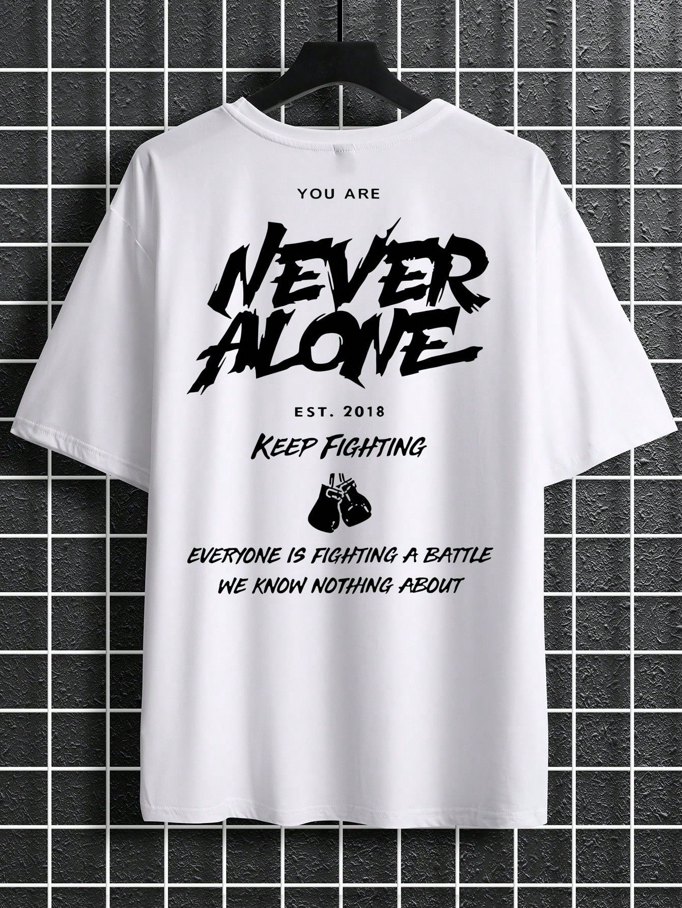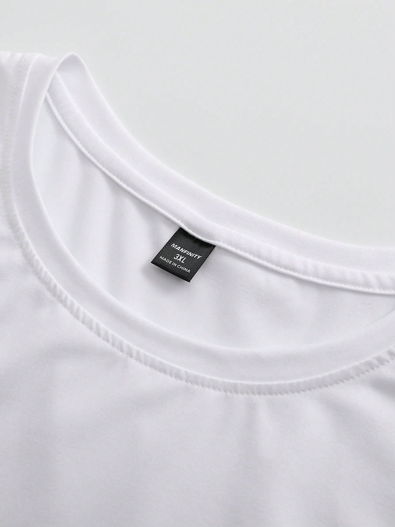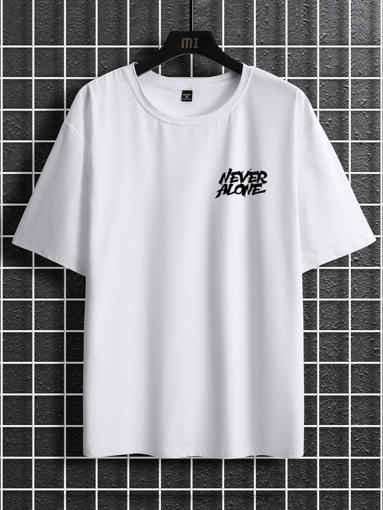 Manfinity EMRG Plus Size Men's Casual Street Slogan Print Loose Drop Shoulder Short Sleeve T-Shirt, Summer