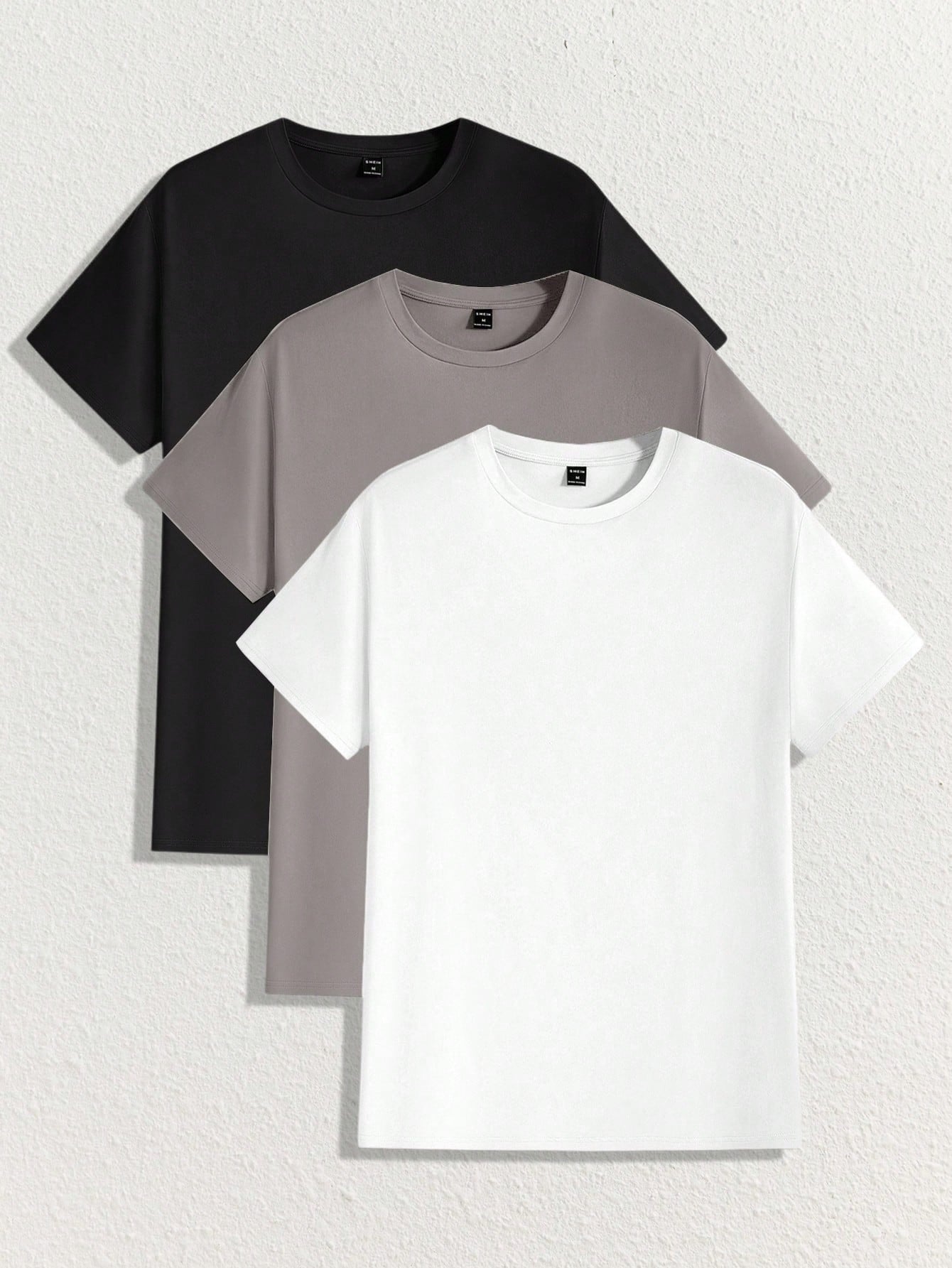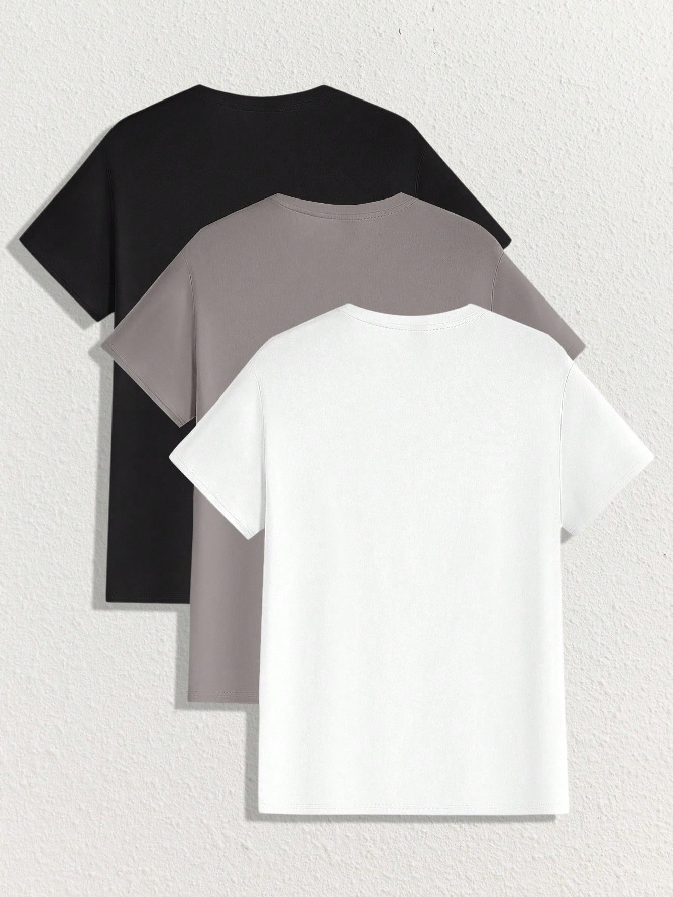 Manfinity VCAY 3pcs Pack Men's Knitted Casual Round Neck Short Sleeve T-Shirt