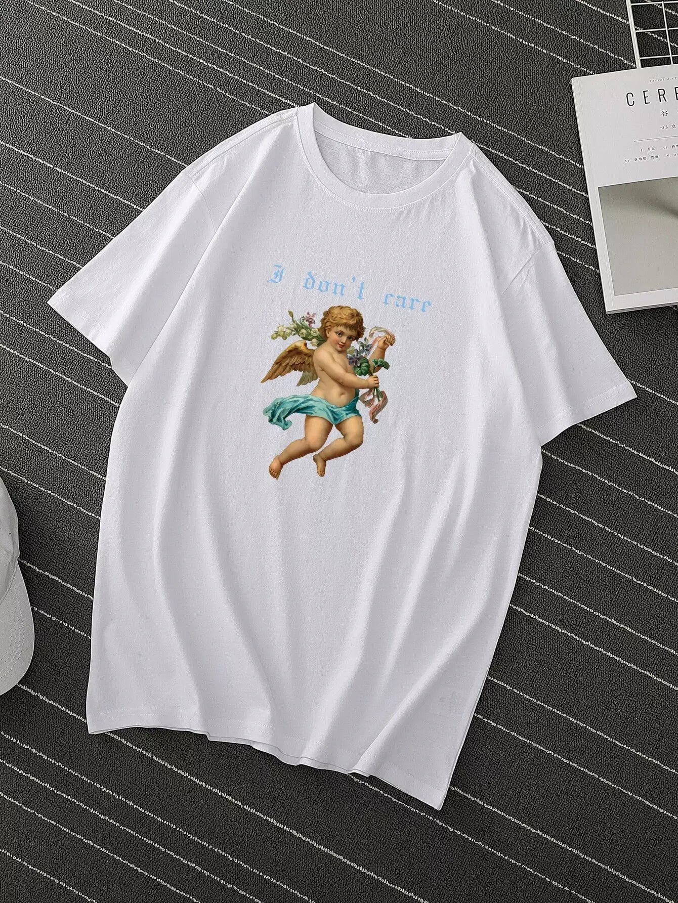 Men Angel And Slogan Graphic Tee