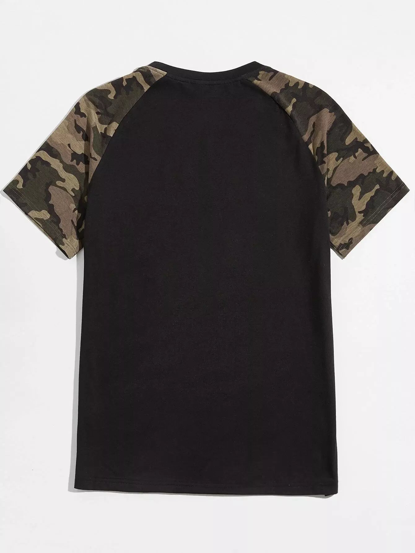 Men Camo Raglan Sleeve Letter Graphic Tee
