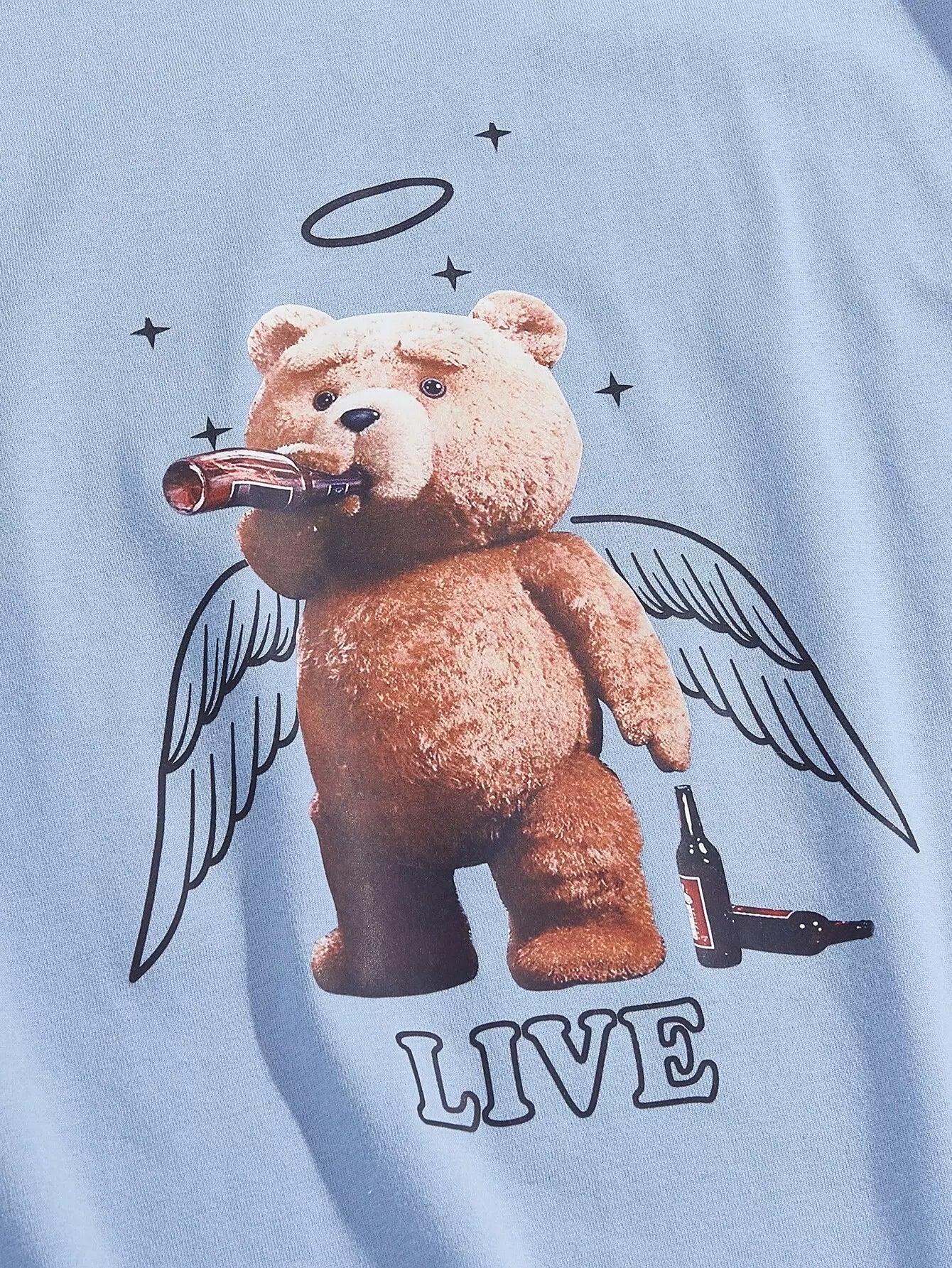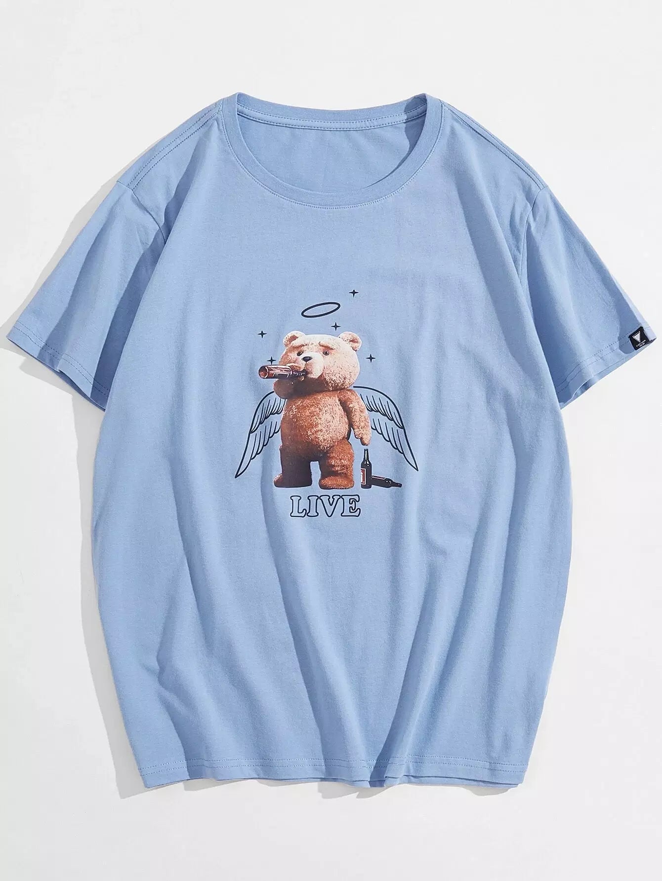 Men - Men Cartoon Bear Print Short Sleeve Tee