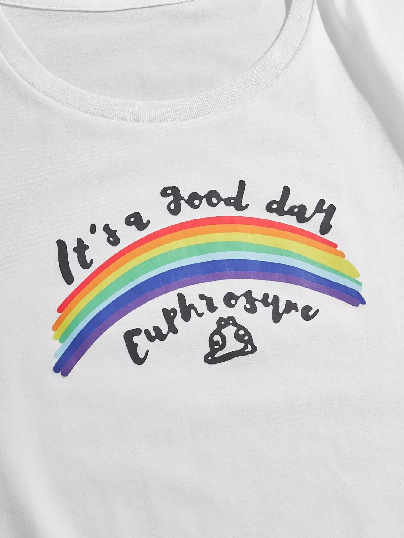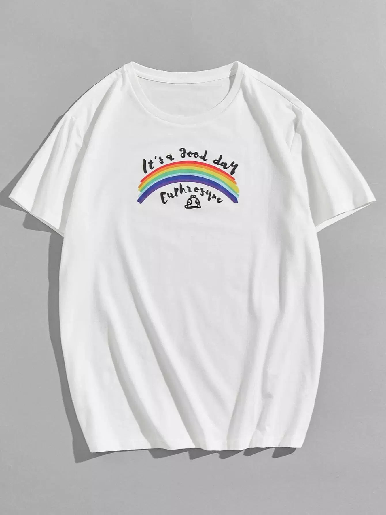 Men Cartoon Rainbow & Slogan Graphic Tee