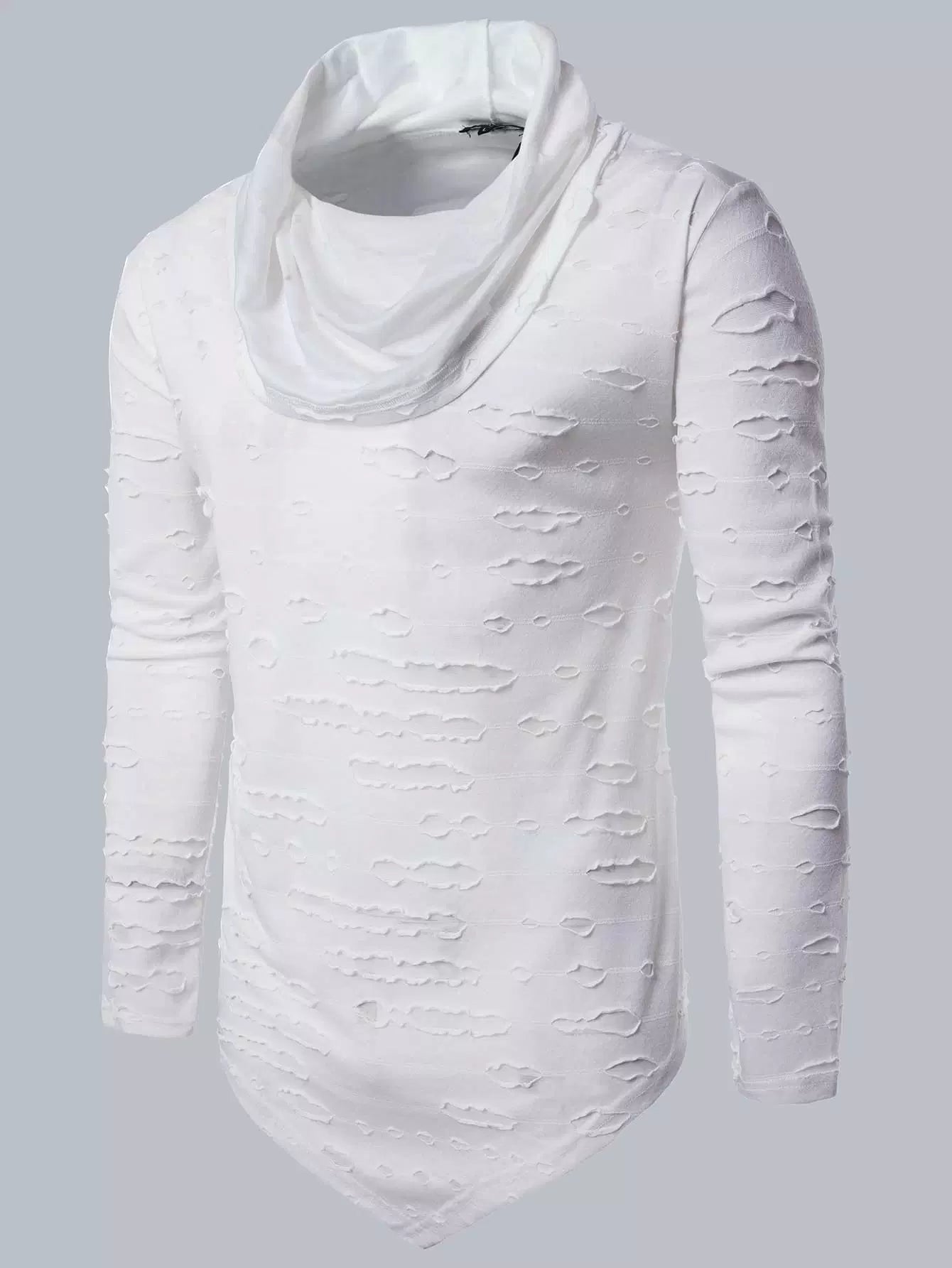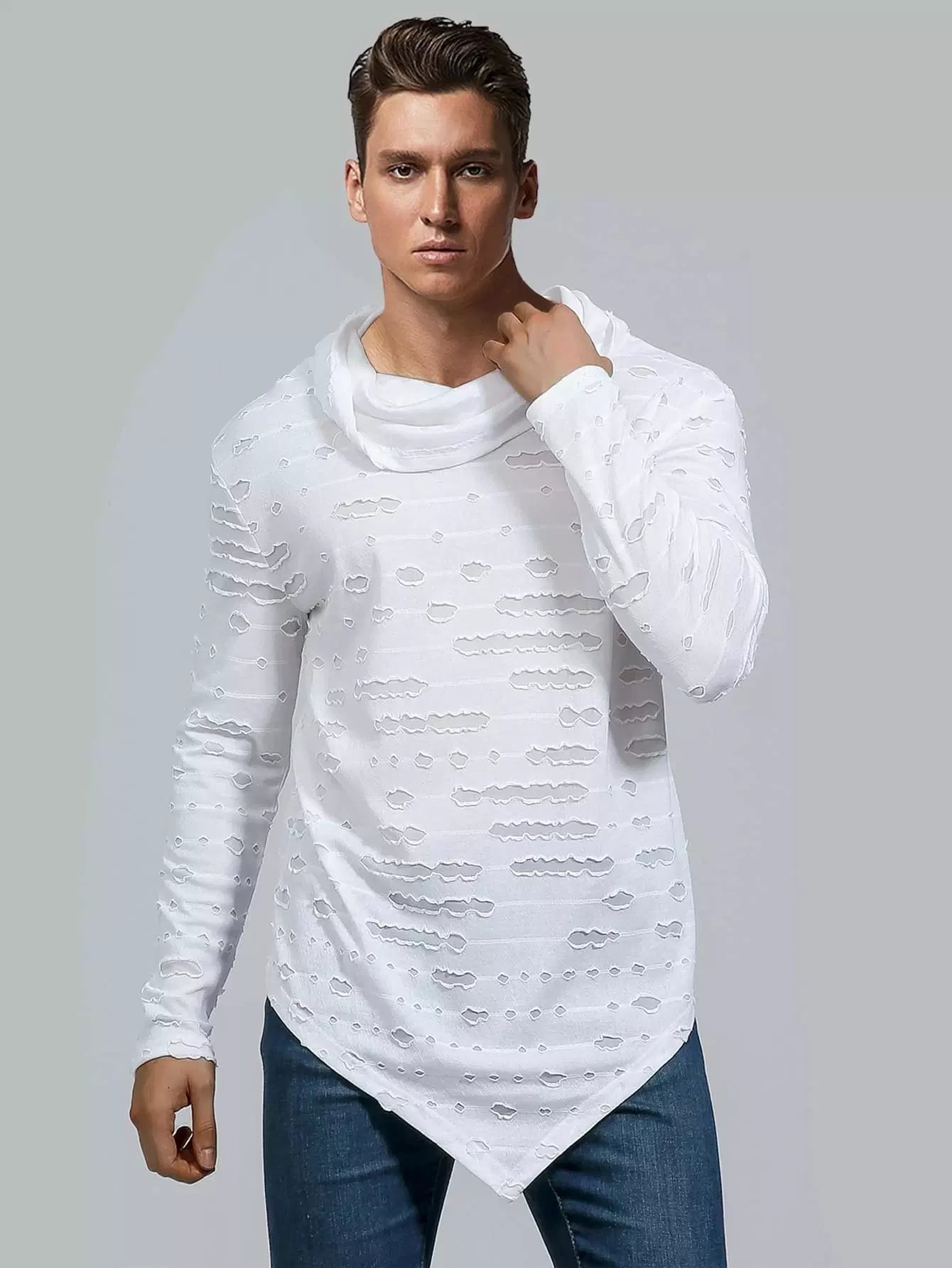 Men Drape Neck Ripped Asymmetrical Tee
