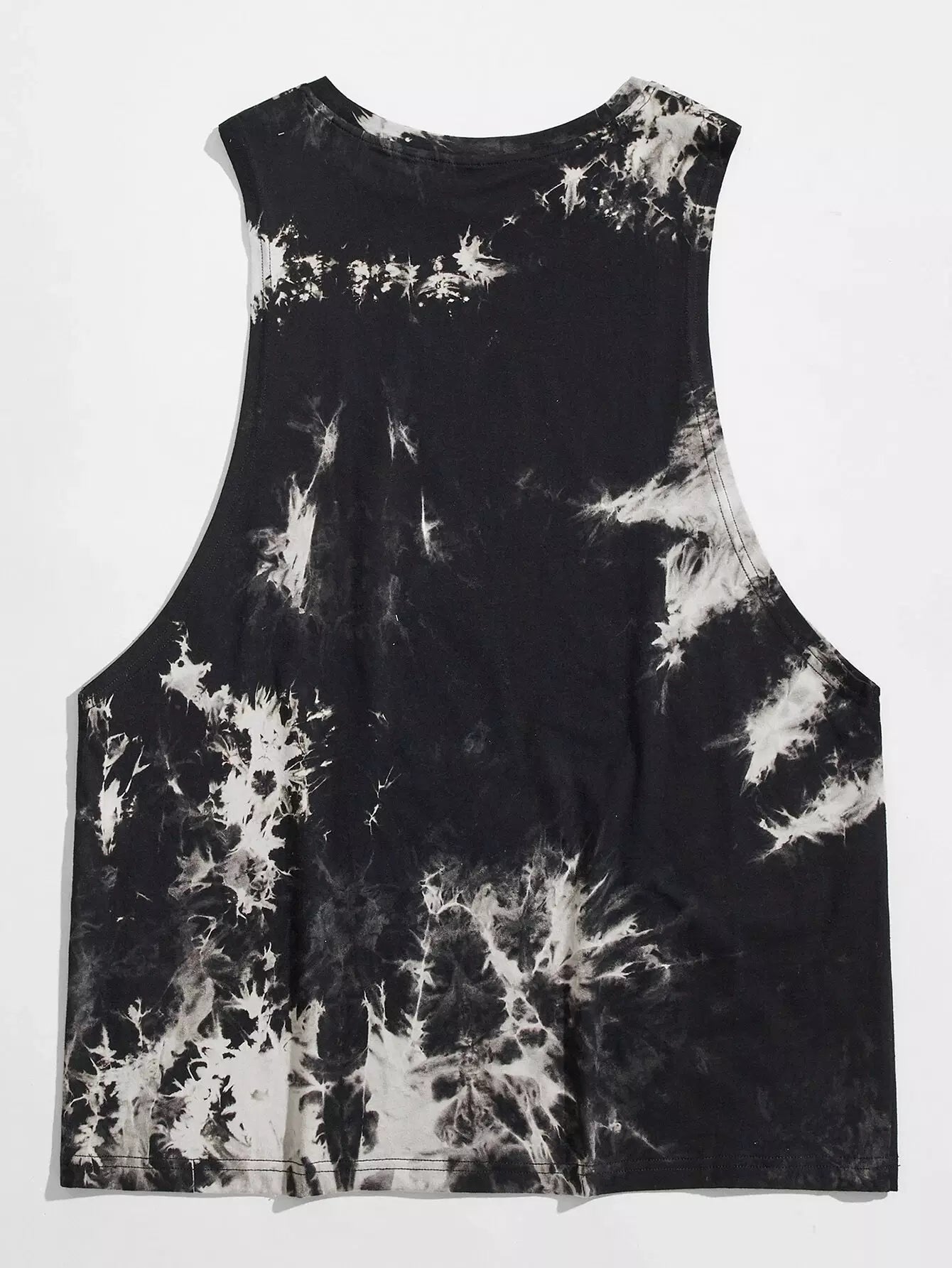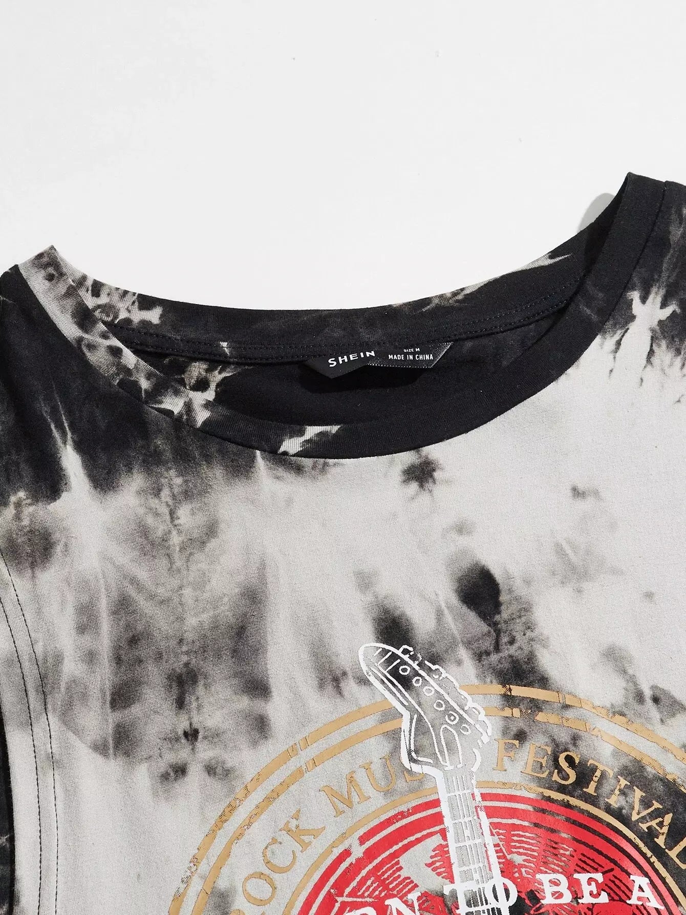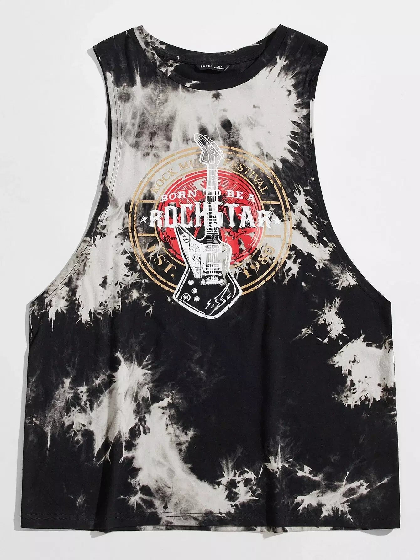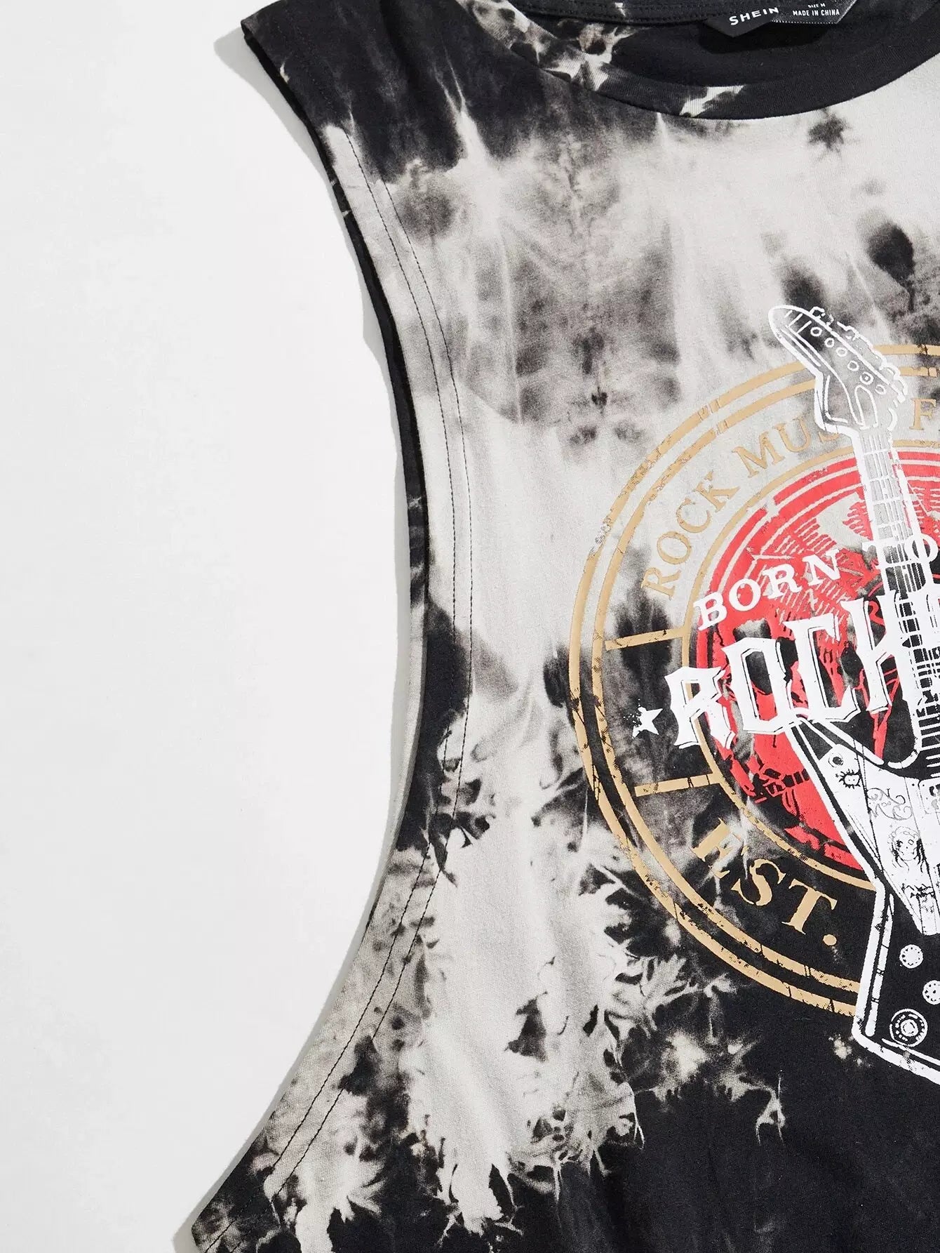 Men Guitar & Letter Graphic Tie Dye Tank Top