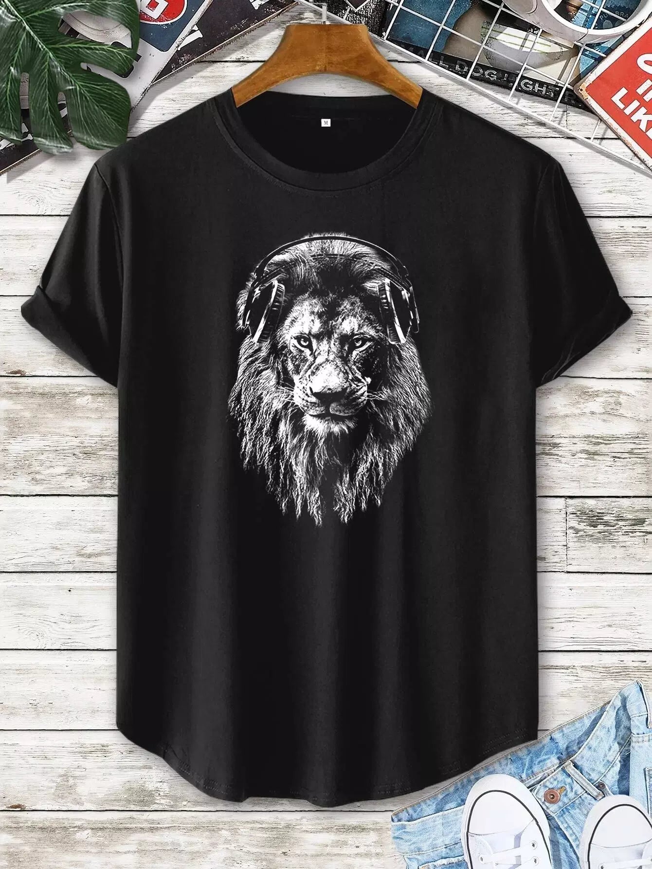 Men Lion Print Short Sleeve Tee