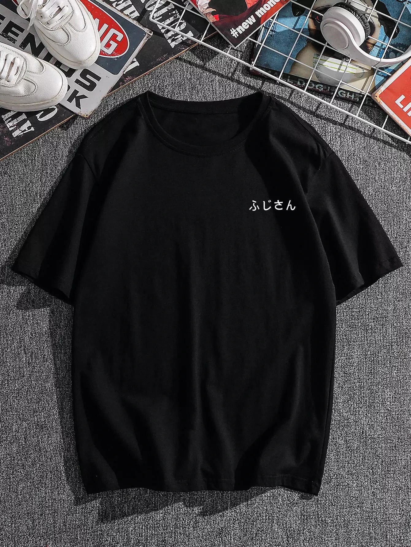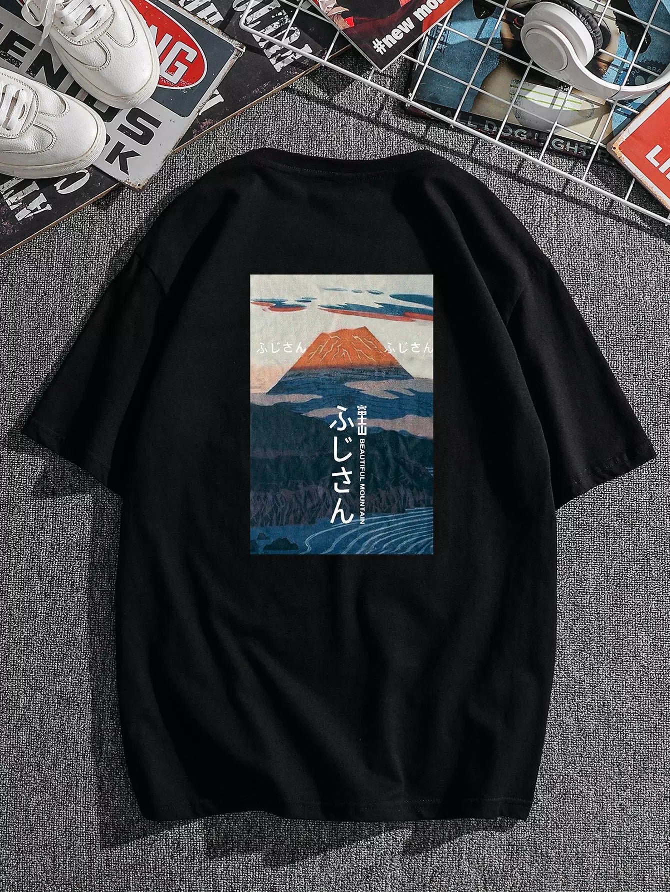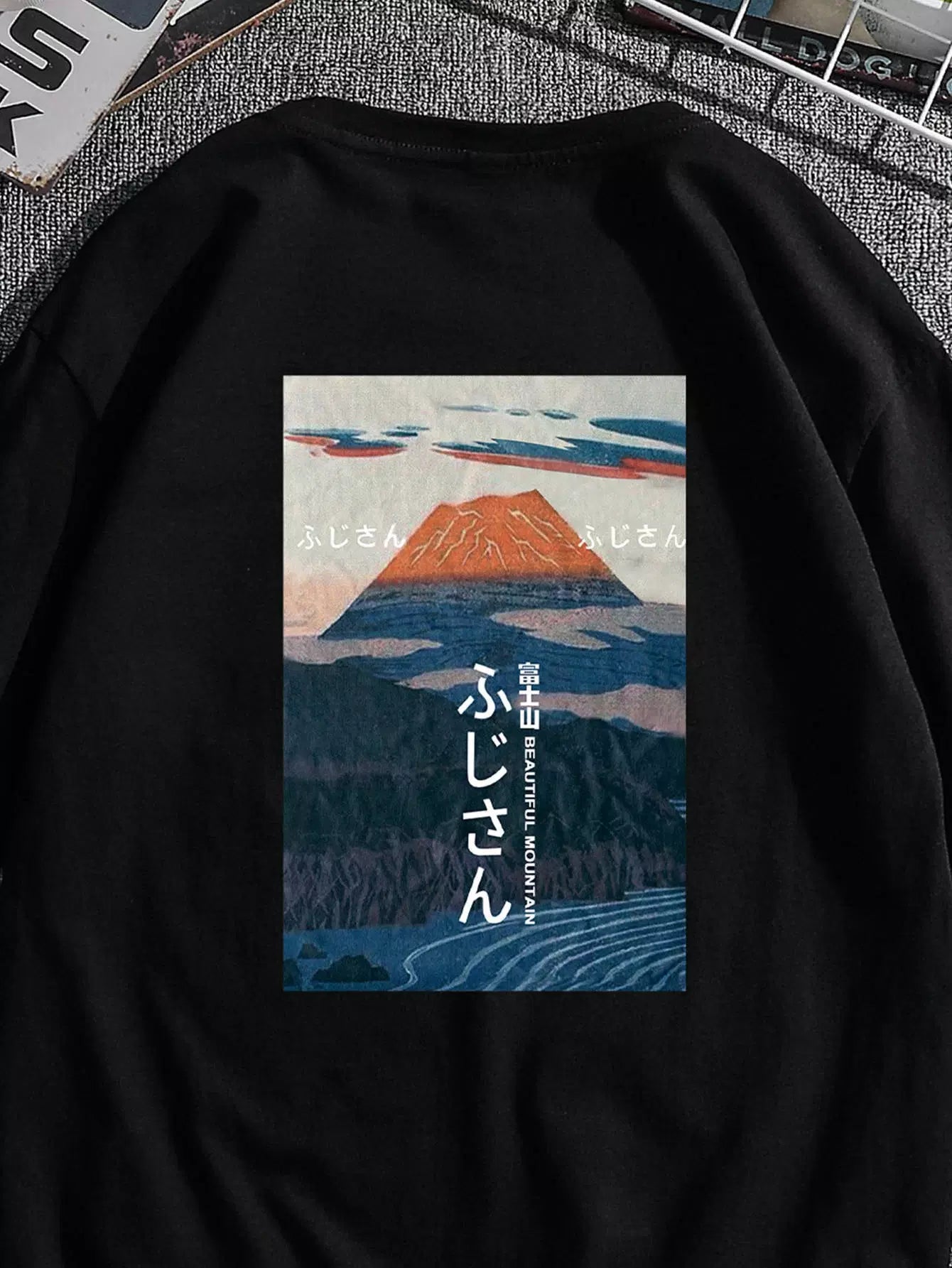 Men Mount Fuji And Japanese Letter Graphic Tee