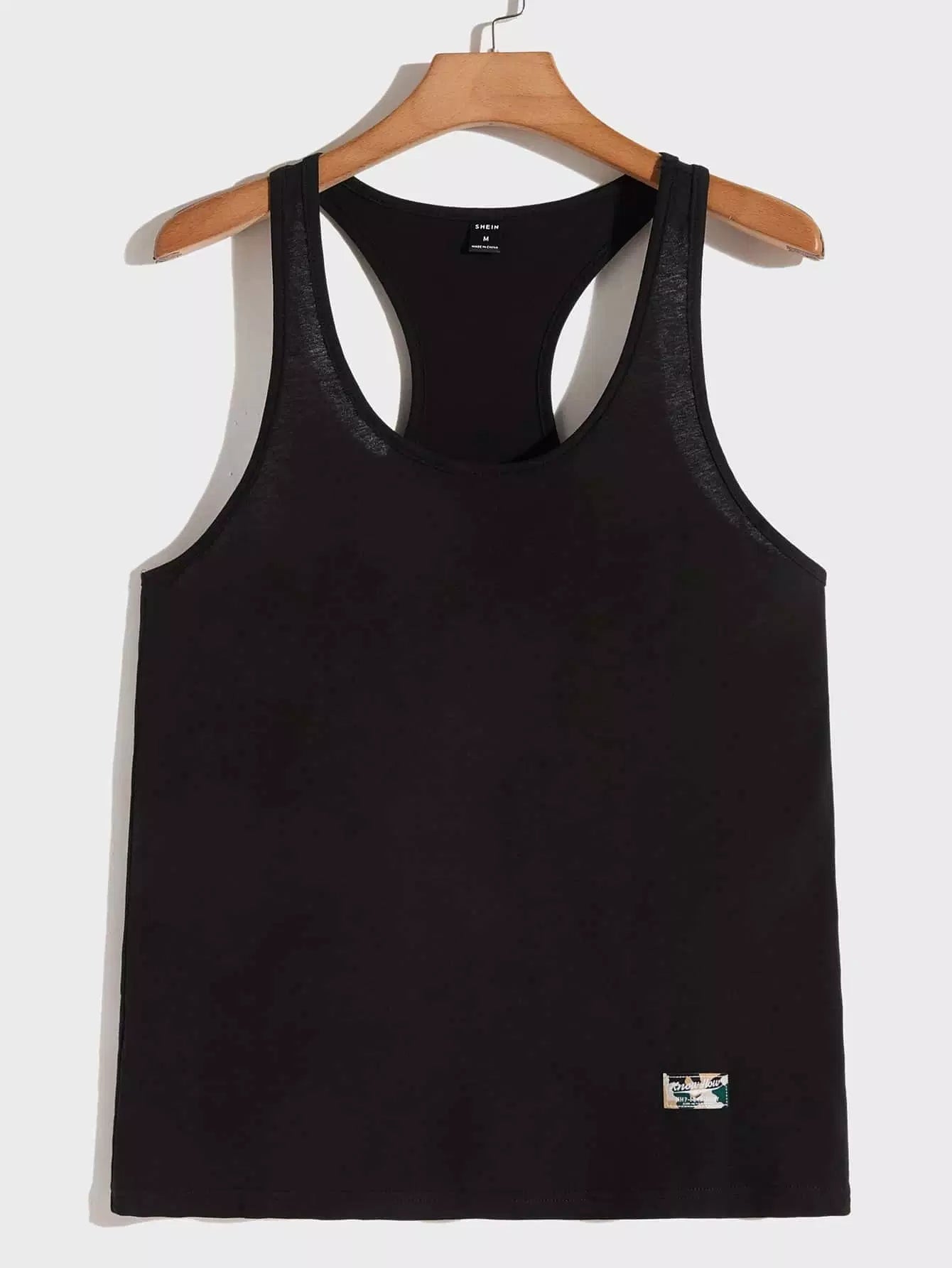 Men Patch Detail Racerback Tank Top