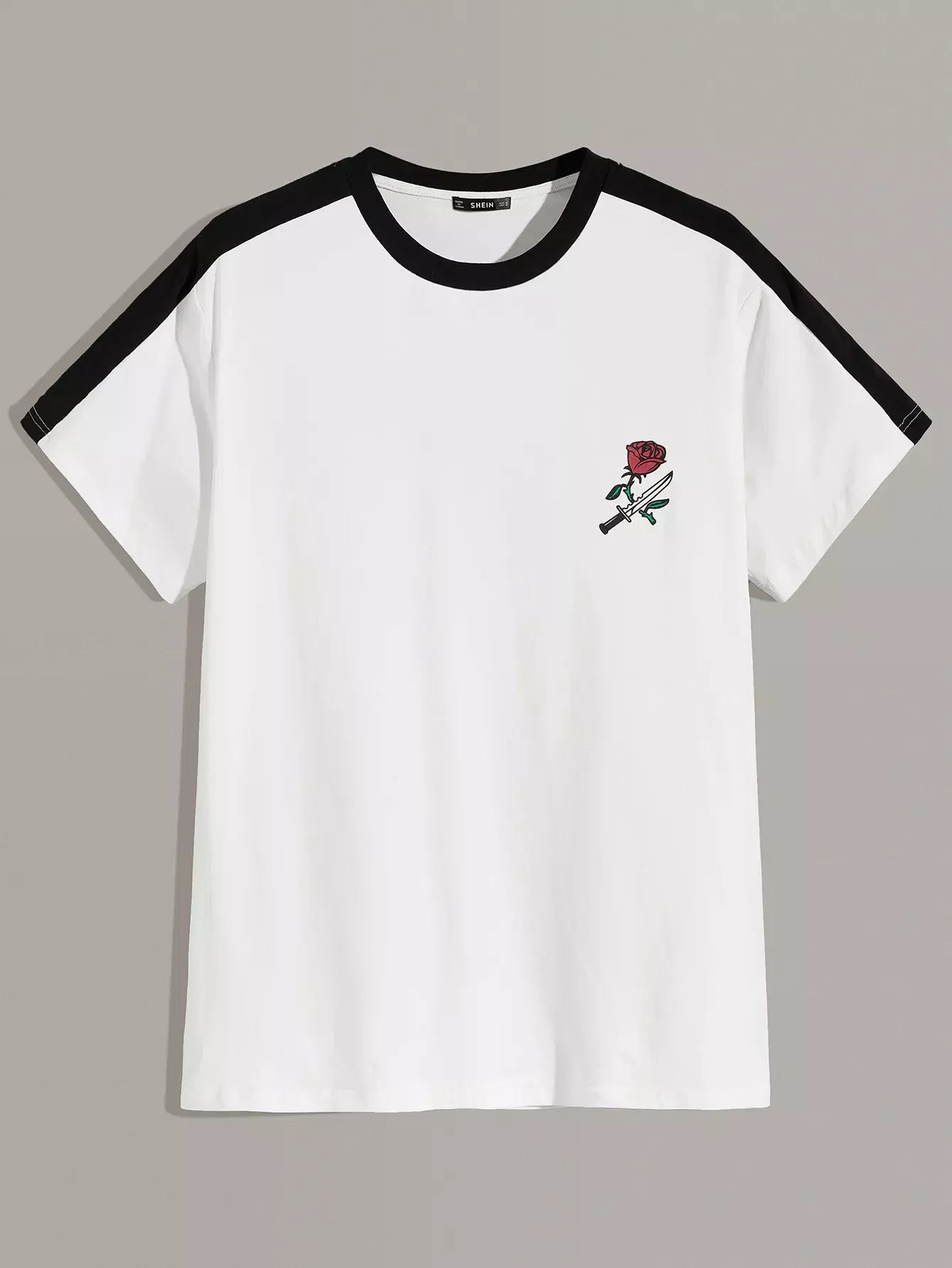 Men Rose and Knife Print Two Tone Tee