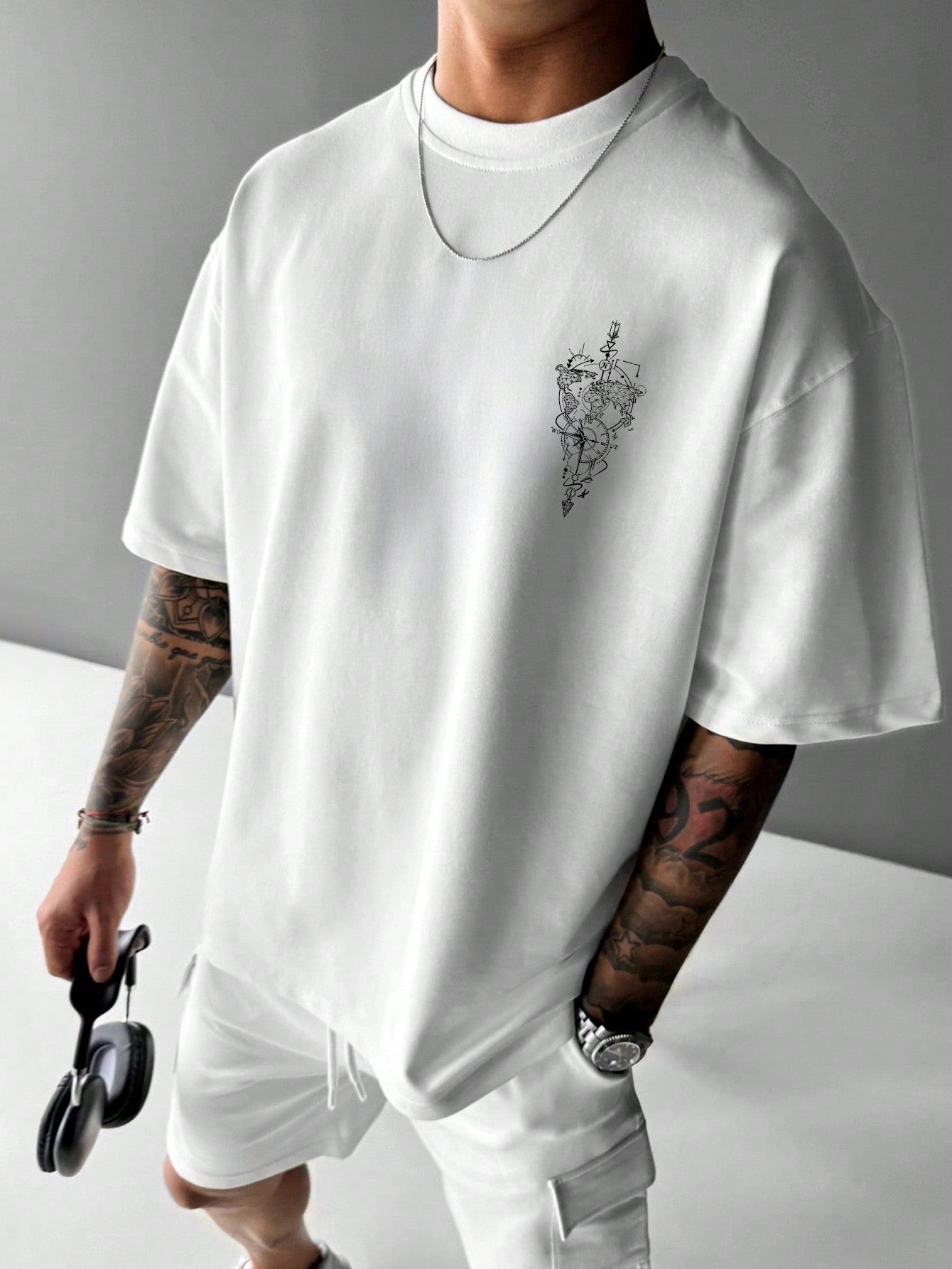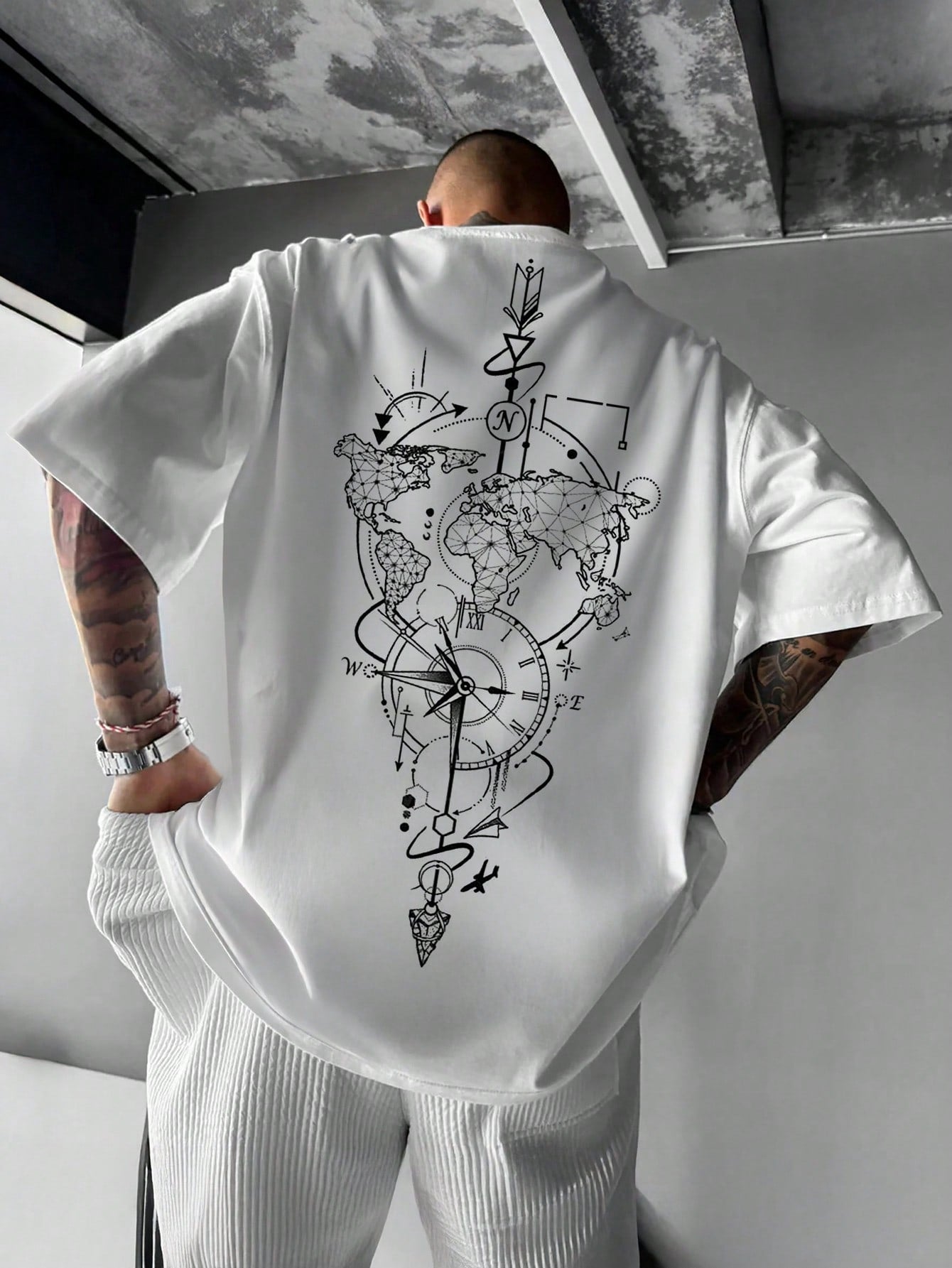 Plus Size Men's Nautical Map Print Short Sleeve Round Neck T-Shirt, Summer
