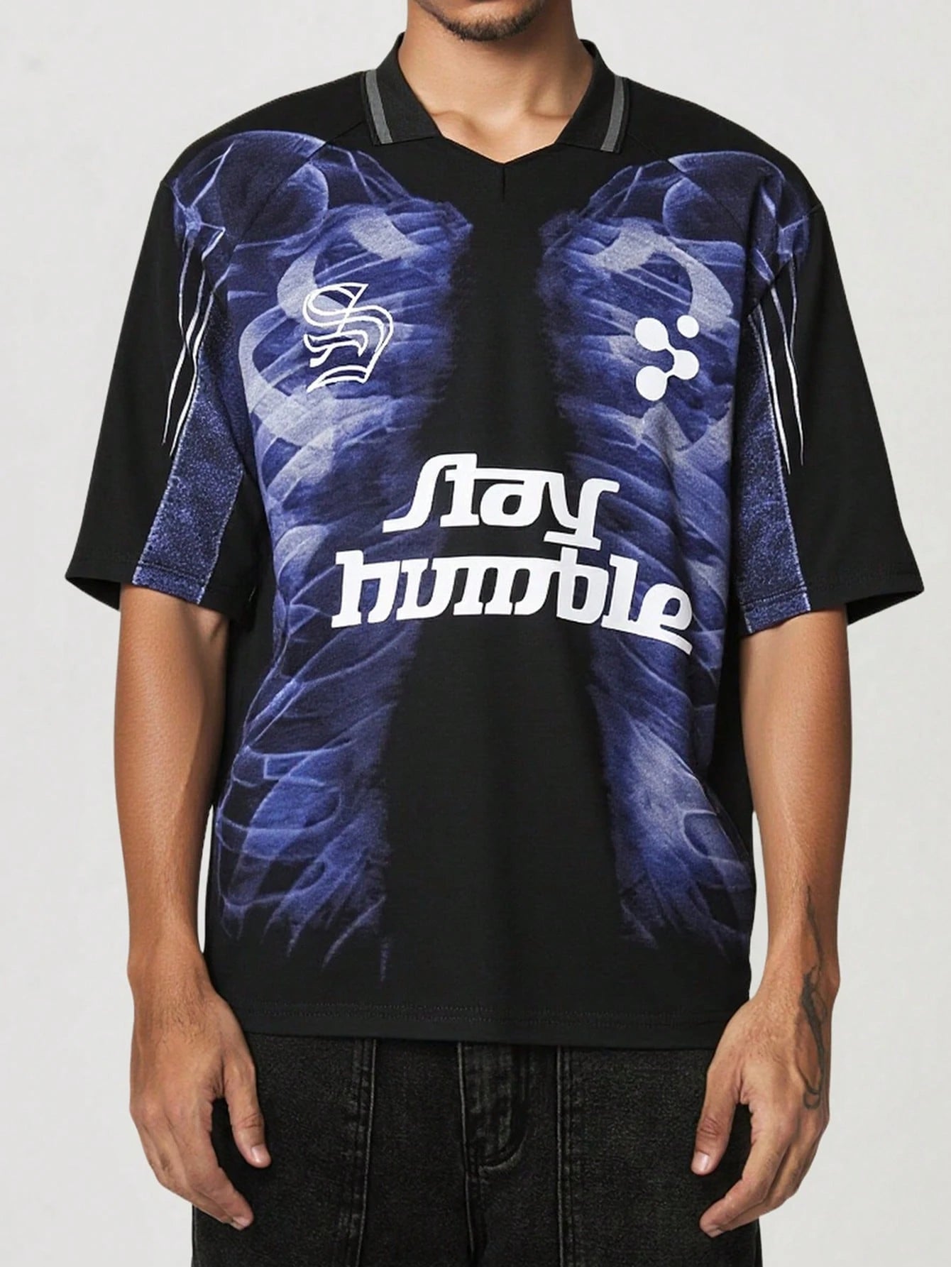 ROMWE MEN Goth Men's Gothic Style Skeleton Cotton Polo Collar T-Shirt, Spring/Summer, Halloween